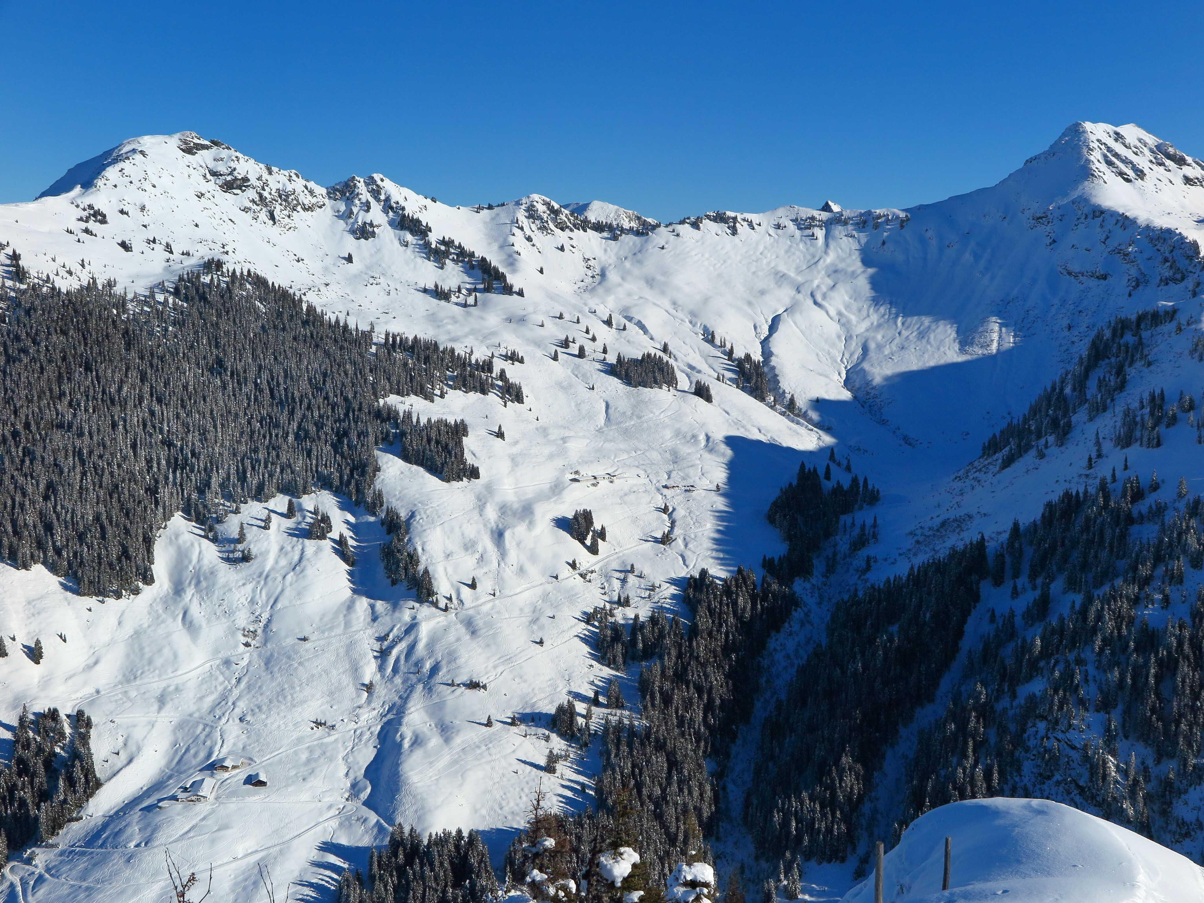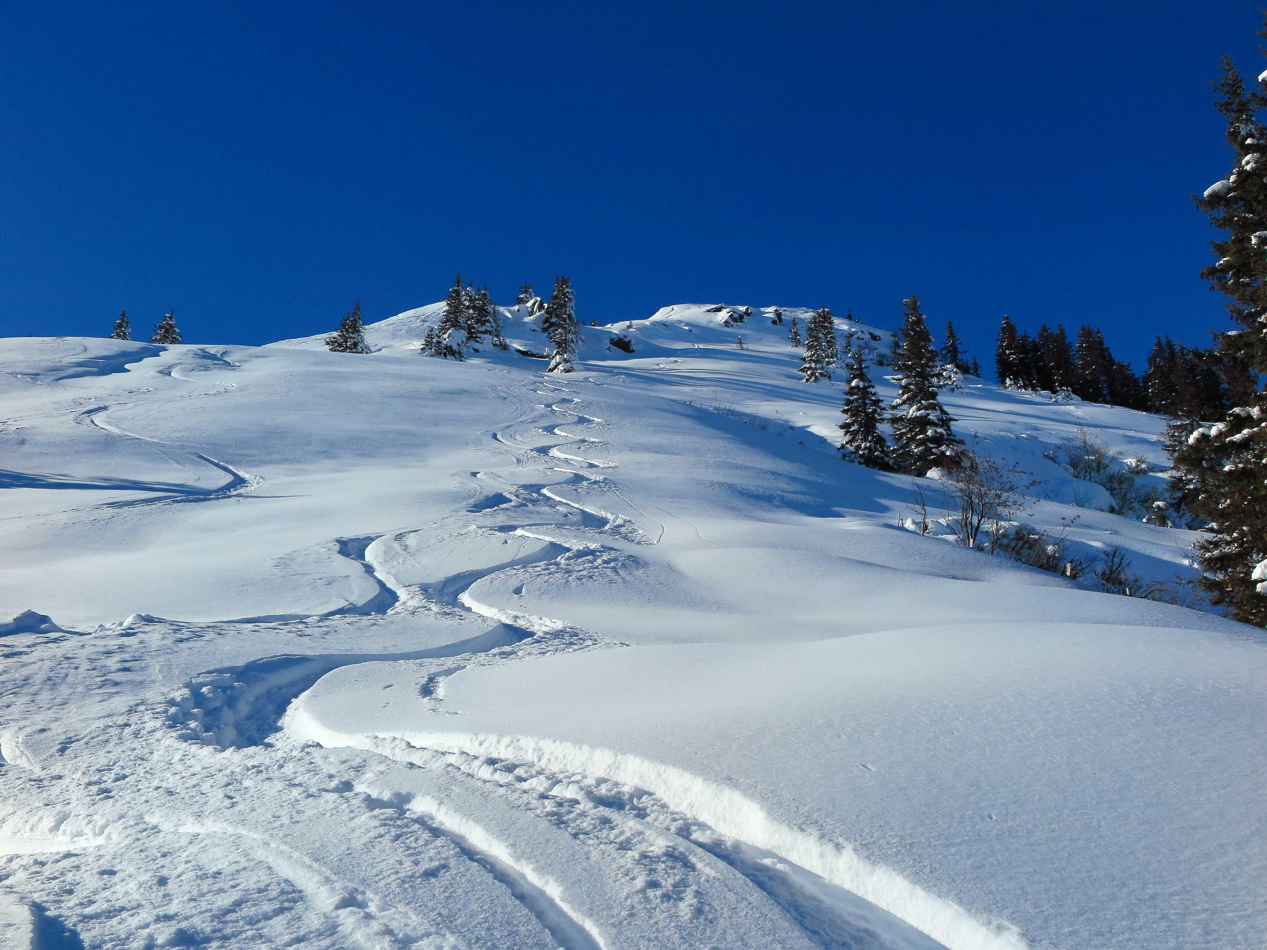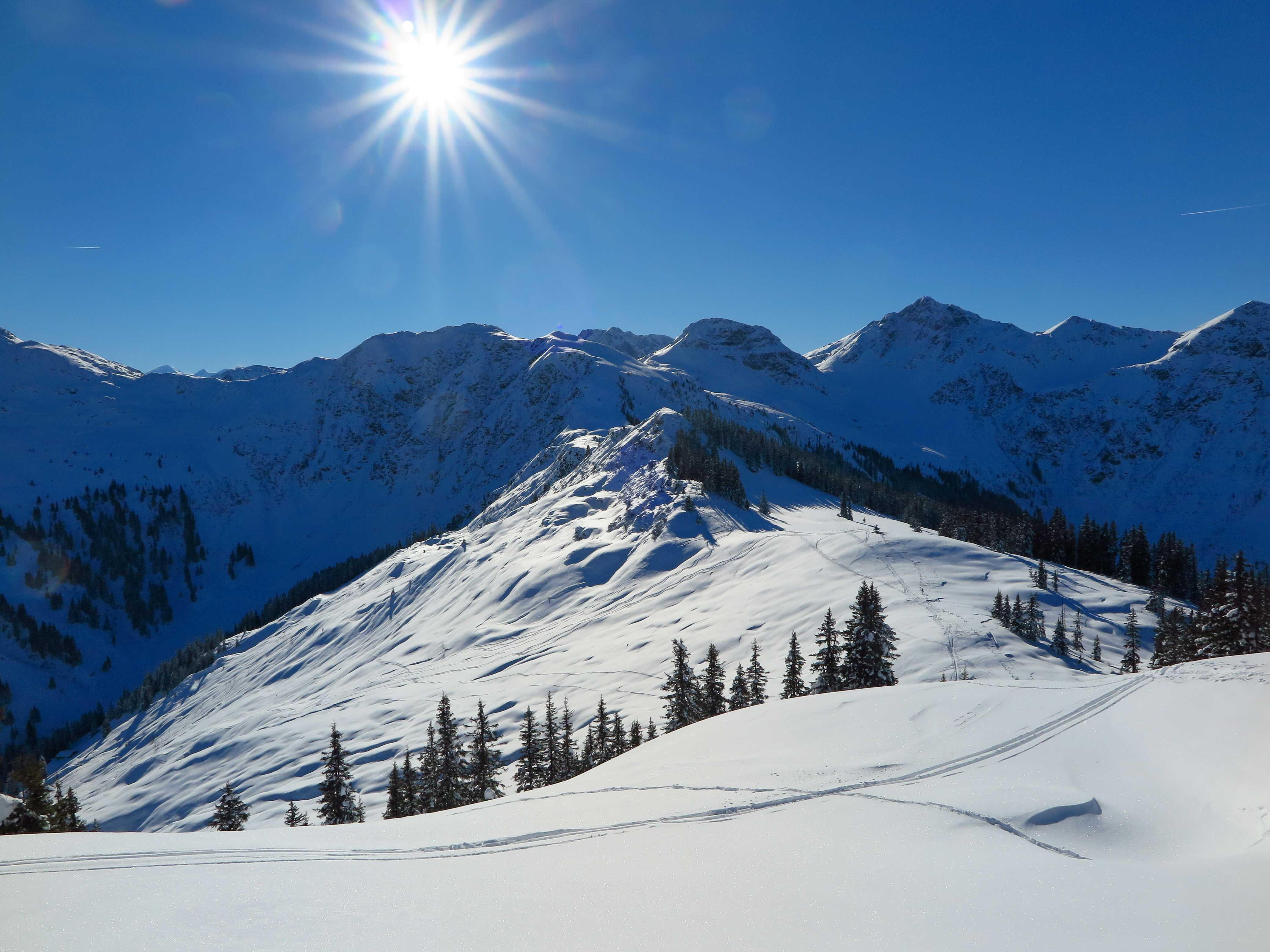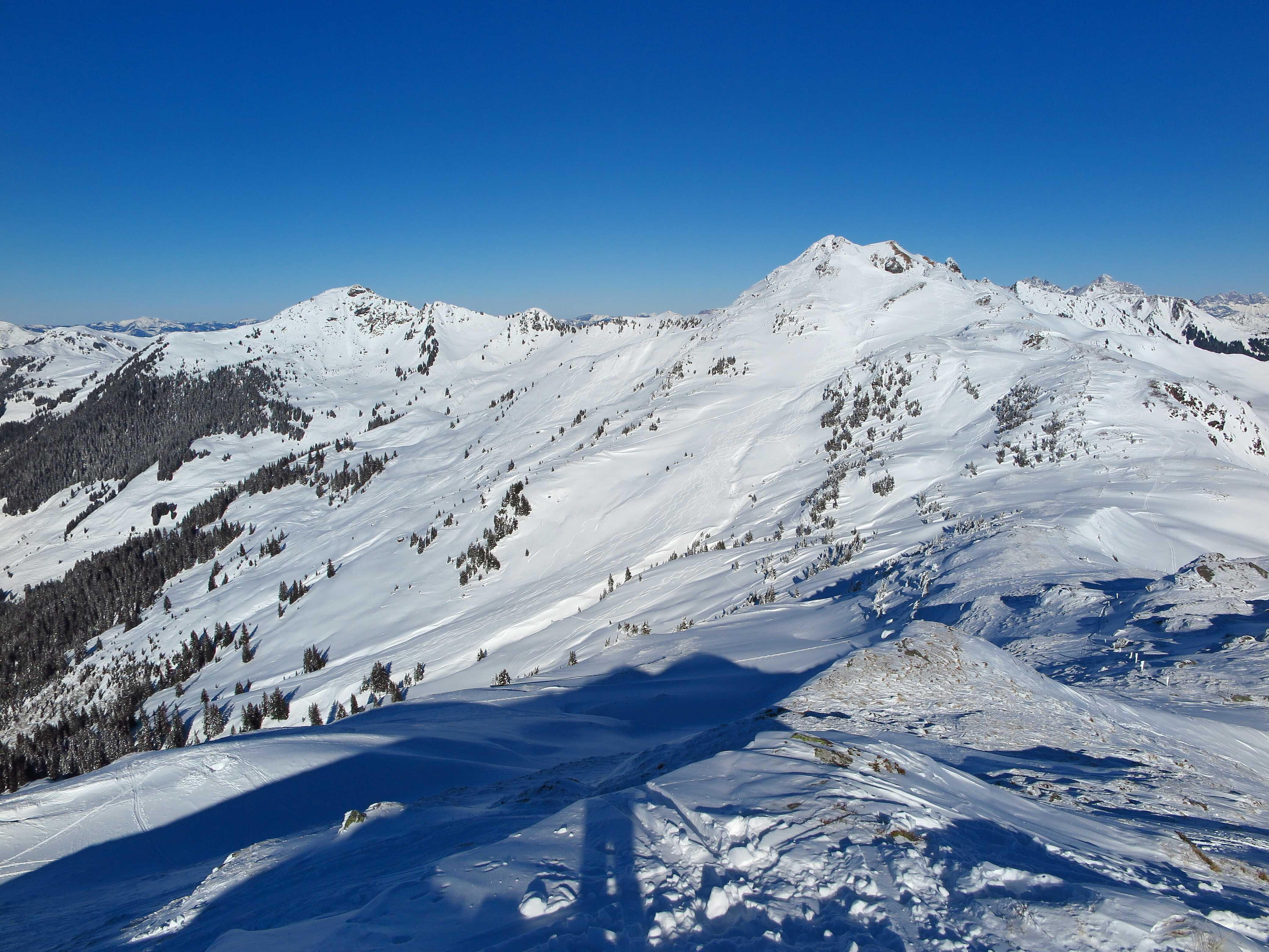 Vom PP im Auracher Graben (1045) über die Brachofenbachalm und den schönen O-Hängen auf den Laubkogel (1815). Abfahrt zurück in den Wildalmgraben im feinen Pulver. Wiederanfellen und Aufstieg über NW-Hänge an der Staffalm vorbei zum Kornbichl (1980). Abfahrt zurück in den Wildalmgraben wieder in schönem Pulver.
