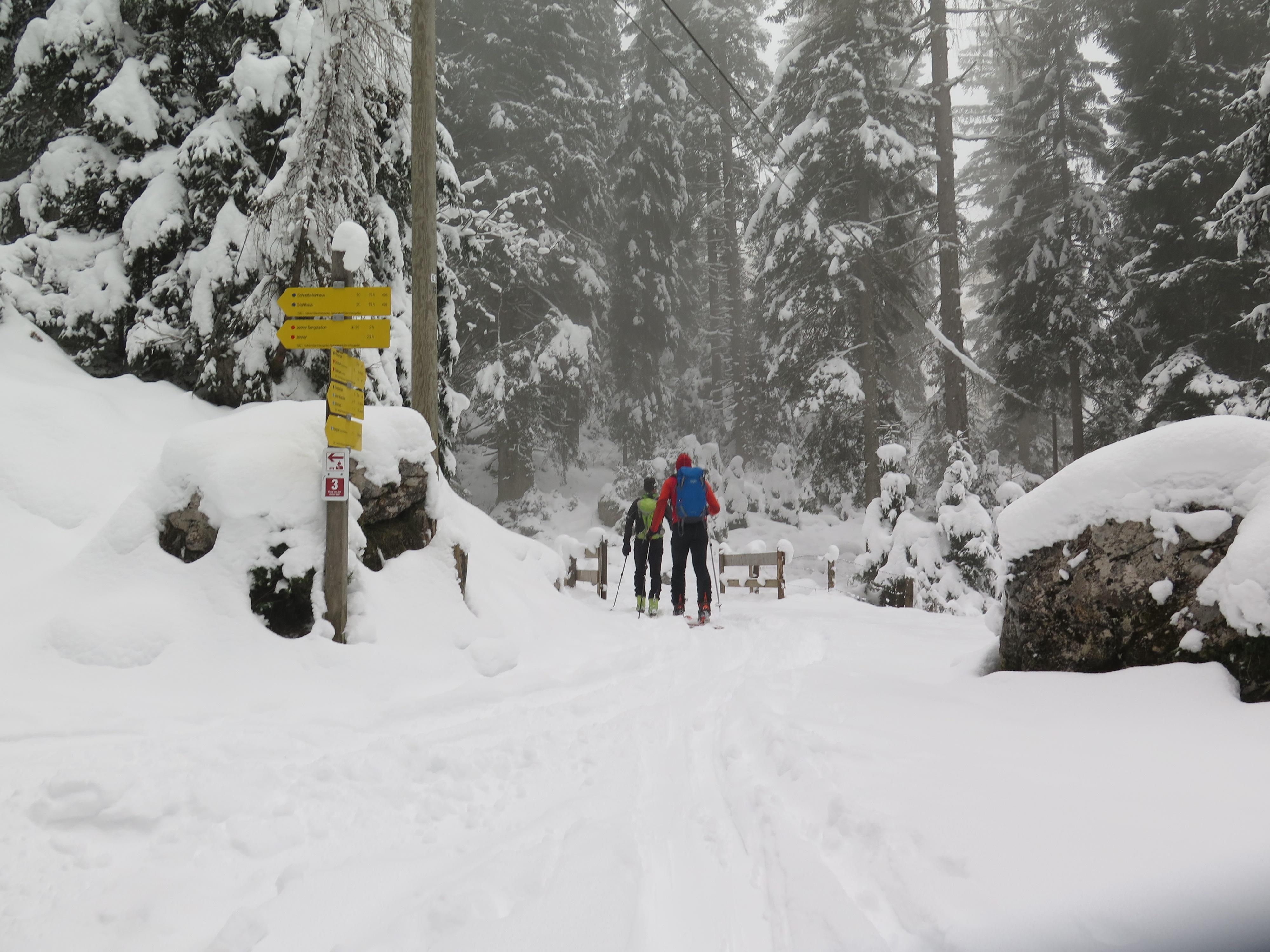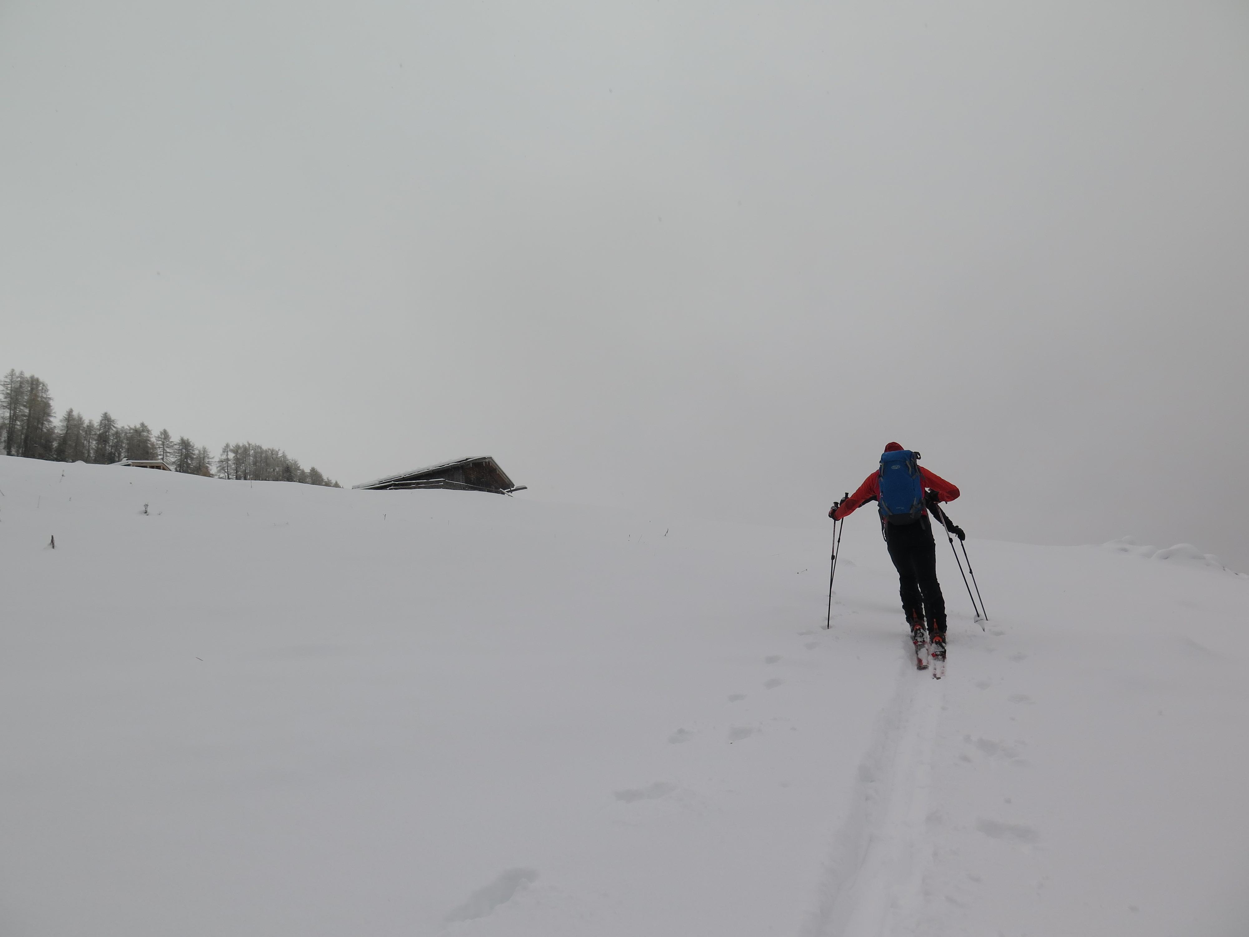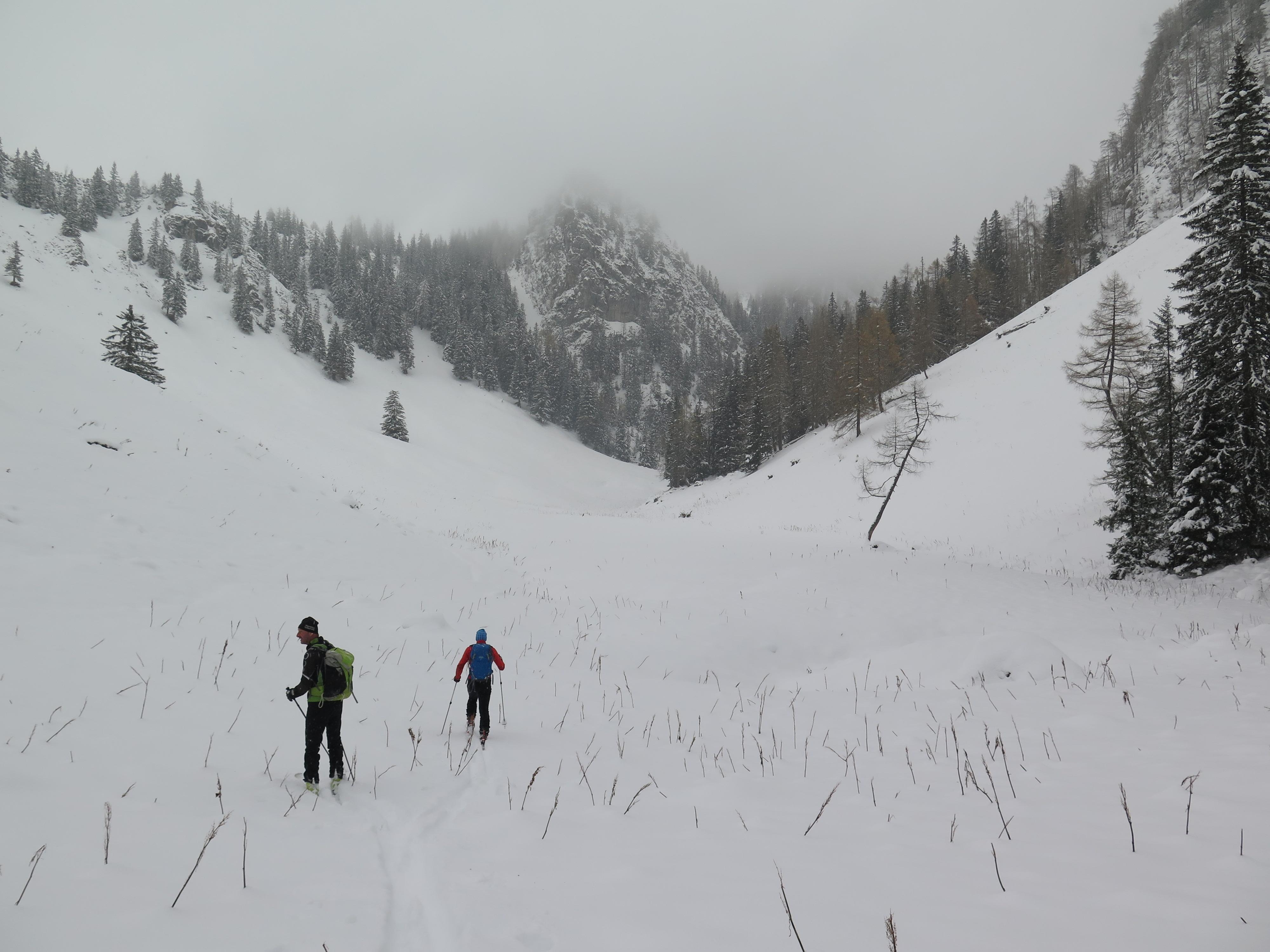 Start in Hinterbrand-Priesbergalmen-Hohen Roßfelder-Königstal-Stahlhaus,nur 2,3 cm Neuschnee,Nebel,unergiebiger Schneefall,kalter Wind im Kammbereich.Schneehöhe im oberen Teil gute 30cm auf fehlender Unterlage.Jennerpiste wurde schon beschneit,daher im bereich der Schneekanonen tragfähige Schneefläche.Tour bei derzeitigen Verhältnissen nicht sehr lohnend.