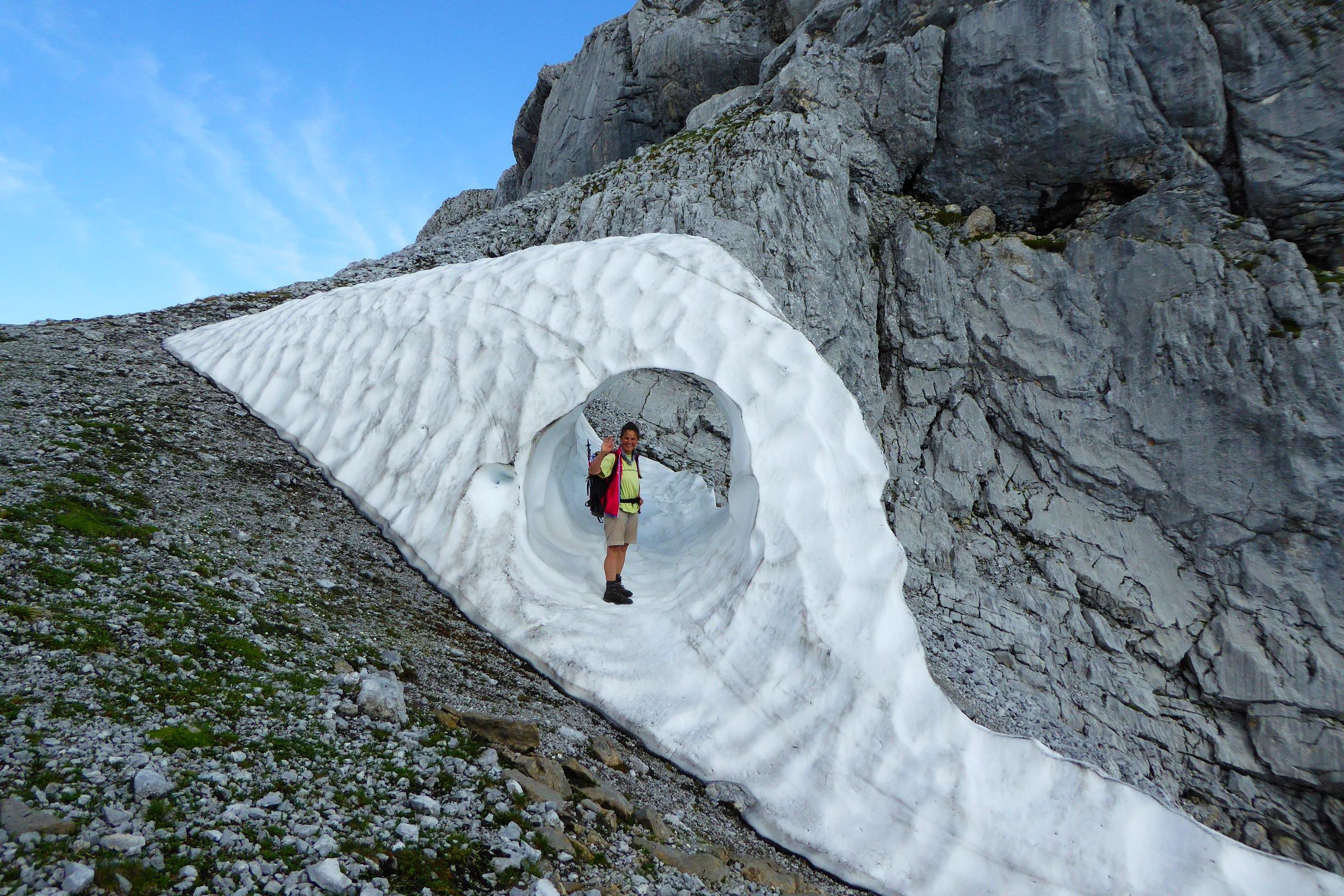 Beim Jagabrunntrog (Gipfel im Hagengfabirge) entdekten  wir den interesannten Rest einer Wechte.
