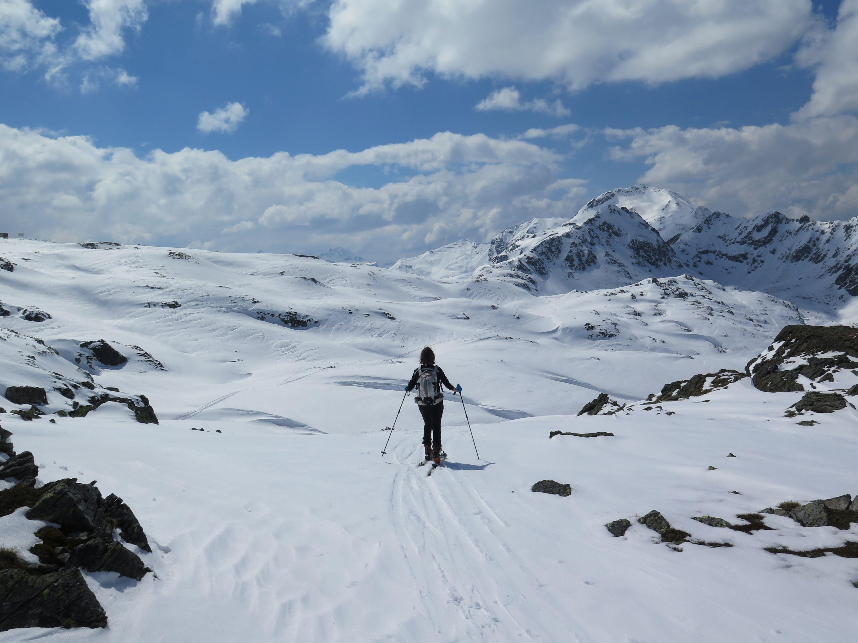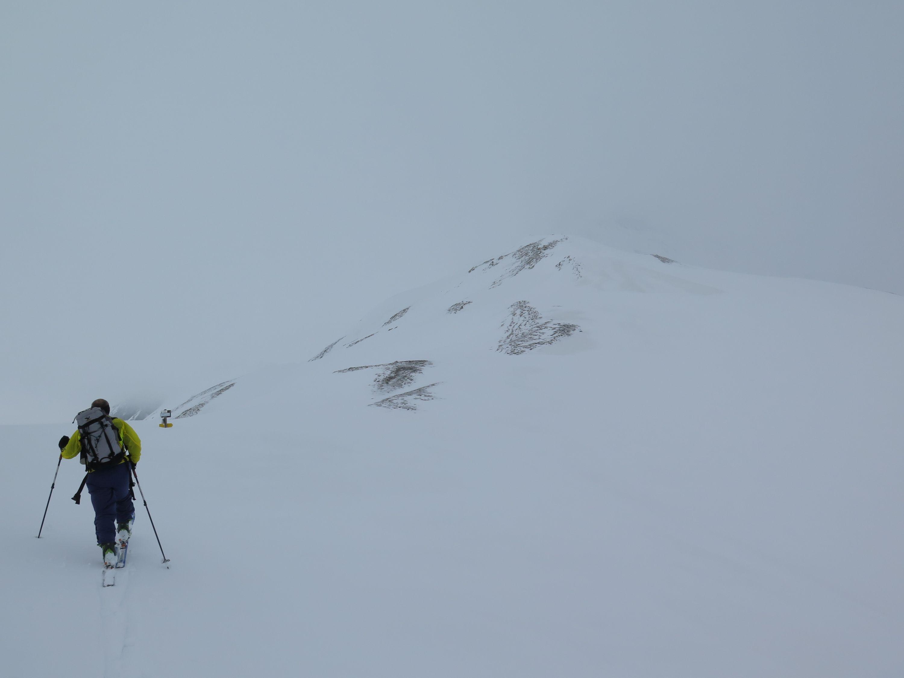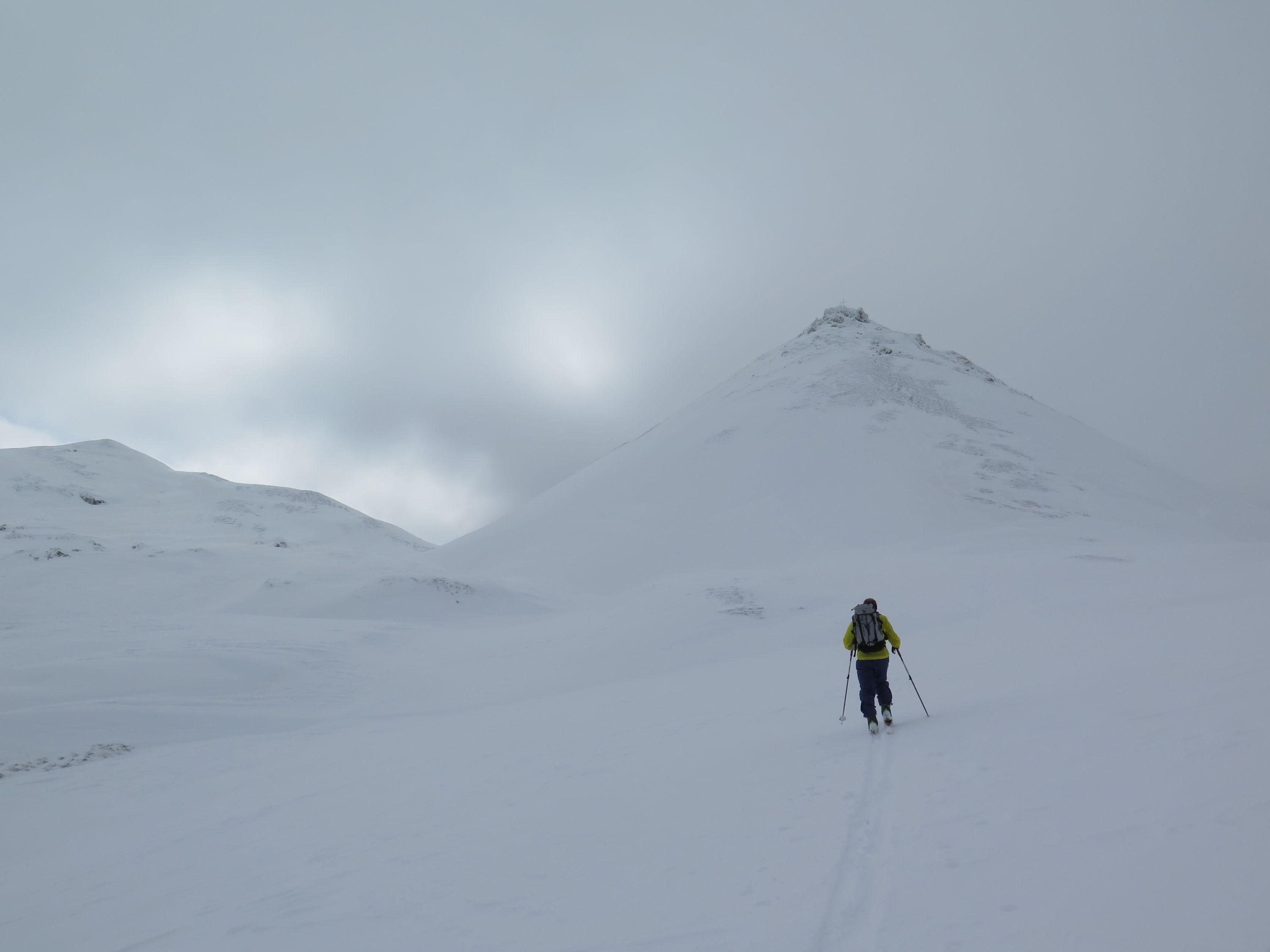 Start beim Seekarhaus-Hundskogel-Roßkogel-Oberhüttensattel-Ahkarscharte-Lungauer Kalkspitze-Steirische Kalkspitze. Heute Aprilwetter, ständiger wechsel von Wolken, Nebel und Sonnenfenstern, dazu lebhafter Wind.Abfahrt : Schnee vom Roßkogel und zum Oberhüttensattel gut,auch die hälfte von der Steirischen Kalkspitze noch gut zu fahren, dann wirds durch die Sonneneinstrahlung rasch tiefer und schwerer