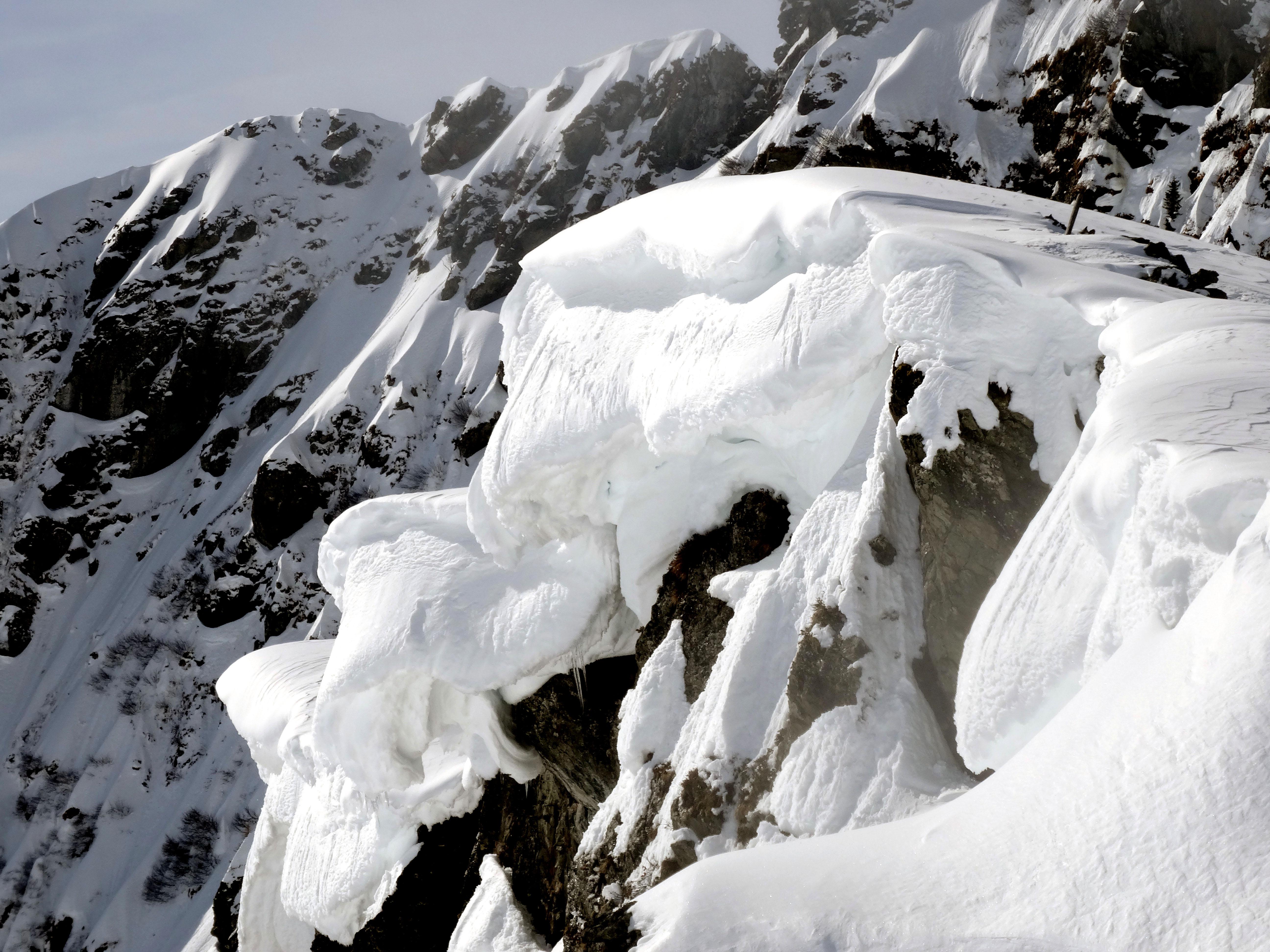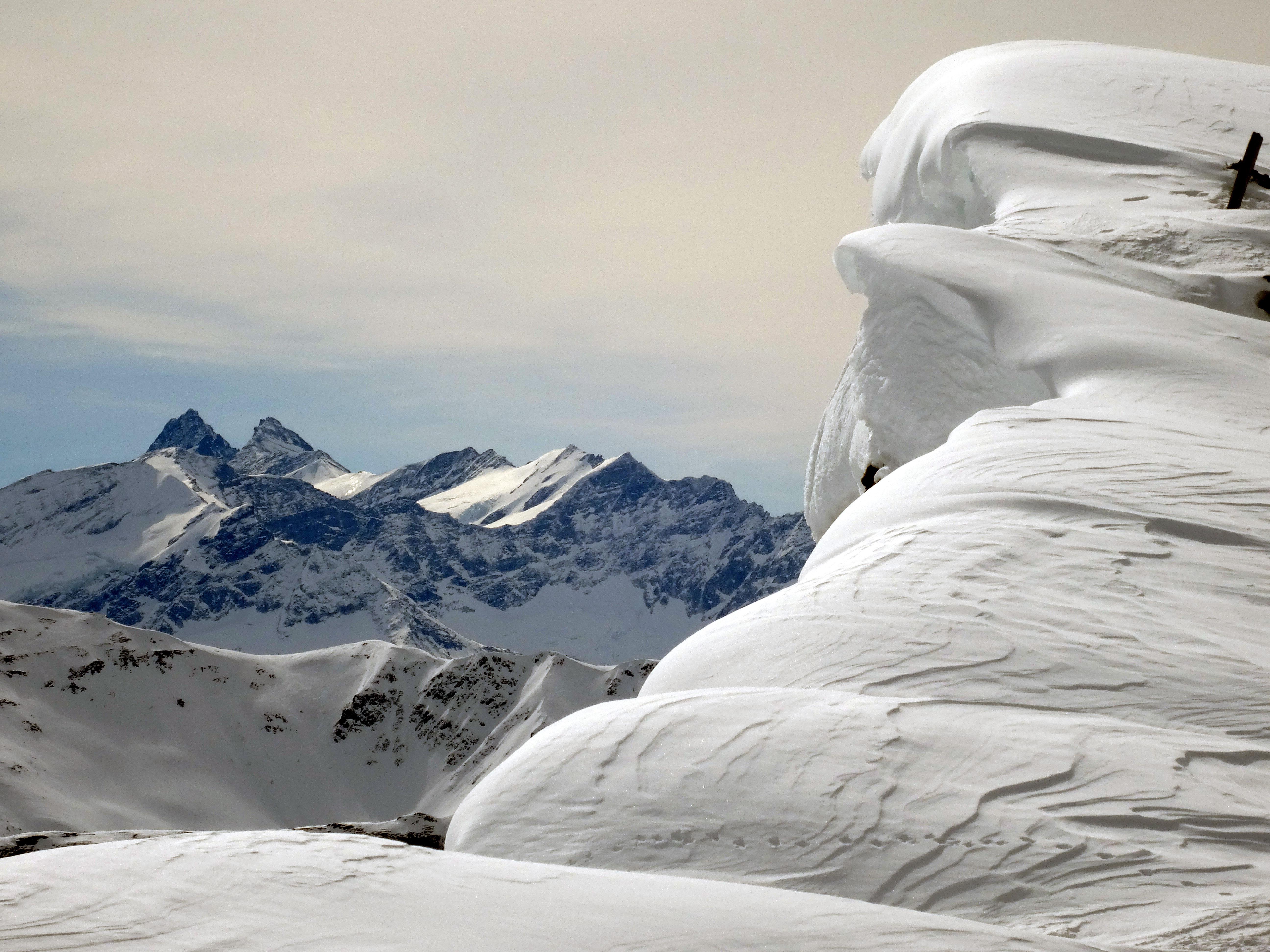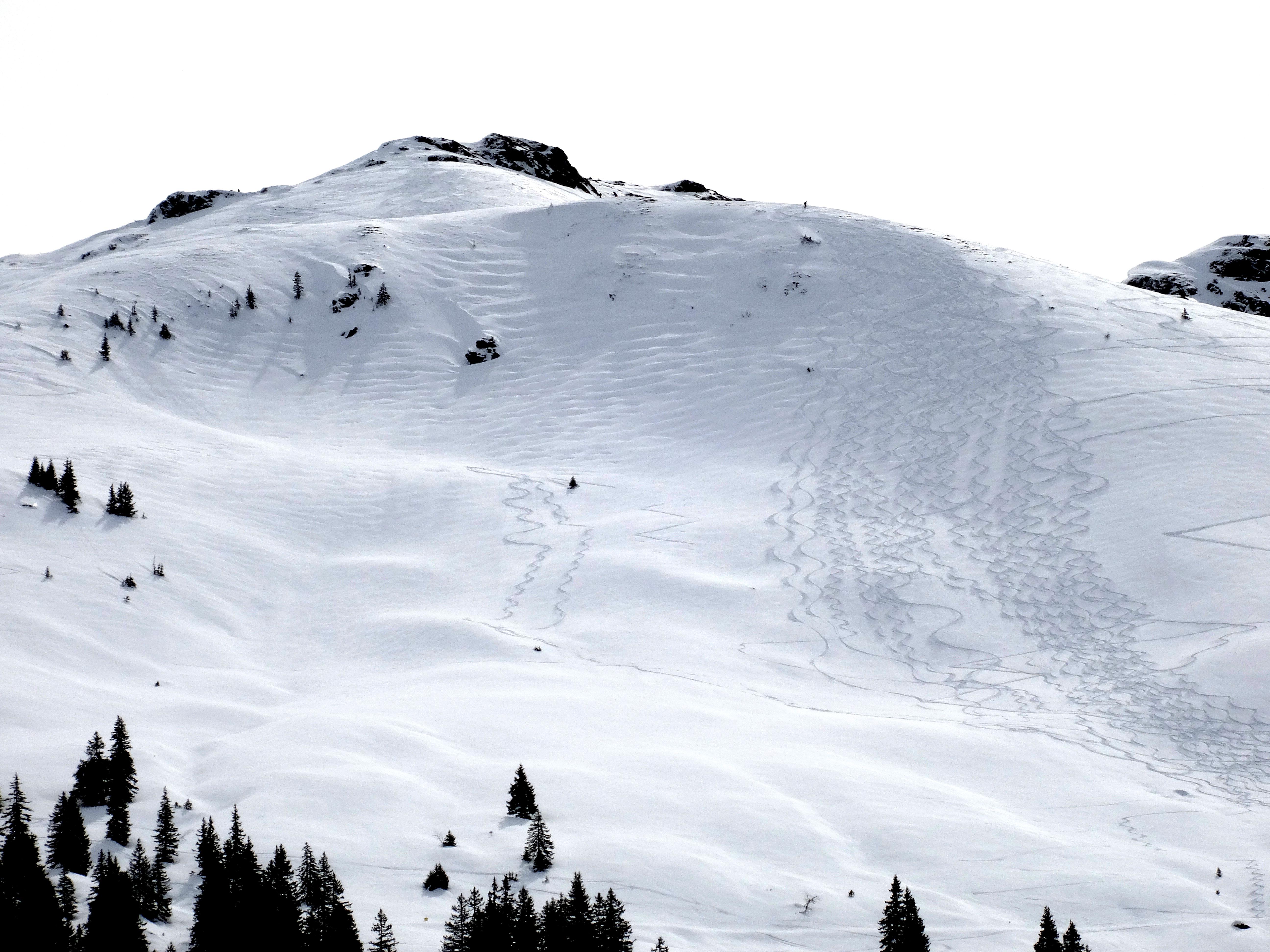 Unterschiedlichste Schneeverhältnisse zwischen Pulver und Bruchharsch. Dort und da einige Lawinenabgänge - meist Schneebretter - zu beobachten.
