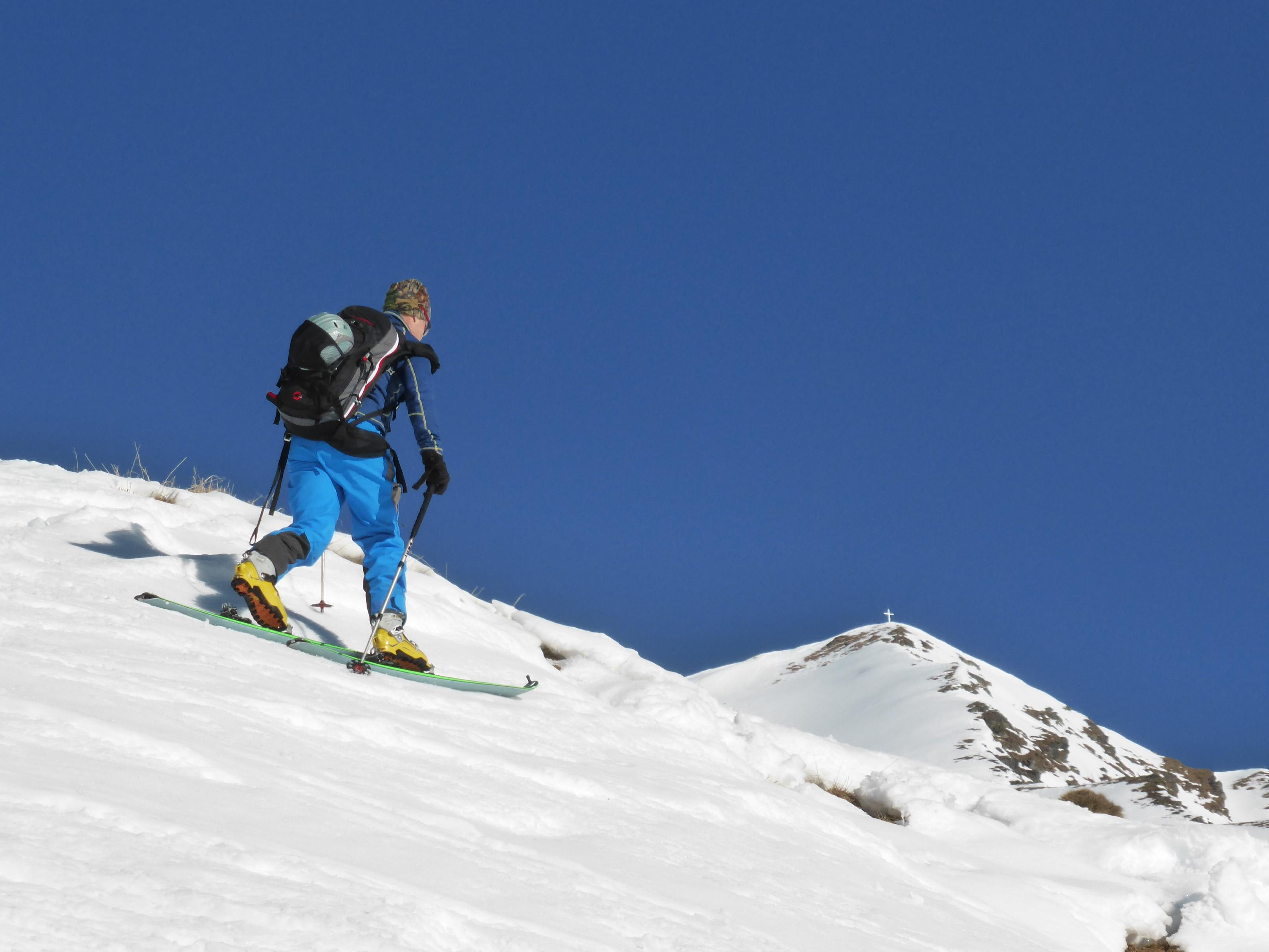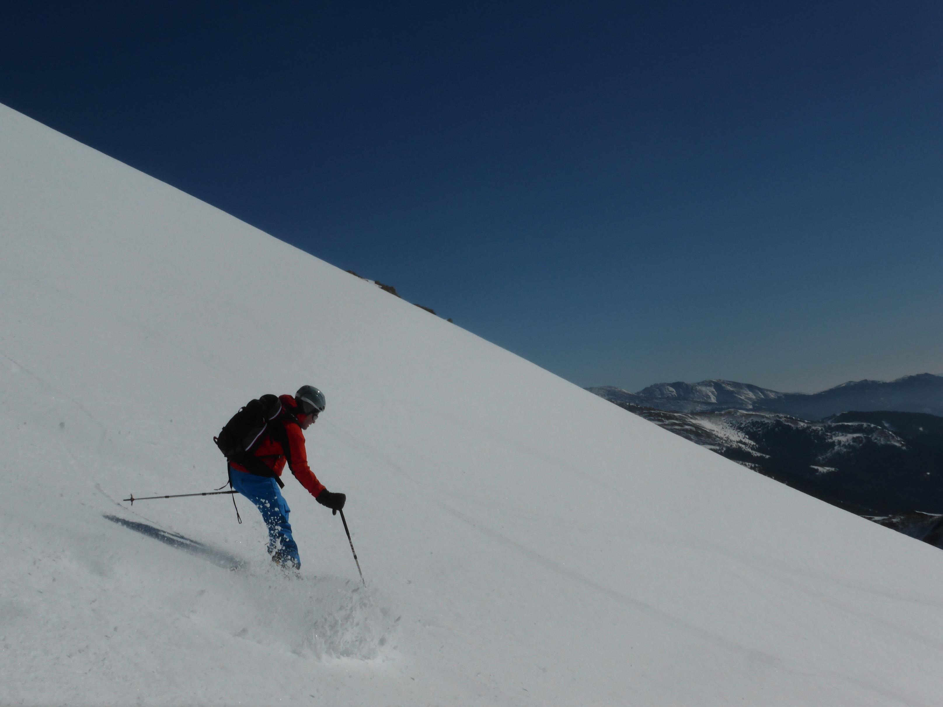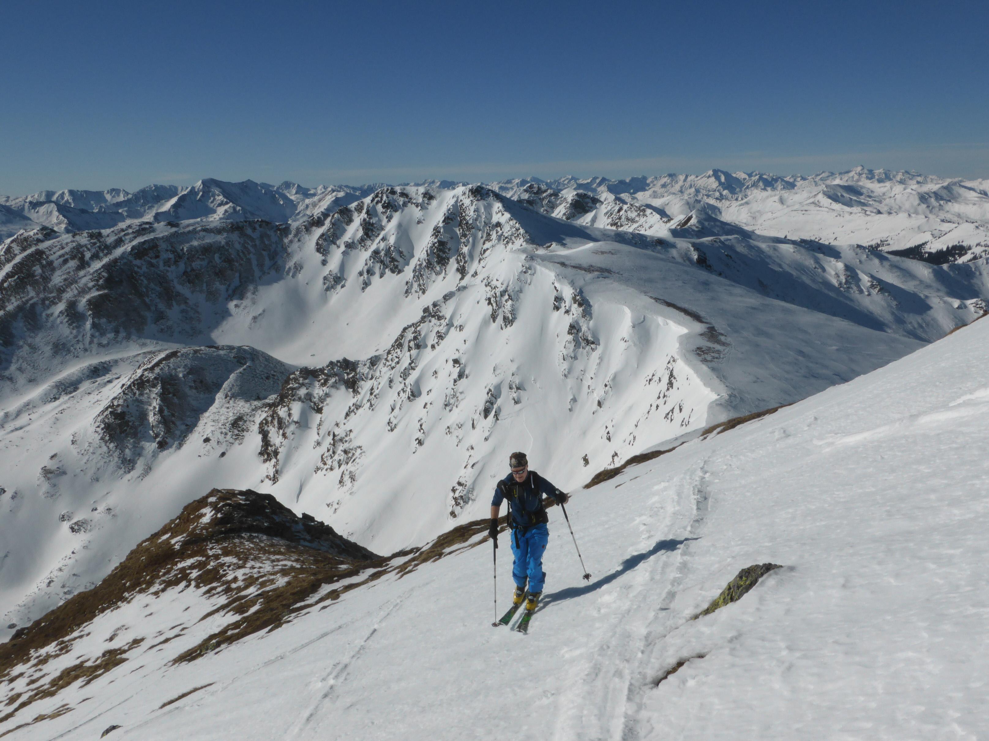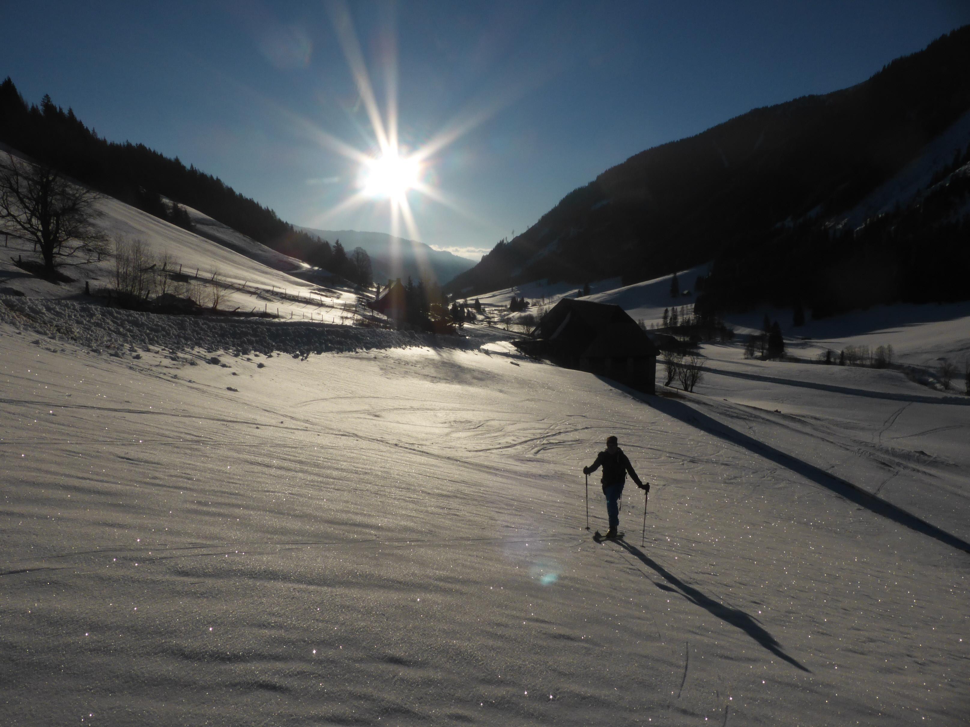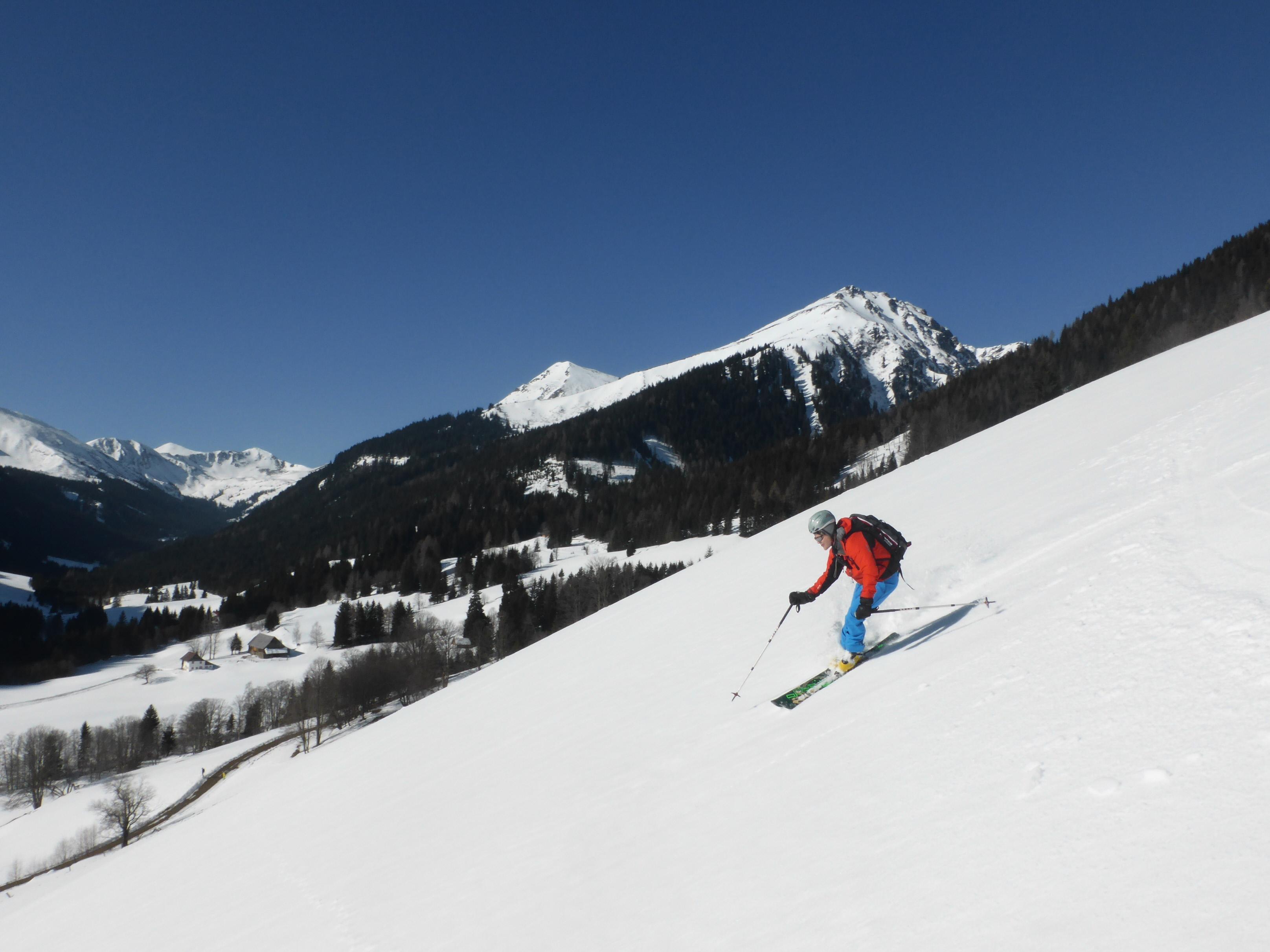 Trotz sehr frostigem Tourenstart (-15 Grad) hat die Sonne doch schon so viel Kraft, dass es bei der Abfahrt (mit Ausnahme der ersten 100 Hm) aufgefirnt hat