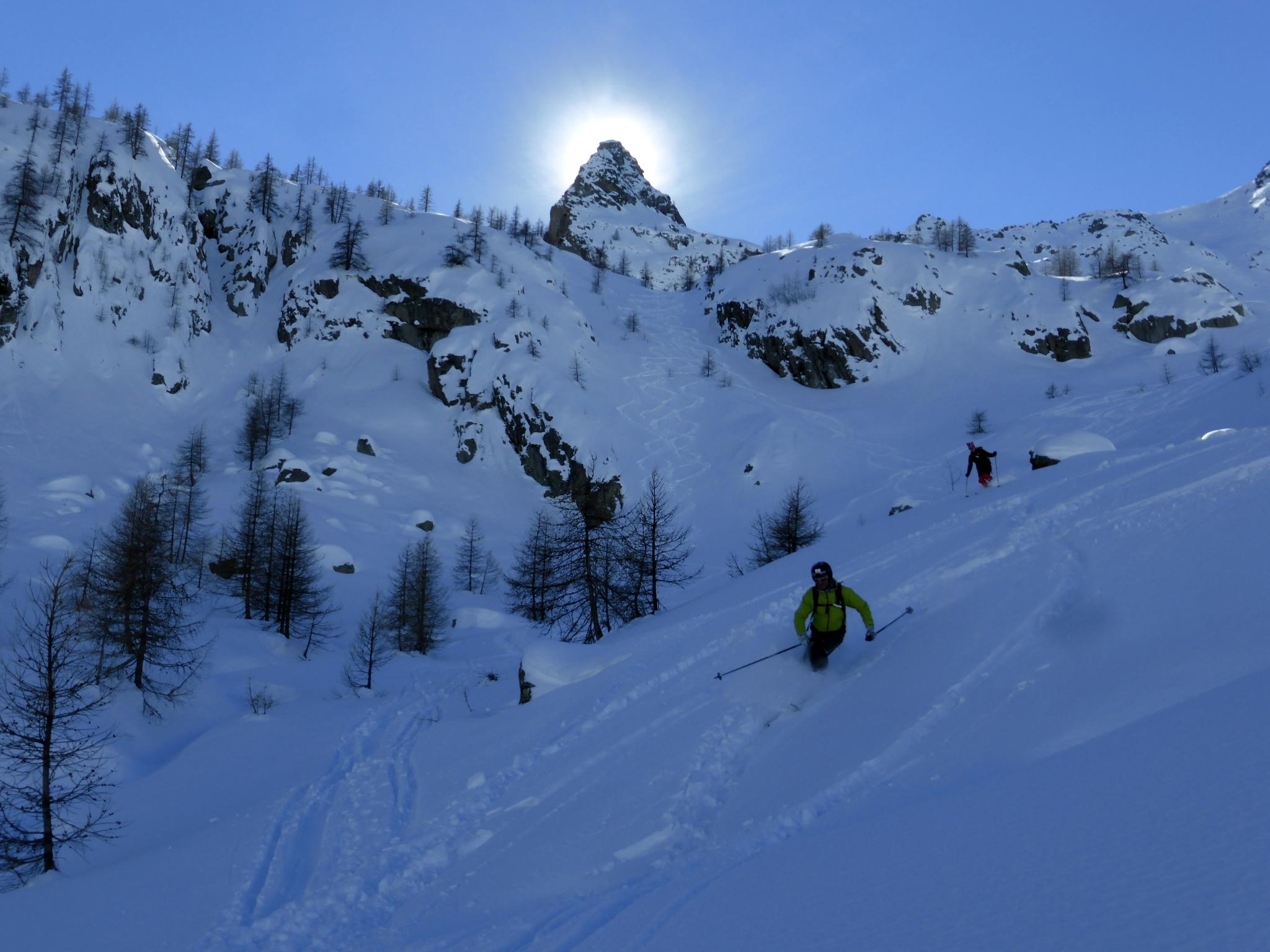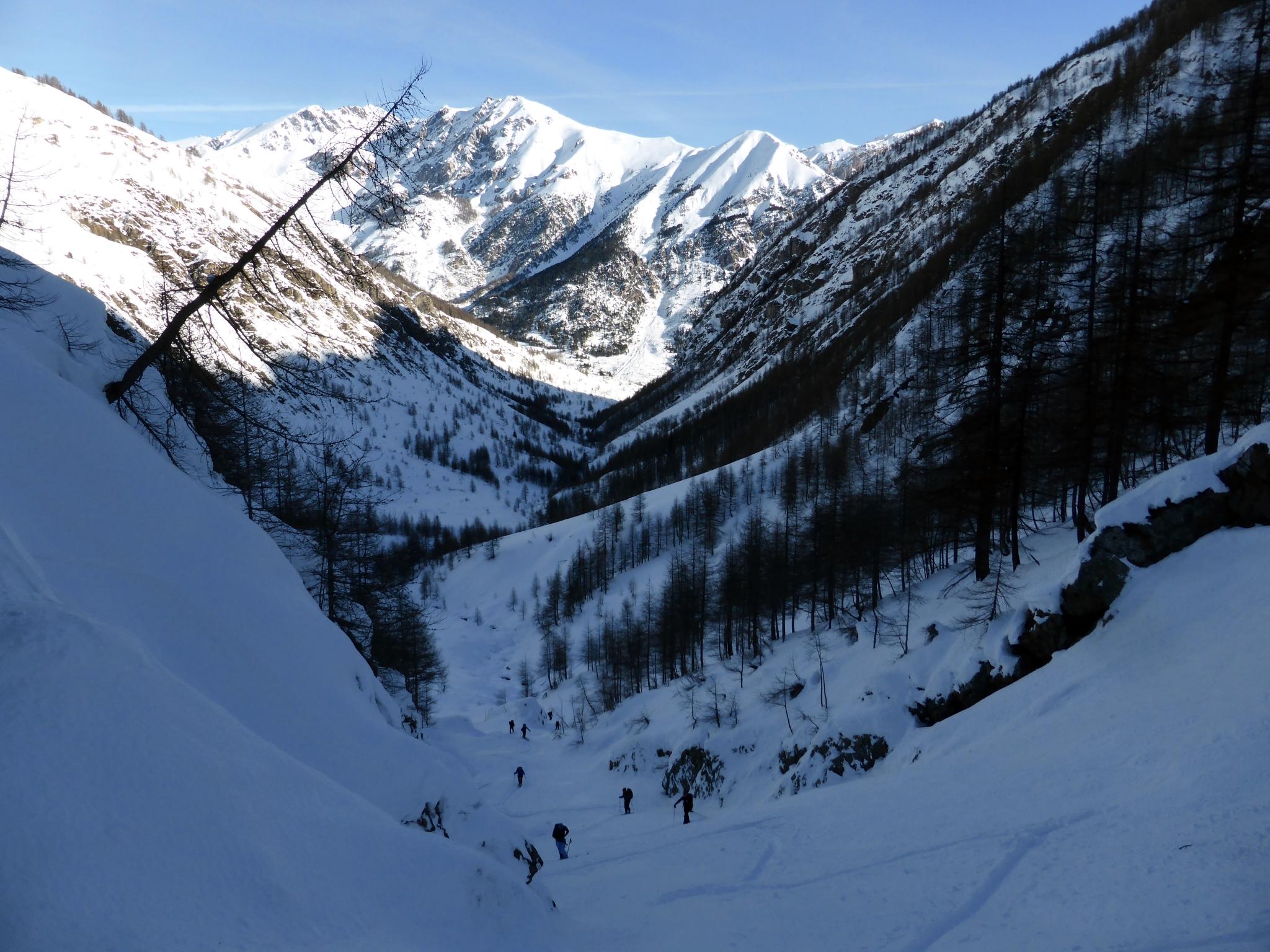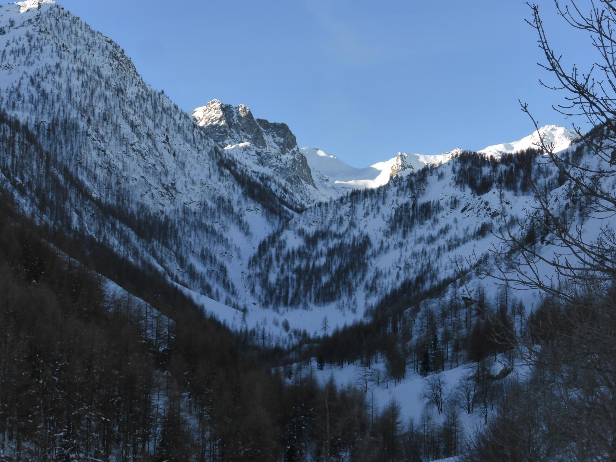 Lawinen: „Nur“ noch LWS 3 mit begünstigtem Nordsektor. Im Vallone Forneris sind an den Vortagen aus den seitlichen Flanken einige teils große Schneebrettlawinen abgegangen. Insgesamt konnte man trotz dieser einzelnen Lawinenabgänge den Eindruck gewinnen, dass der Schneedeckenaufbau hier deutlich stabiler ist als etwa bei uns im Nordalpenbereich. Es waren während der ganzen Tourentage keinerlei Setzungsgeräusche zu hören und der positive Eindruck bezüglich Stabilität der Schneedecke hat sich mit jedem Tag verstärkt.