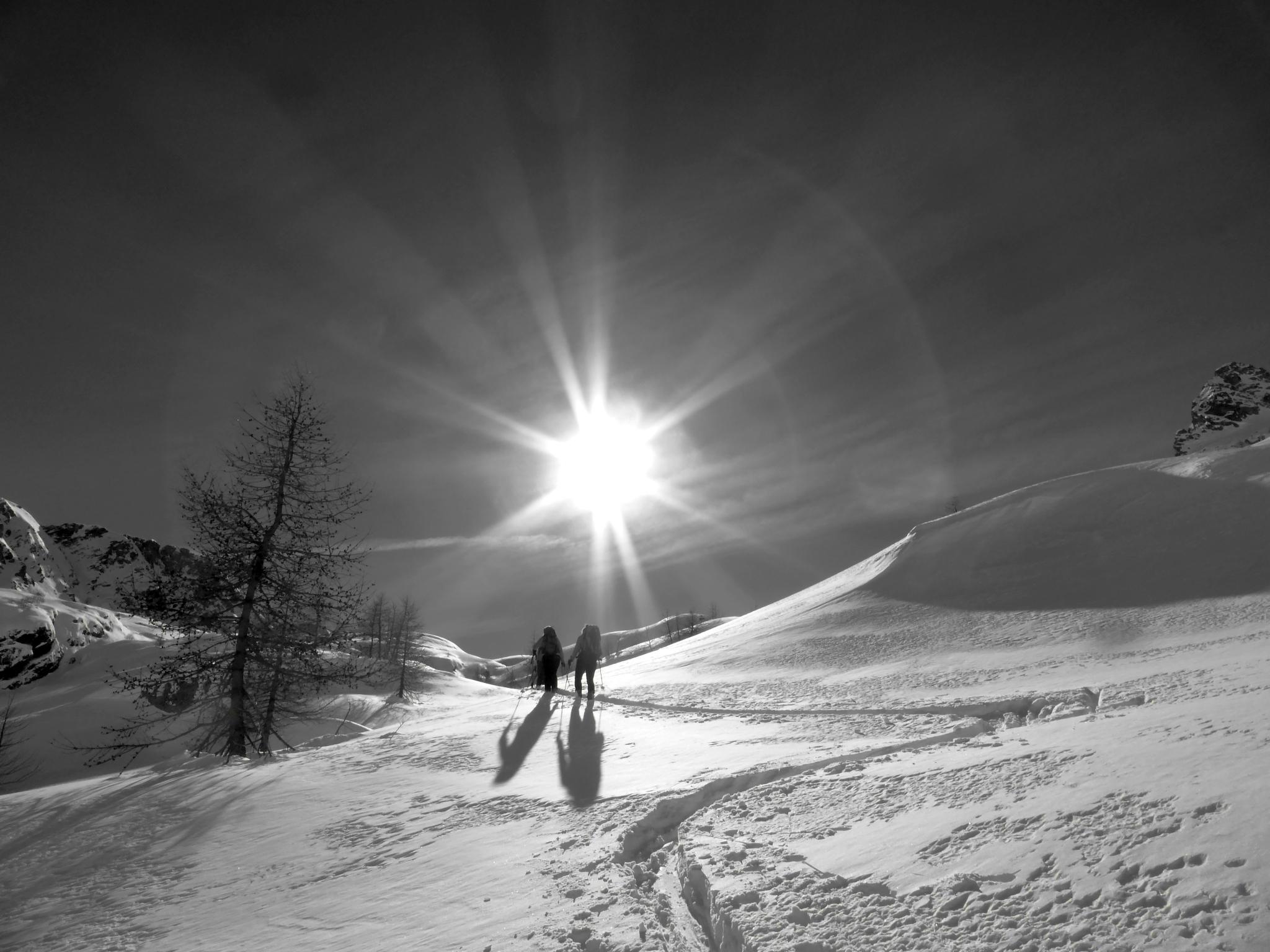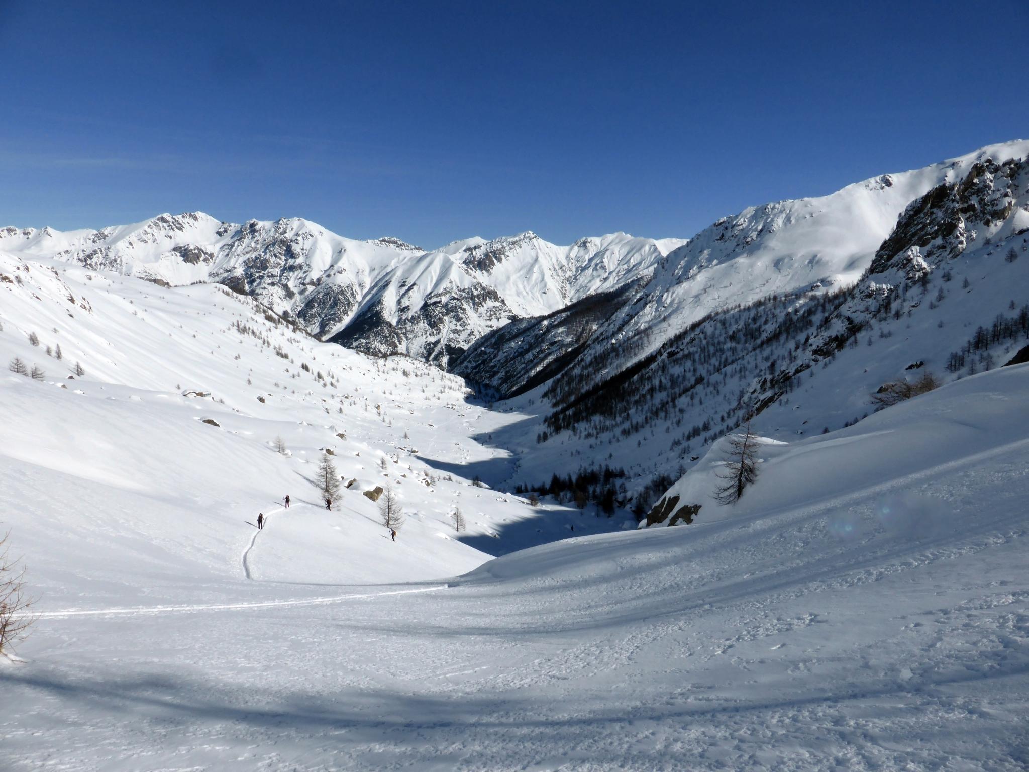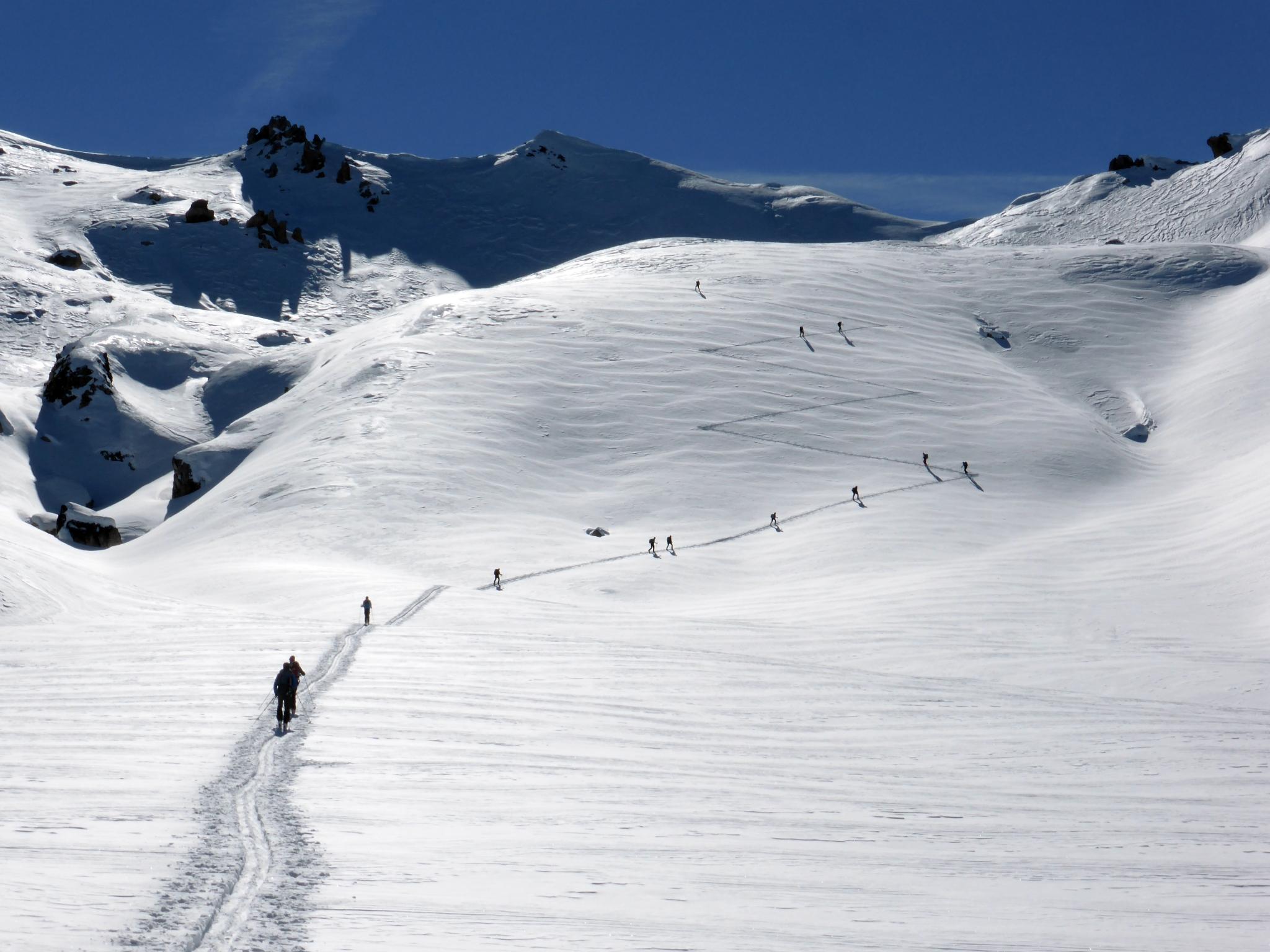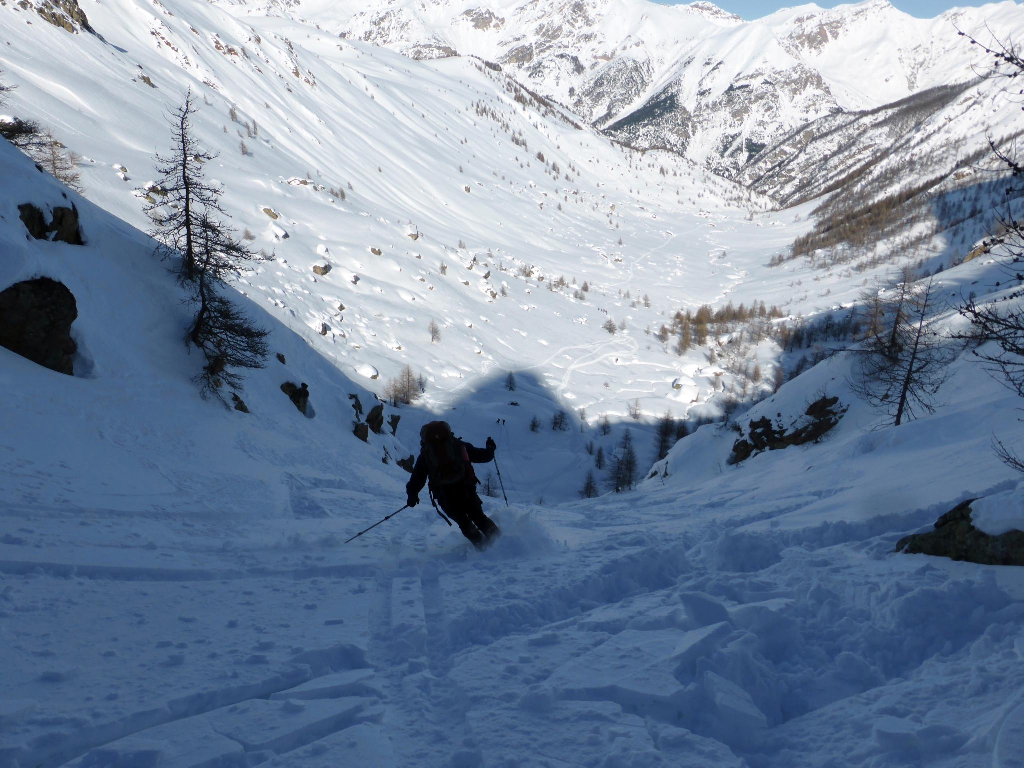 Lawinen: „Nur“ noch LWS 3 mit begünstigtem Nordsektor. Im Vallone Forneris sind an den Vortagen aus den seitlichen Flanken einige teils große Schneebrettlawinen abgegangen. Insgesamt konnte man trotz dieser einzelnen Lawinenabgänge den Eindruck gewinnen, dass der Schneedeckenaufbau hier deutlich stabiler ist als etwa bei uns im Nordalpenbereich. Es waren während der ganzen Tourentage keinerlei Setzungsgeräusche zu hören und der positive Eindruck bezüglich Stabilität der Schneedecke hat sich mit jedem Tag verstärkt.