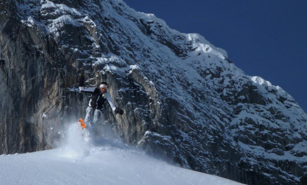 Der obere Teil, insbesondere oberhalb des Scheibenkaser war noch pulvrig. Im wald wurde der viele Schnee aber schon schwer und damit auch schwer zu fahren.