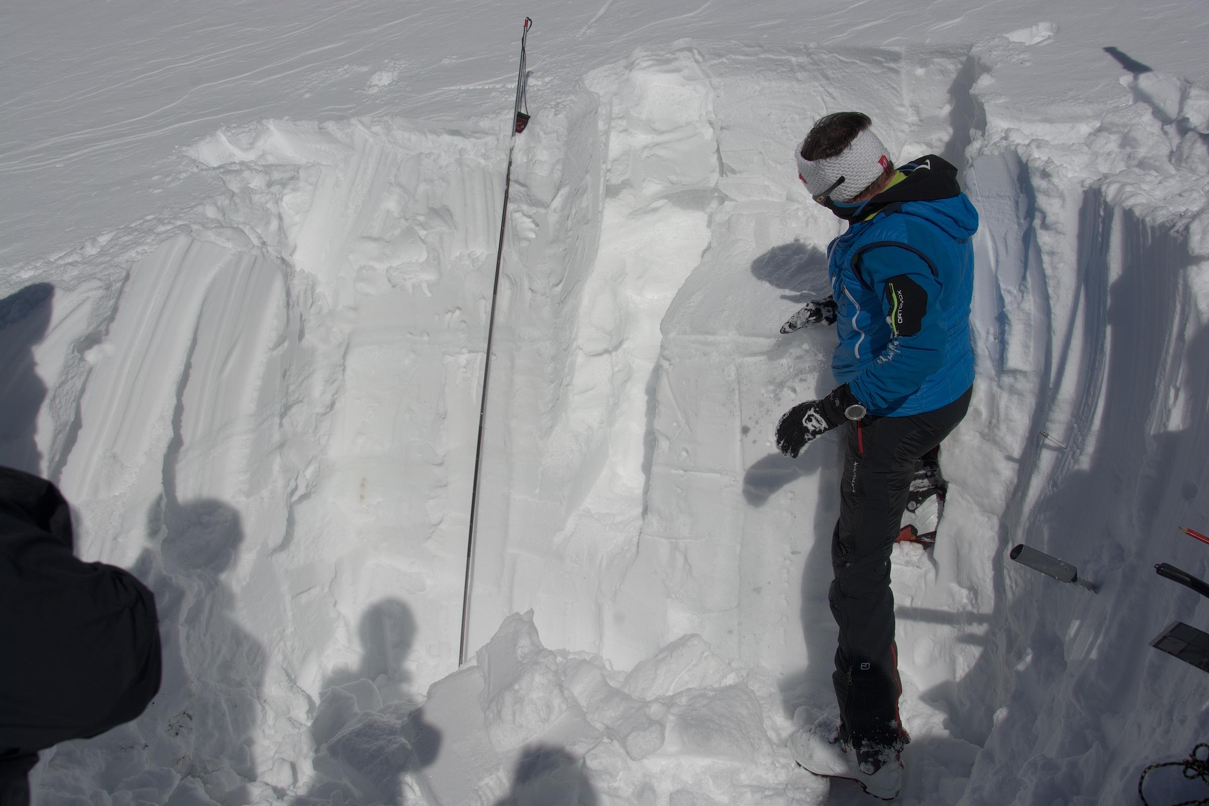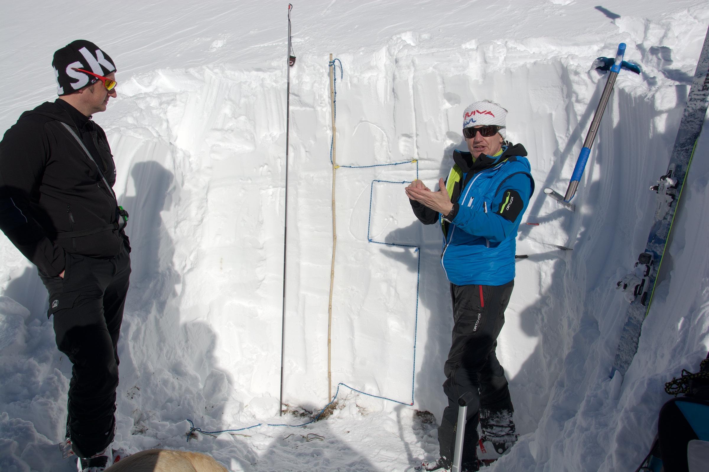 Auf ca. 60 cm Neuschnee wurden eindeutig 2 potentielle Schwachschichten festgestellt.