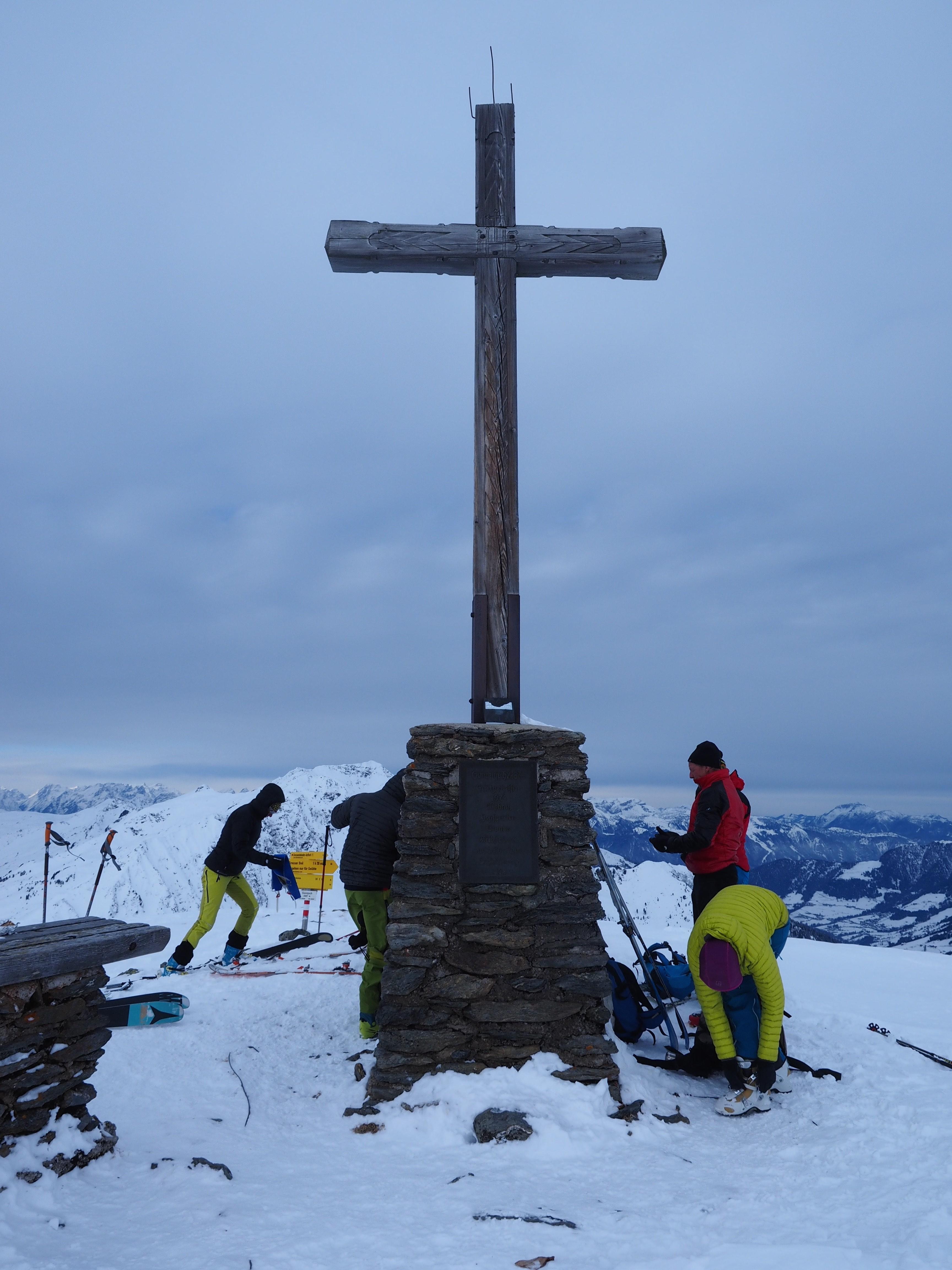 Wetter: hohe Schichtbewölkung Sonne, angenehme Temperatur beim Aufstieg, am Gipfel bereits sehr windig und kalt