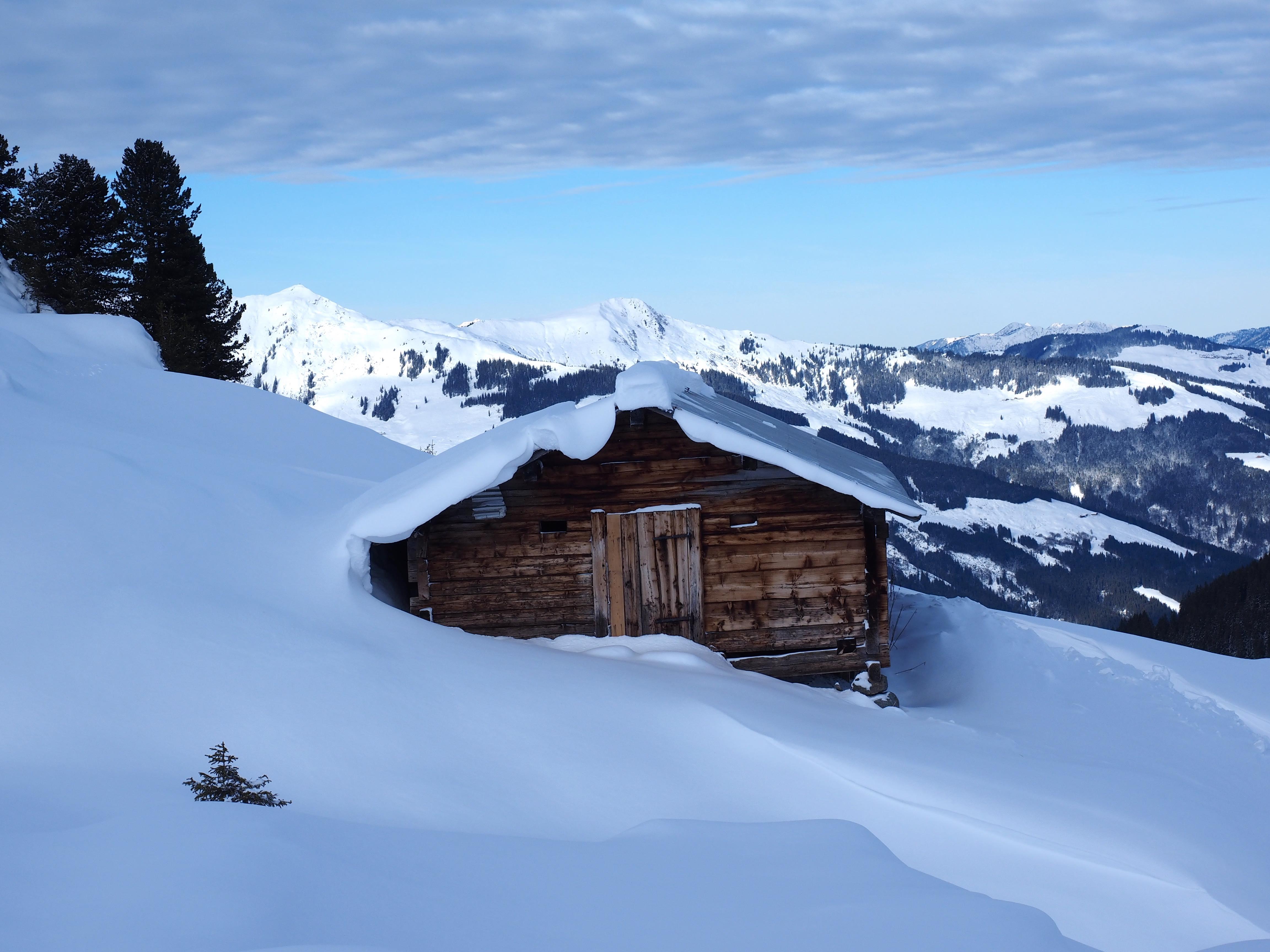 Aufstieg über Kelchsau, Parkplatz GH Wegscheid. Maut = 4 EUR. Straße = vereist.