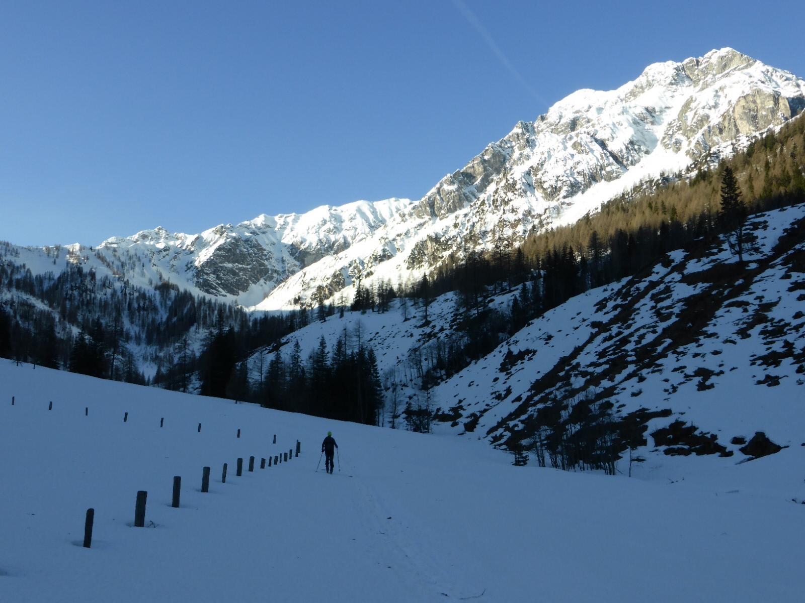 von der oberennsalm ab der ersten strassenkehre längs des alten almweg gute firnbedingungen in sehr gut fahrbarem graben bis täublalm oder längs aufstiegalmweg. anschliessend längs der almstrasse mit gehstrecke zurück zum parkplatz.