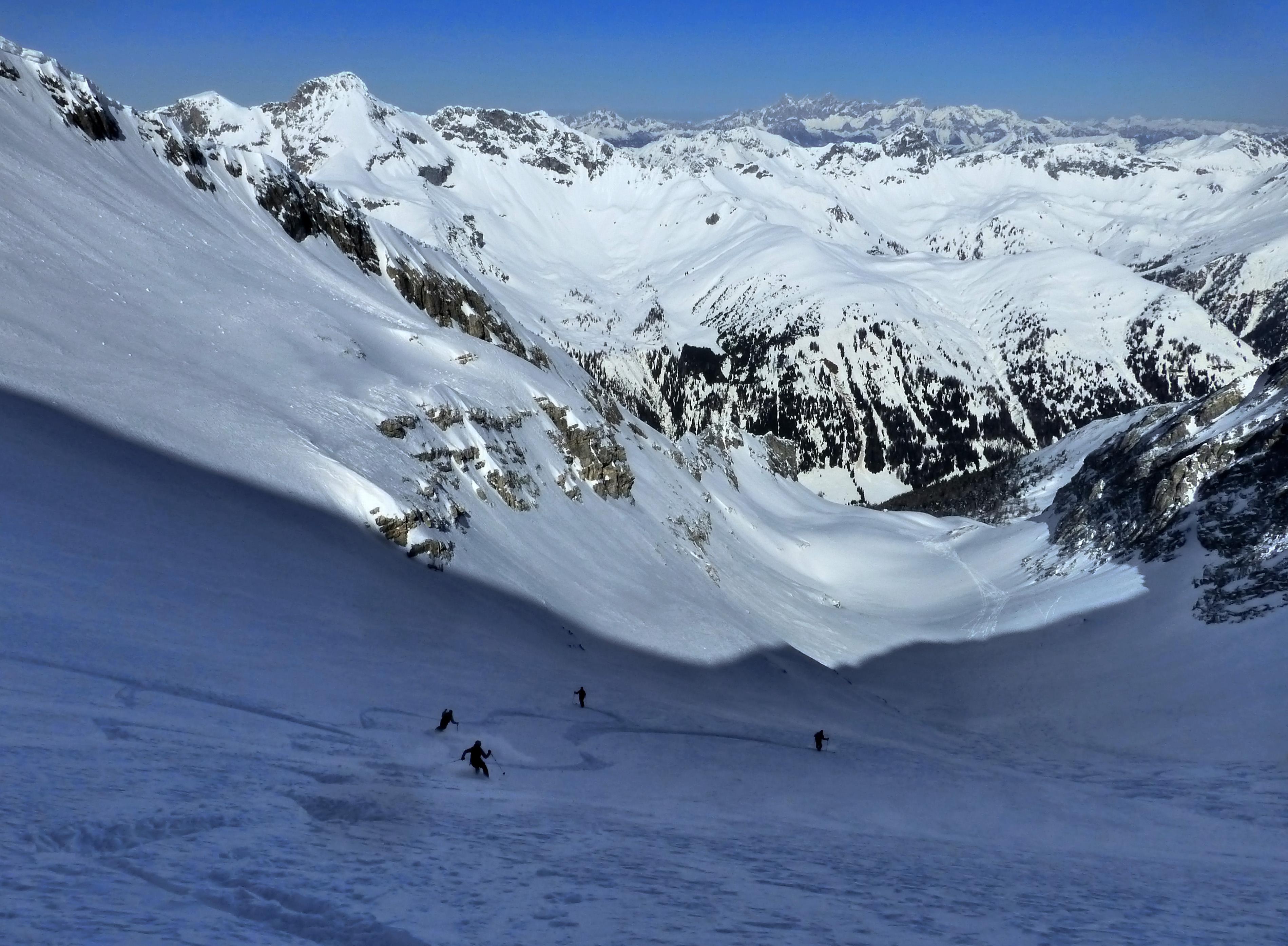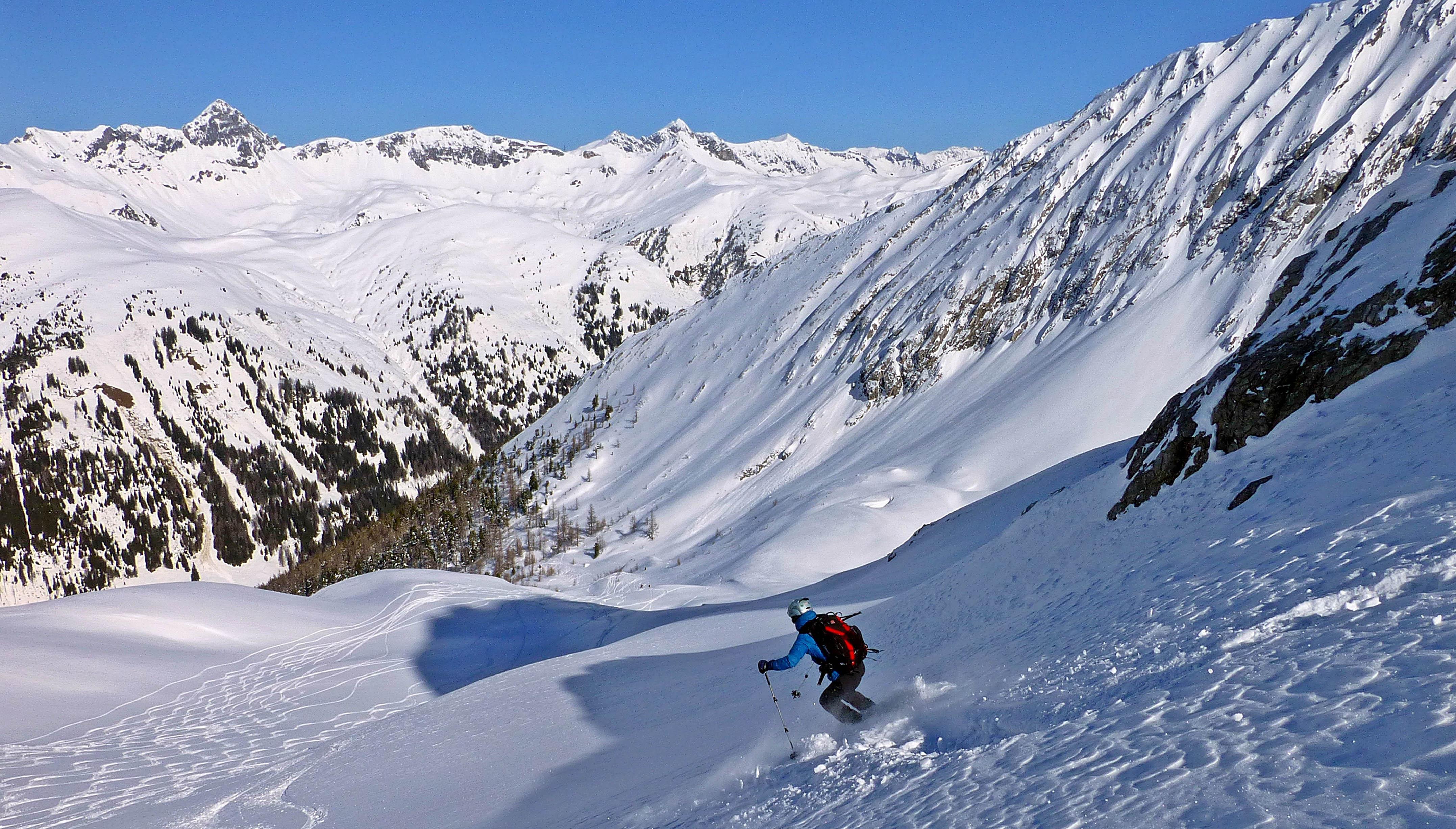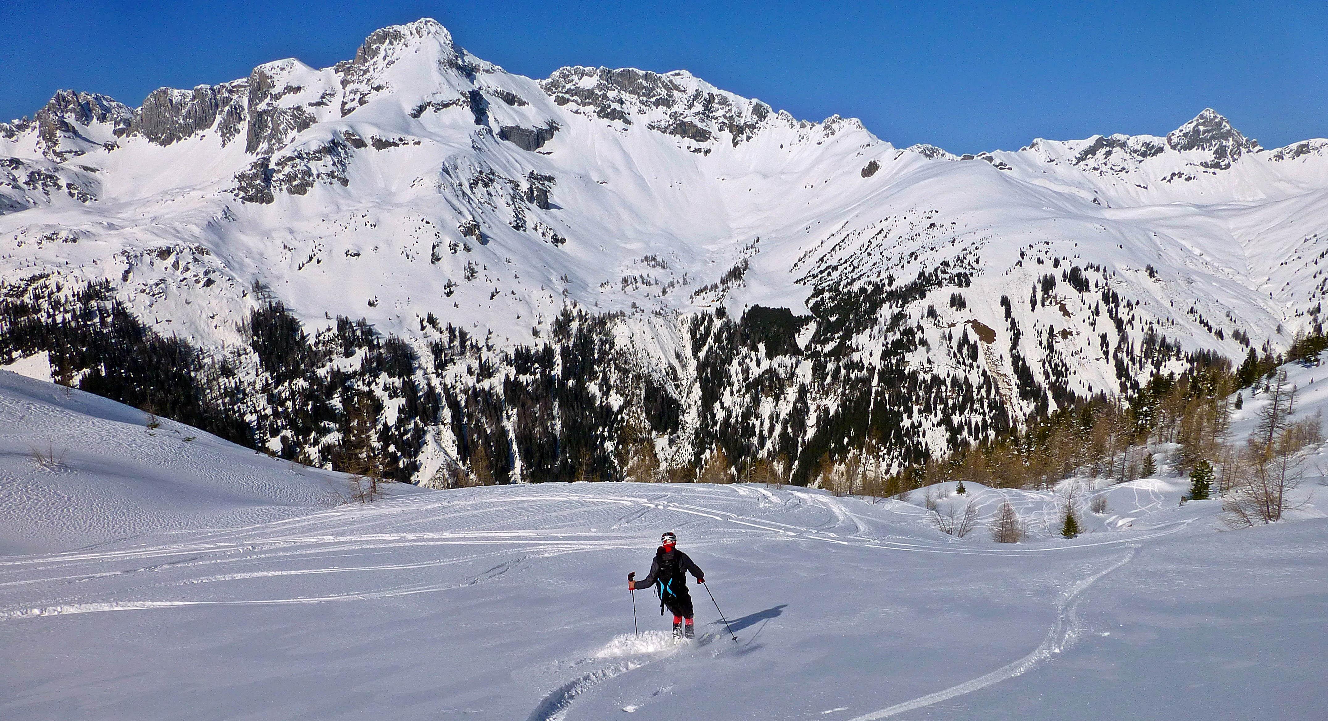 Heute schlossen wir dort an, wo wir vorgestern am Seeköpfl bei Lawinenwarnstufe 3 aufgehört hatten. Bei durchgespurten und sicheren Verhältnissen wagten wir heute den Rundkurs durch das Ödenkar...