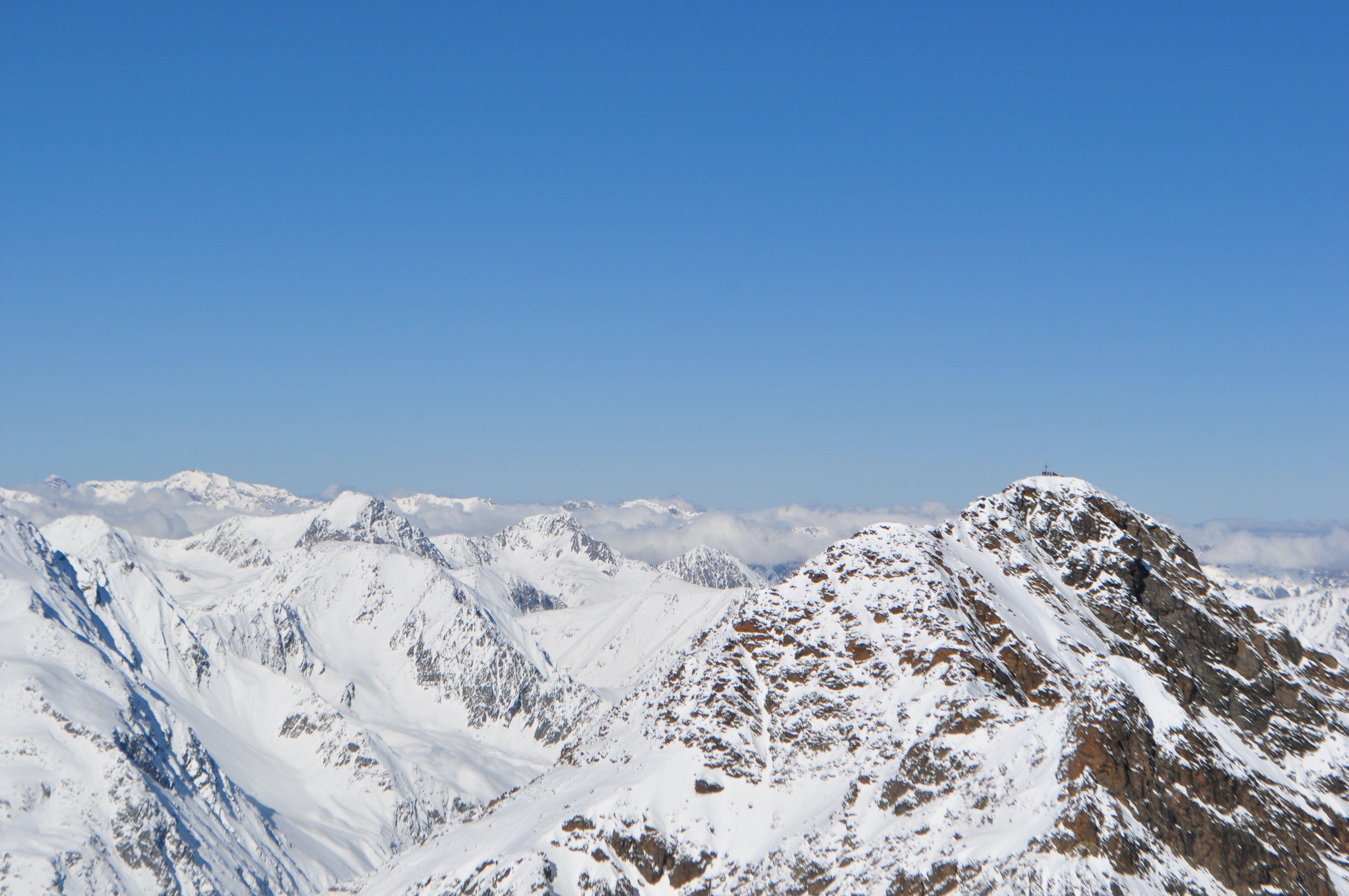 Wetter: warm im unteren Teil, kalt im schattigen Teil, wolkenlos, windstill, beste Fernsicht