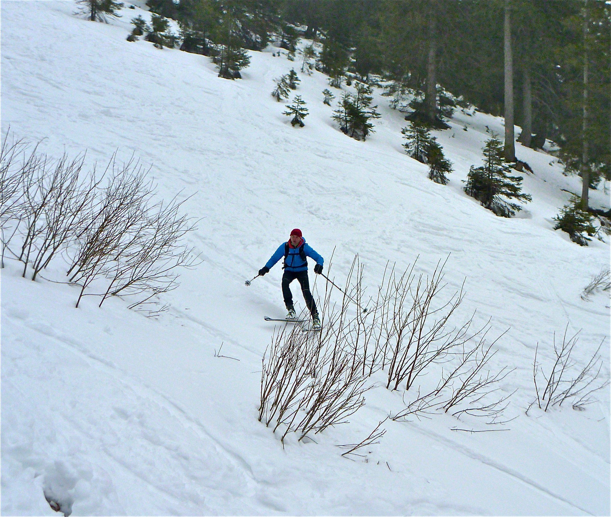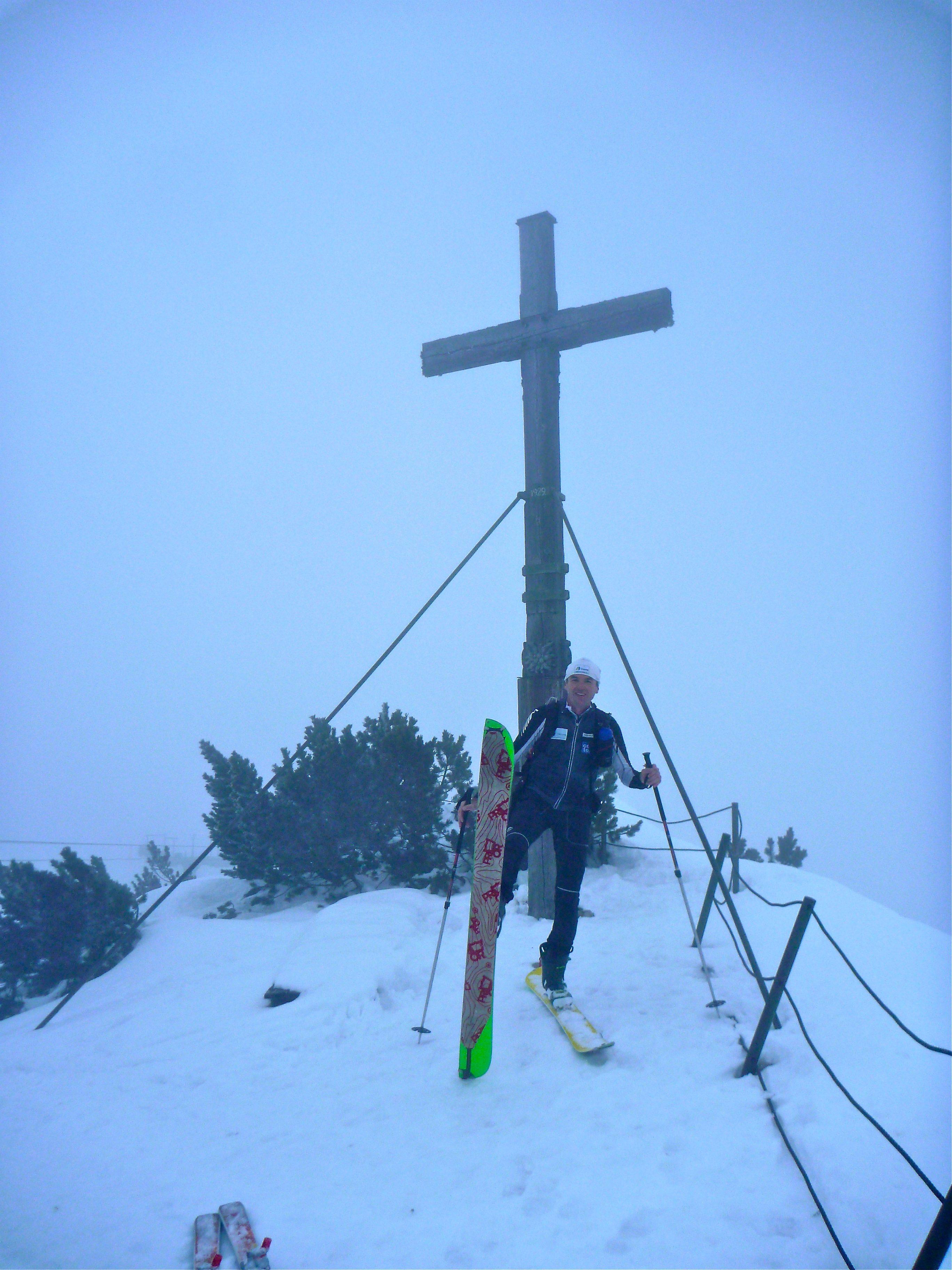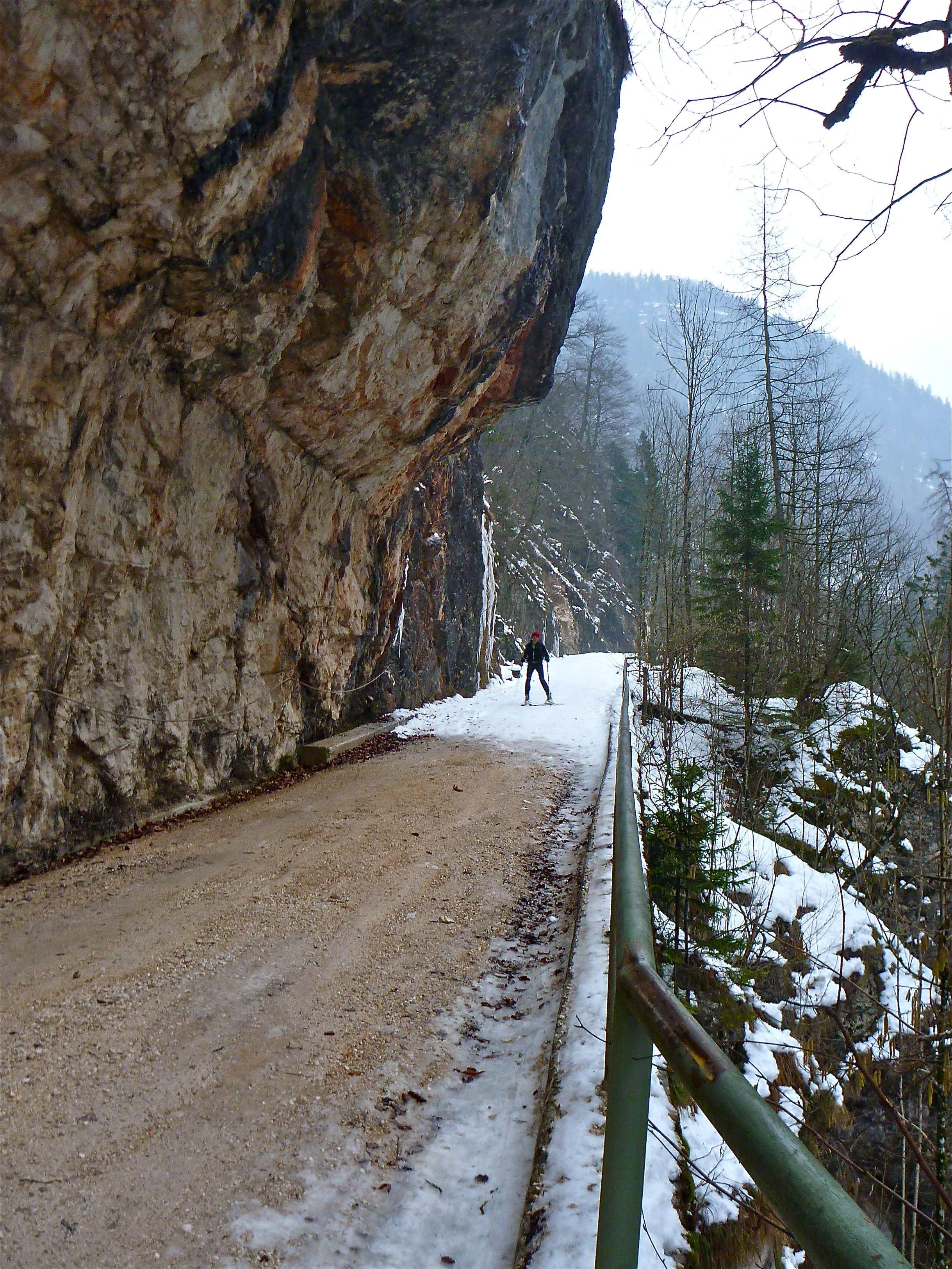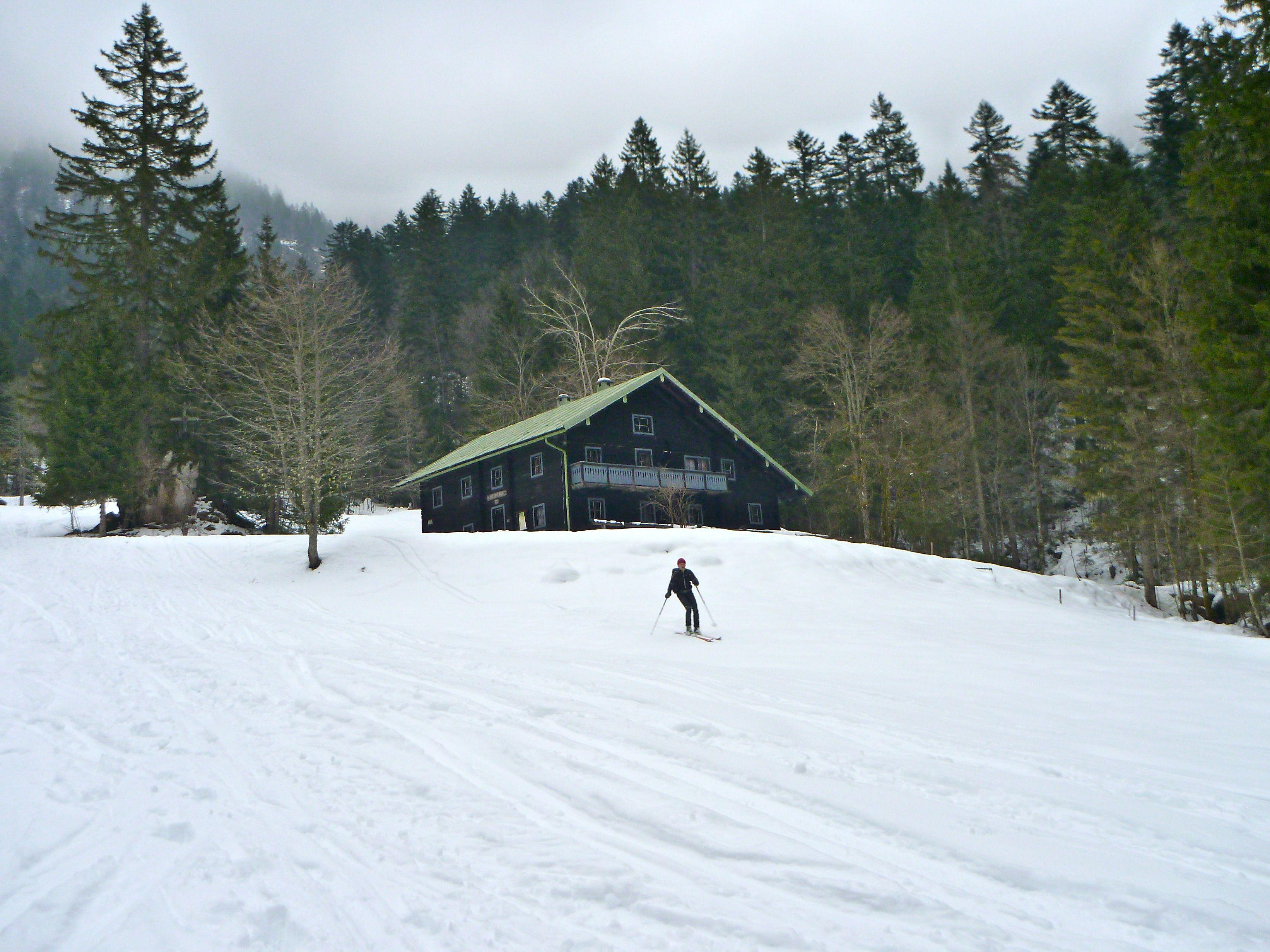 .....also machten wir uns auf Schneesuche. Die Ski konnten direkt am PP in Baumgarten auf 530m angeschnallt werden, und wär es über Nacht nicht kälter geworden, hätten wir auch noch fahrbaren Sulzschnee gefunden. So mussten wir das Skifahren/Snowboarden beinahe neu erfinden, um irgendwie wieder vom Berg zu kommen....