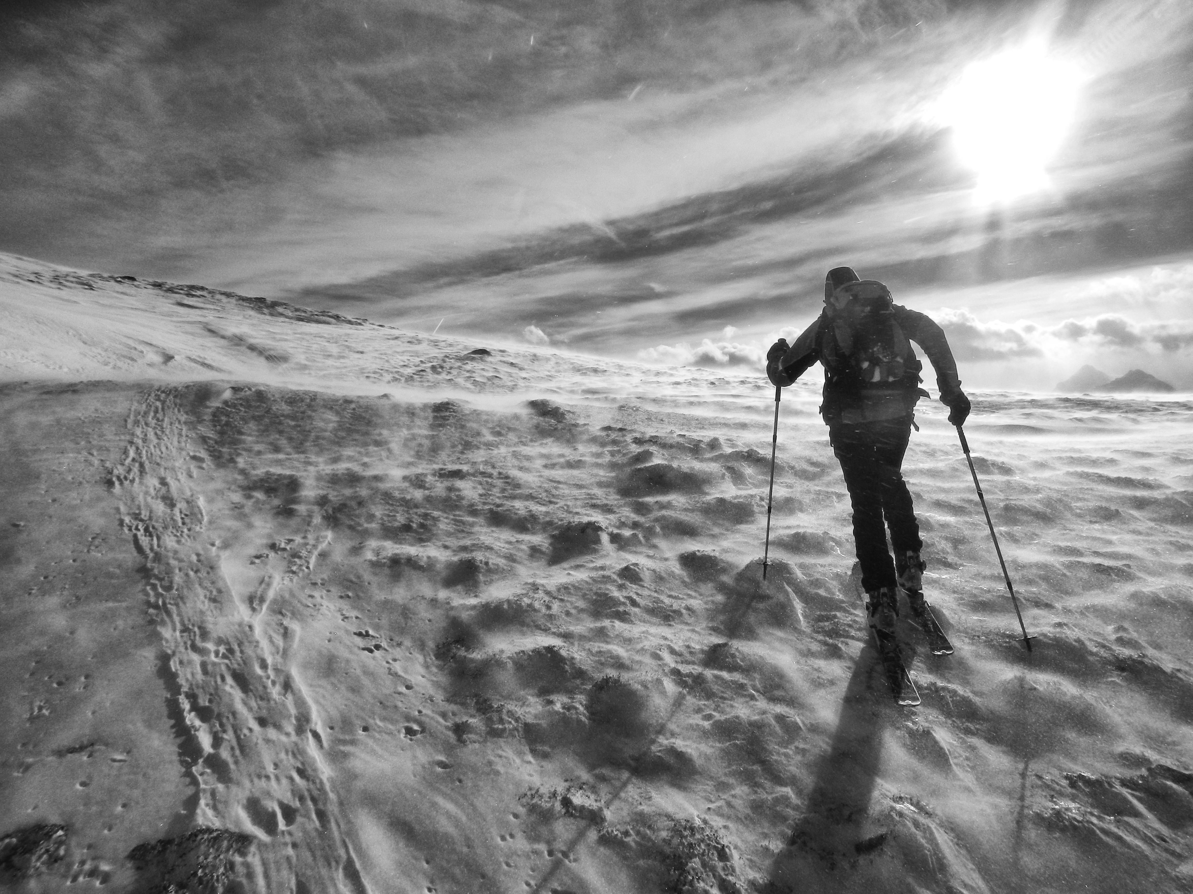 Der heftige Föhnsturm hat den Schnee auf den Kammlagen fast zur Gänze verblasen. 200Hm tiefer liegt er an den Nordhängen als 30 cm tiefer Pulver . Dzt. noch gefahrlos zu befahren.
