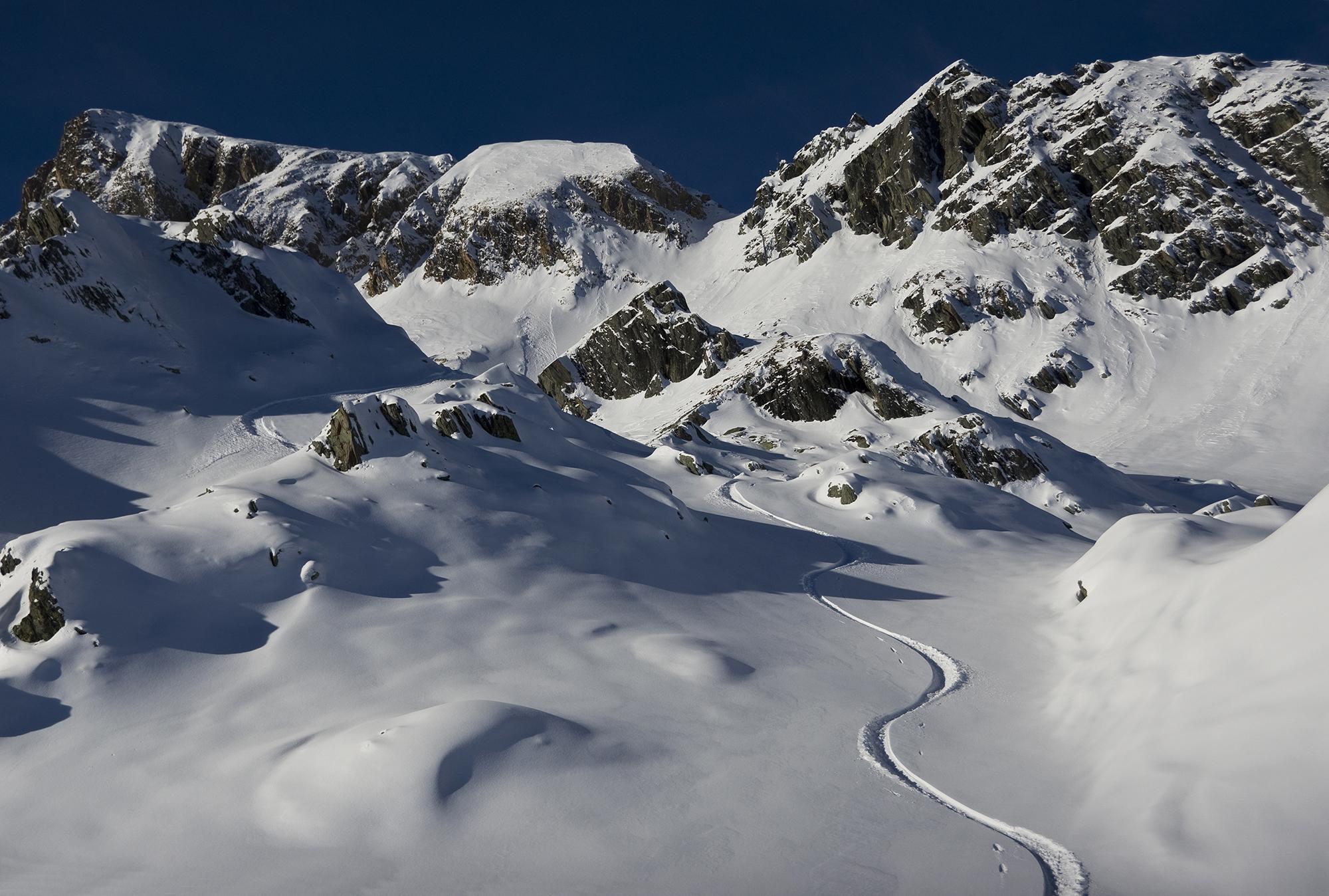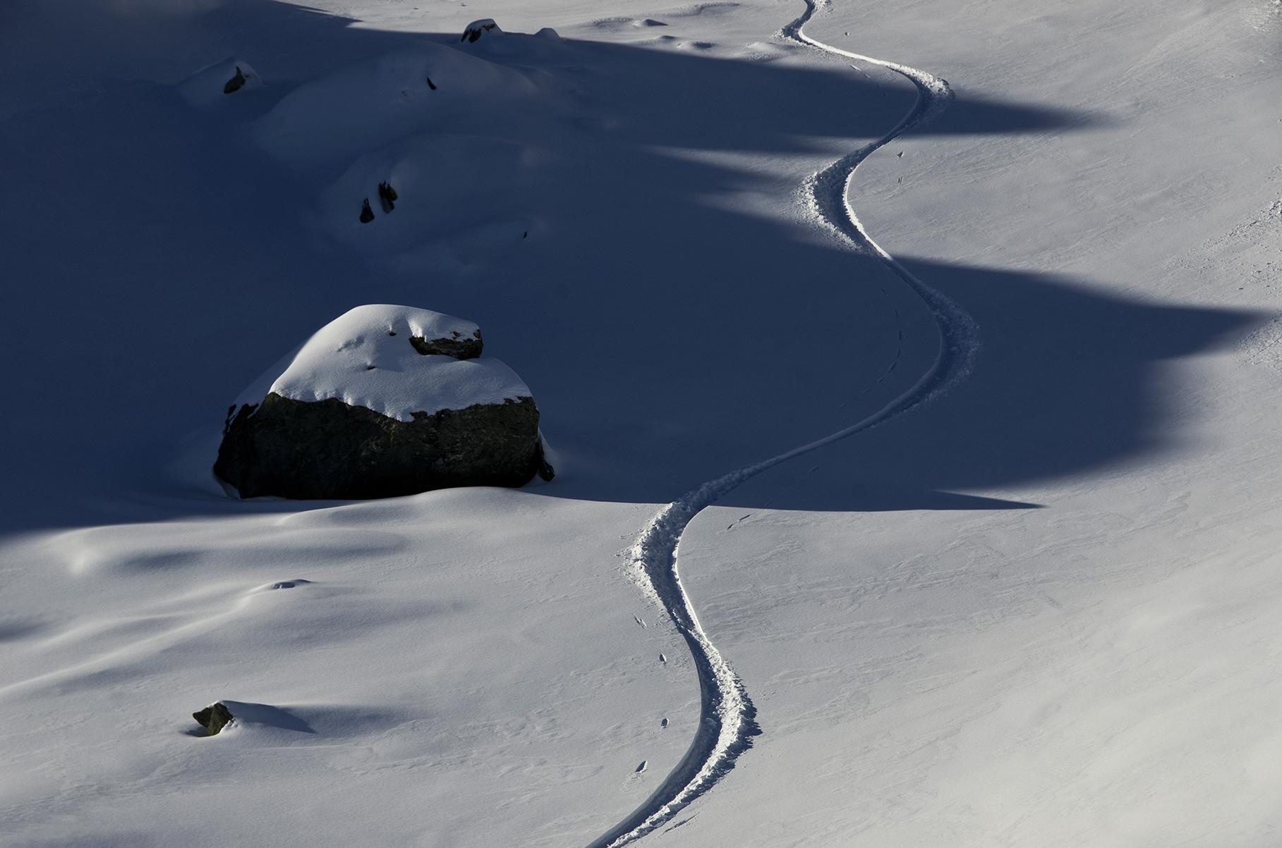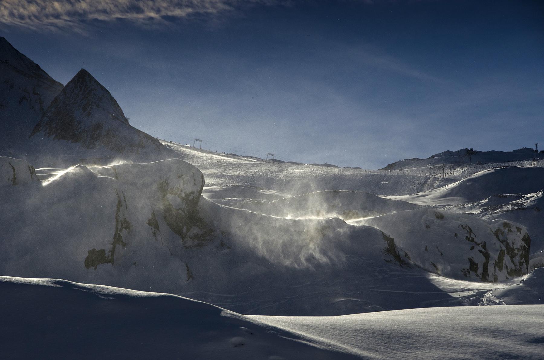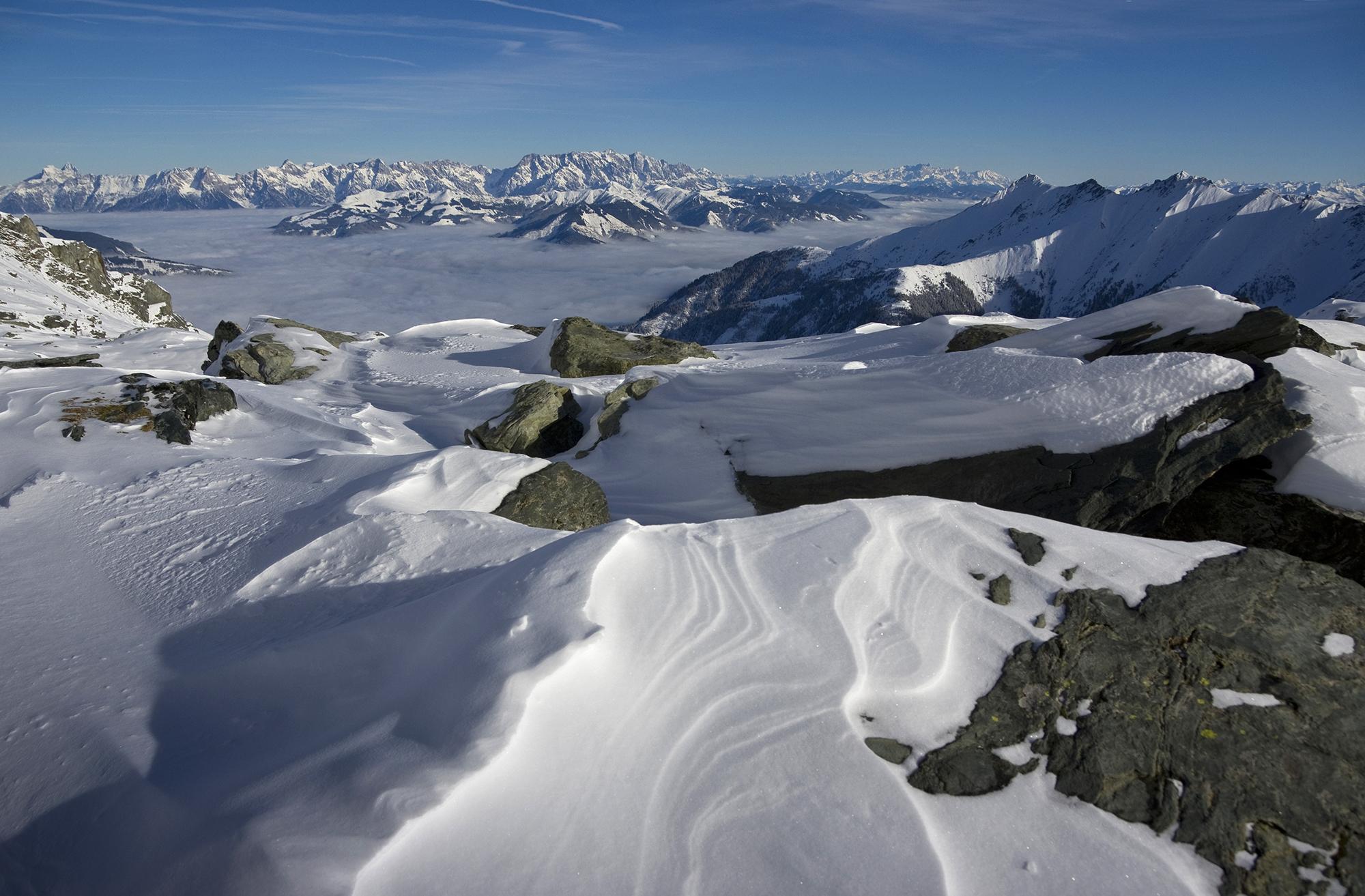 An den Nord- und Westhängen unter dem Kitzsteinhorn liegt zwischen 1900 und 2400m Höhe eine lockere trockene Pulverschneeauflage von 10 bis 15cm auf altem Harschdeckel und überdeckt trügerisch die offenen Felsen. Auf jeder Kuppe abseits der Piste muss man mit Steinkontakt rechnen, die Rinnen gehen gut zu fahren. Ab 2400m aufwärts hat es bis zu 30cm Neuschnee gegeben, der jedoch mit zunehmender Höhe windbehandelter und gepresster wird. Heute waren noch Verfrachtungen zu beobachten, insgesamt aber kein starker Wind mehr. Süd- und ostseitig wird die Schneedecke bis über 2500m Höhe feucht von der Sonneneinstrahlung. Insgesamt kann man bei vorsichtiger und geländeangepasster Fahrweise Steinkontakte vermeiden, trotzdem auch hier: Mehr Schnee muss her.