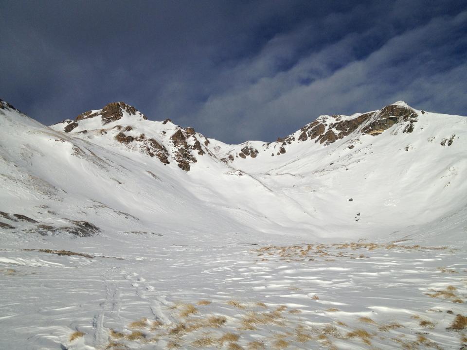 Lawinen: Südseitig Schnee schon stark verblasen. Nicht mehr viel da was abgehen könnte.