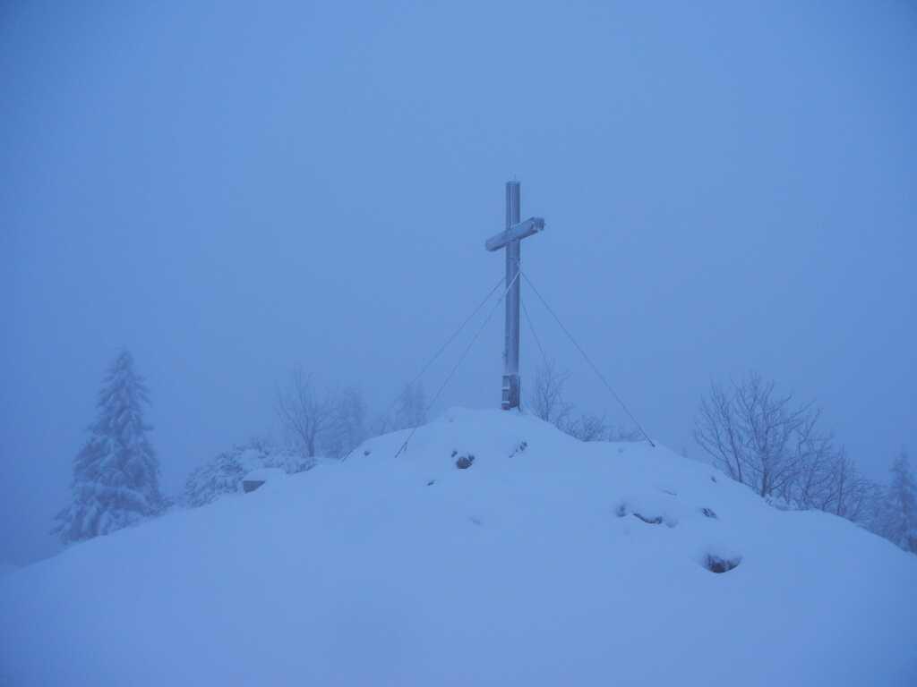 Schneelage: Schneegrenze ca. 800m. Am PP Hintergschwendt ca. 5-10cm Feuchtschnee. Die Schneehöhe nahm dann auf dem Ziehweg mit zunehmender Höhe deutlich zu, bei der Kapelle (1100) ca. 30cm leicht angefeuchteter Pulver, am Gipfel ca. 50cm rel. kompakter Pulver.