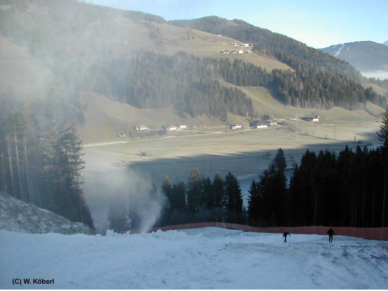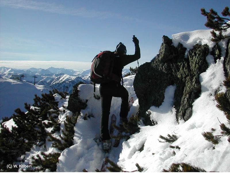 Am 14. 12.02 gingen wir von Mayrdörfl auf der für Schifahrer gesperrten Kunstschnee-Schipiste zur Bergstation der Schischaukel Flachau-Wagrain und weiter zum Grießenkareck 1991 m. Herrliche Fernsicht am Gipfel bei Windstille. Die 200 Höhenmeter hinunter zum Wagrainer Haus gab es sogar unverspurten Pulverschnee.
