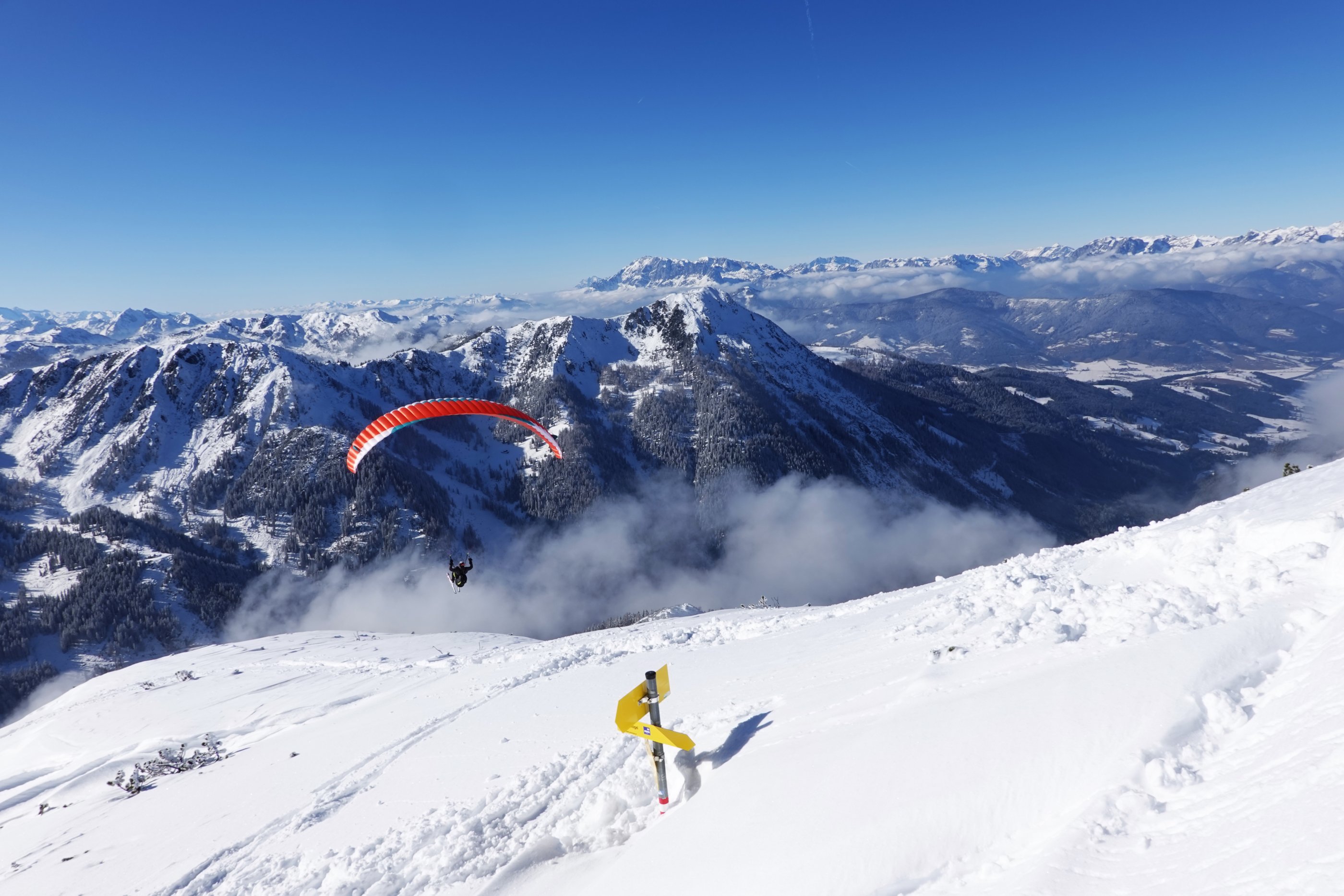 Mit dem Schibus von Altenmarkt nach Zauchensee. Über den klassischen Anstieg auf den Strimskogel. Es schaut tief winterlich aus in der Zauch. Der Grund dafür ist aber der letzte Schneefall und nicht die grundlegende Schneesituation. Bis zur Gabelung Hakopf-Strimskogel Aufstiegsspuren, die dann aus gutem Grunde nur zum Hakopf führen. Ab der Kreuzung also gespurt. Die Abfahrt ist teilweise vermutlich ok, die letzten 250Hm vom Strimskogel sicherlich nicht empfehlenswert. Wir sind mit dem Paragleiter raus nach Altenmarkt geflogen. War heute auf jeden Fall hier die bessere Option.