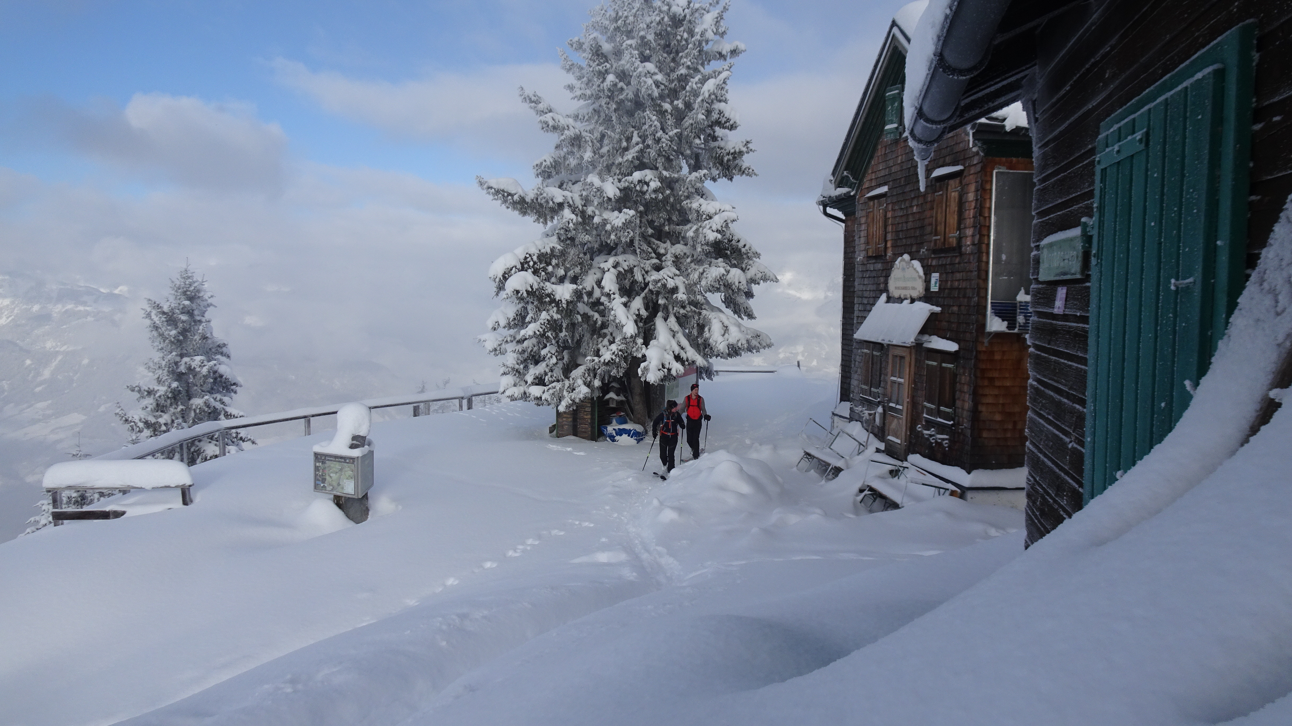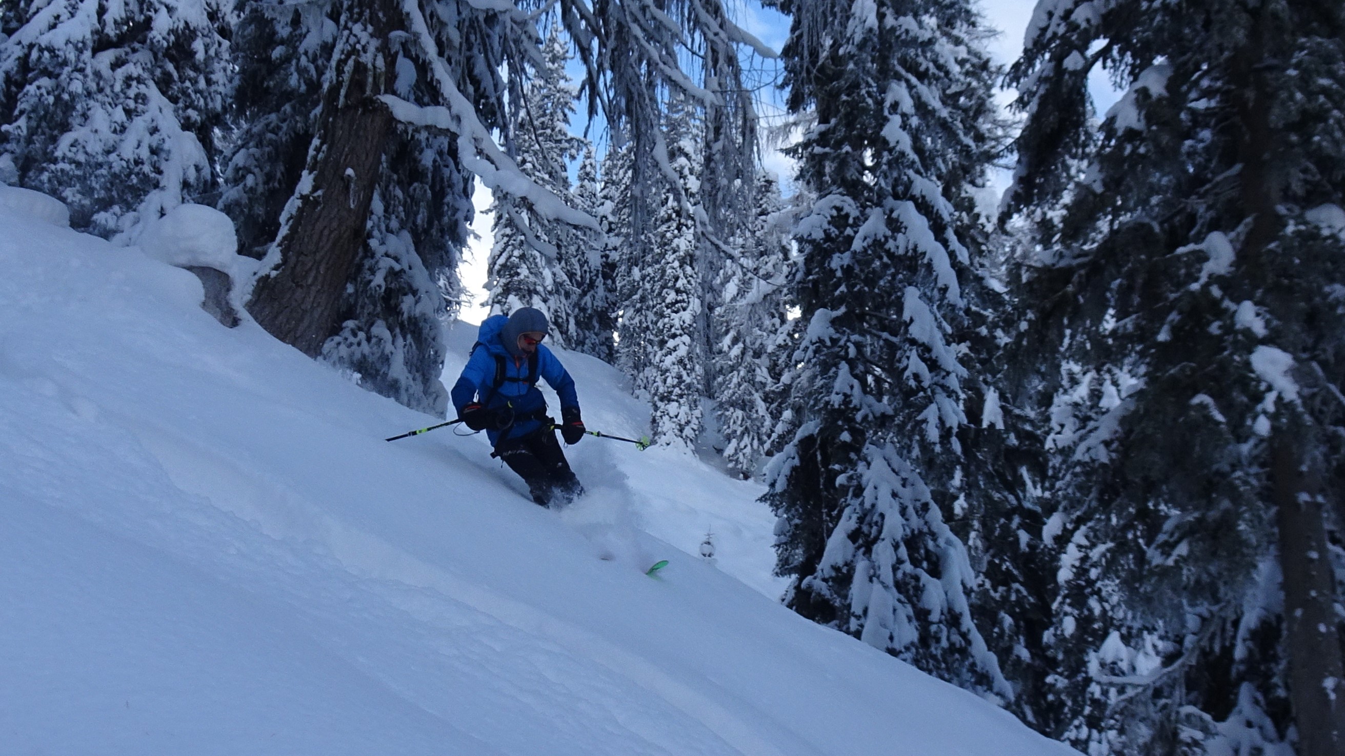 Der Hausberg zeigt sich von seiner besten Seite, Pulferschnee, fast windstill und schöne Stimmungen.