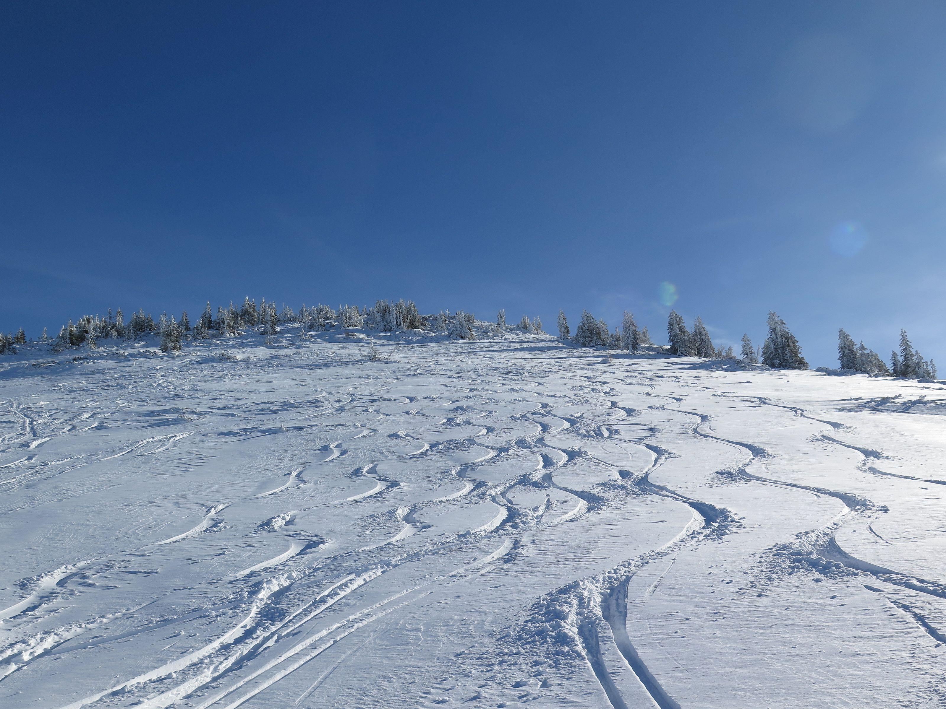 Sonnenschein und Pulverschnee ist heute die Kurzfassung. Am Start - 9 Grad ,gute Schneelage. Ab Genneralm windig, im Gipfelbereich zeitweise lebhaft, dort ist der Schnee kurz windgepreßt. In der Früh war der Parkplatz fast leer, zu Mittag schon ausgelastet. Ein Bergfreund aus Thalgau hat beim Aufstieg seine Sonnenbrille verloren - wurde mit dem Sackerl auf einen Ast gehängt( Fundort siehe letztes Bild) später von jemanden versehentlich mitgenommen, der ehrliche Finder möge sich bitte melden unter 0664-9257654 danke Andy
