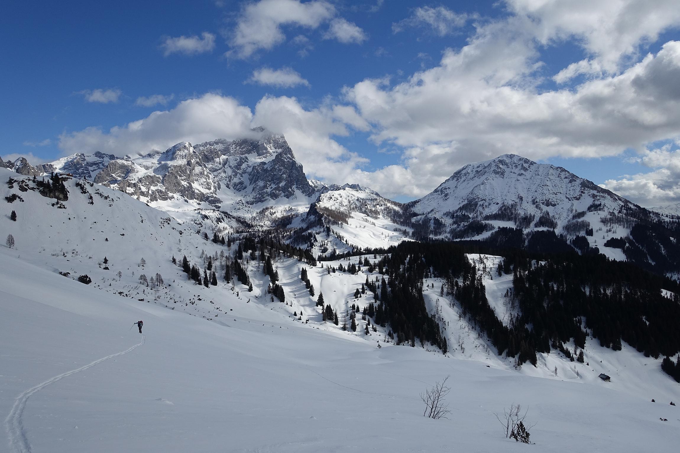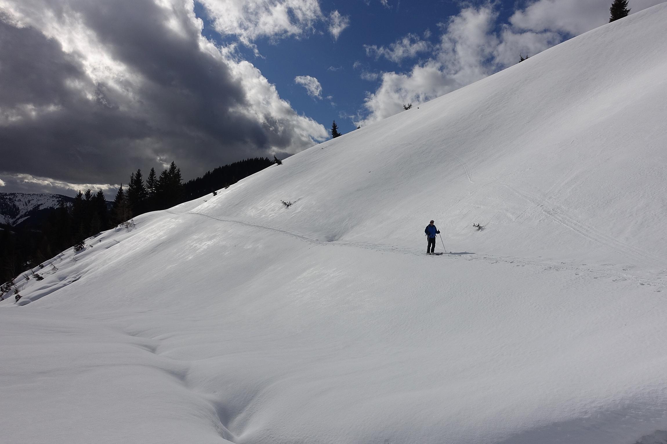 Von der Mautstelle über die Retteneggalm in Richtung Leckkogel. Leider hat sich die Wolkendecke schon früher als vorhergesagt vor die Sonne geschoben und daher ein auffirnen verhindert. Ca. 200Hm unterm Gipfel umgekehrt - keine Aussicht auf Firn und sehr diffuse Lichtverhältnisse. Der Abfahrtsgenuss hielt sich in Grenzen - bis auf einige wenige Firnschwünge alles knusprig und zum Teil auch etwas Bruchharsch dabei.