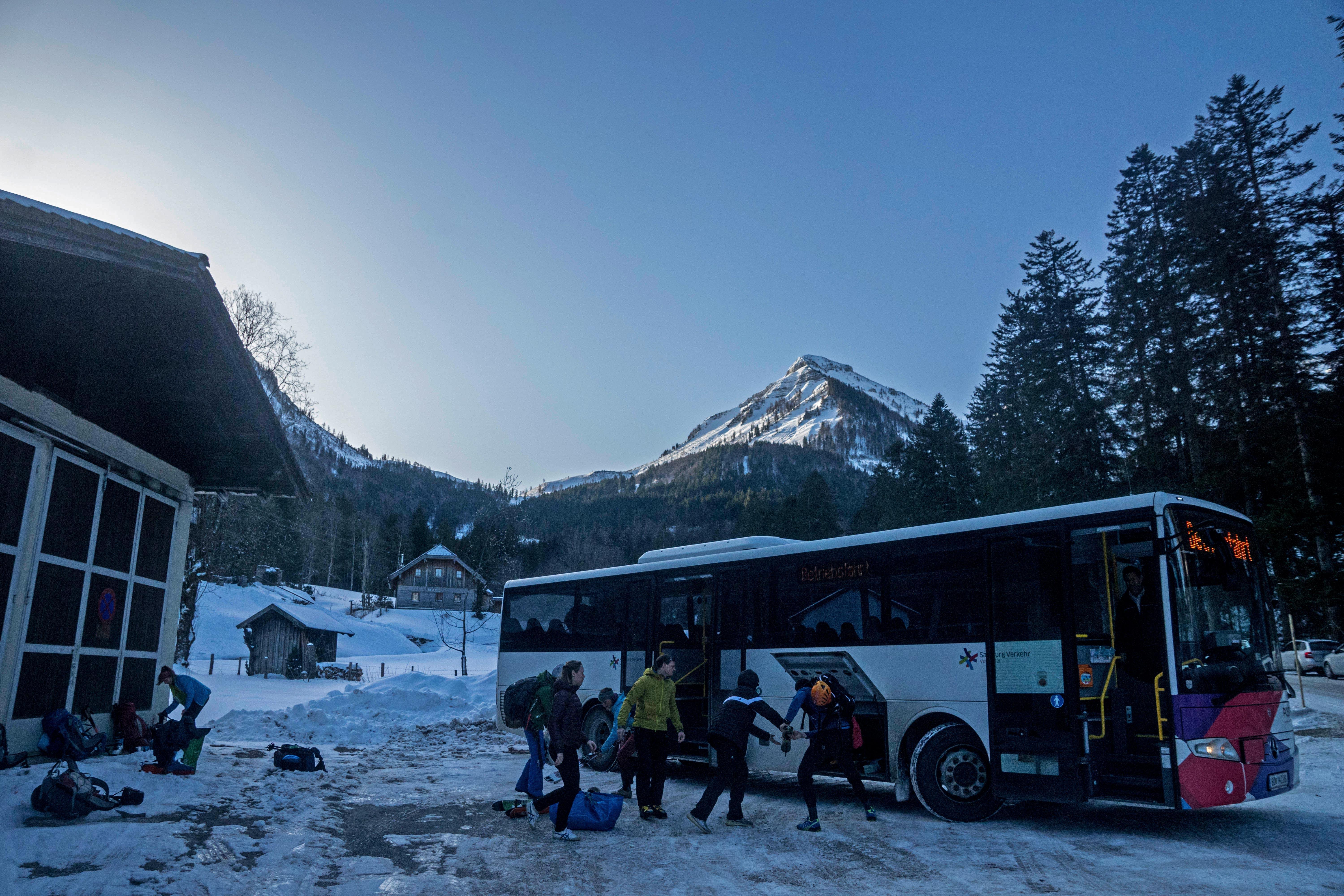 Bei gemischten Schneeverhältnissen machen wir uns mit unserer AV-Jugendgruppe zu einen Skitourenwochenende auf die Genneralm. Die Anfahrt für den Postbus nach Lämmerbach gestaltet sich schwierig. Der SVV ist da echt super aber "unverständlicher" weise parkten ca. 40 Auto entlang der Straße im Parkverbot die halbe Straße zu. Die Situation ist echt kompliziert. Wir trafen auch zwei sehr aufgebrachte Anwohner. Nehmt bitte Rücksicht beim Parken, wir wollen dort ja alle noch länger gehen!!!