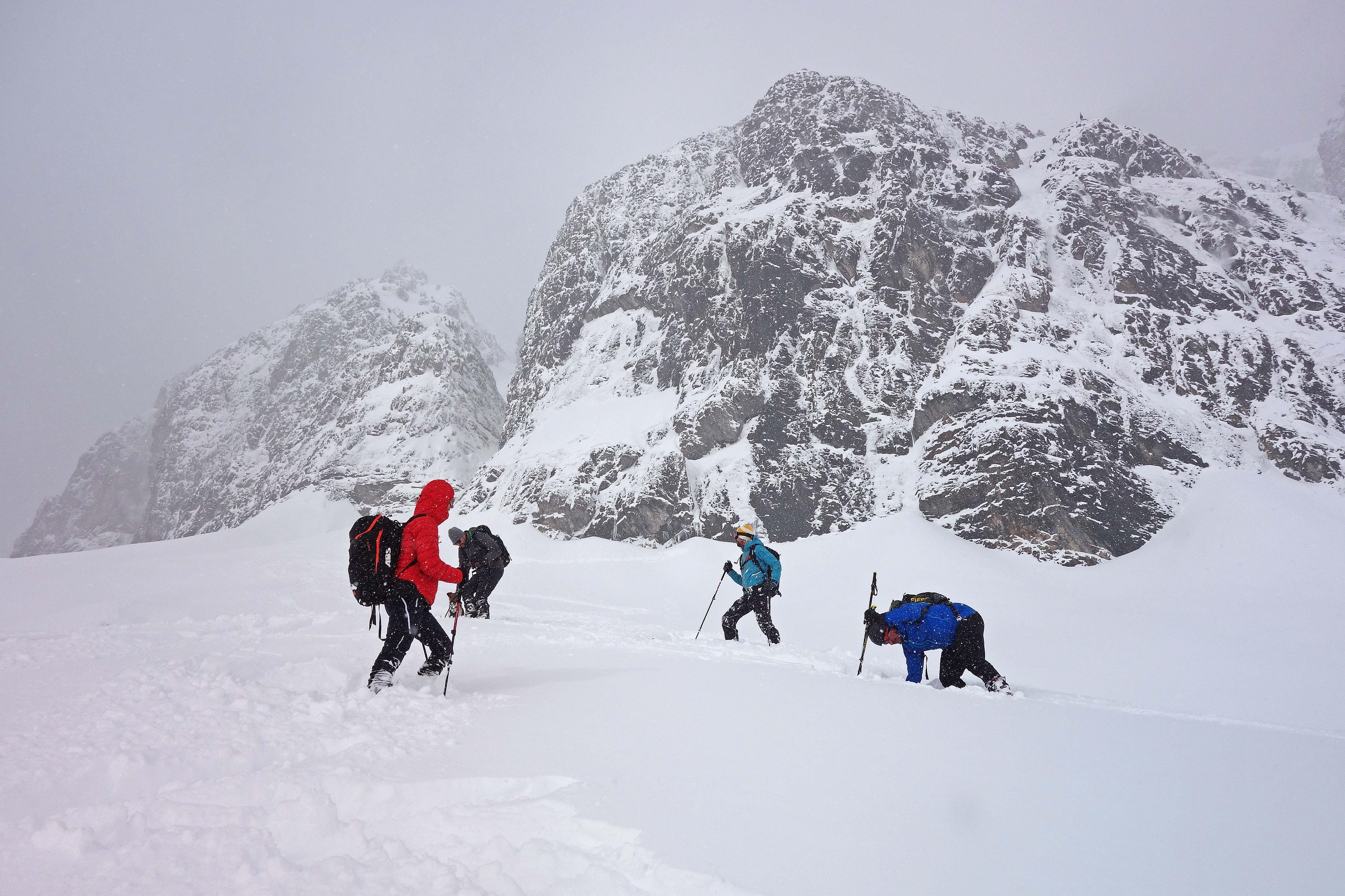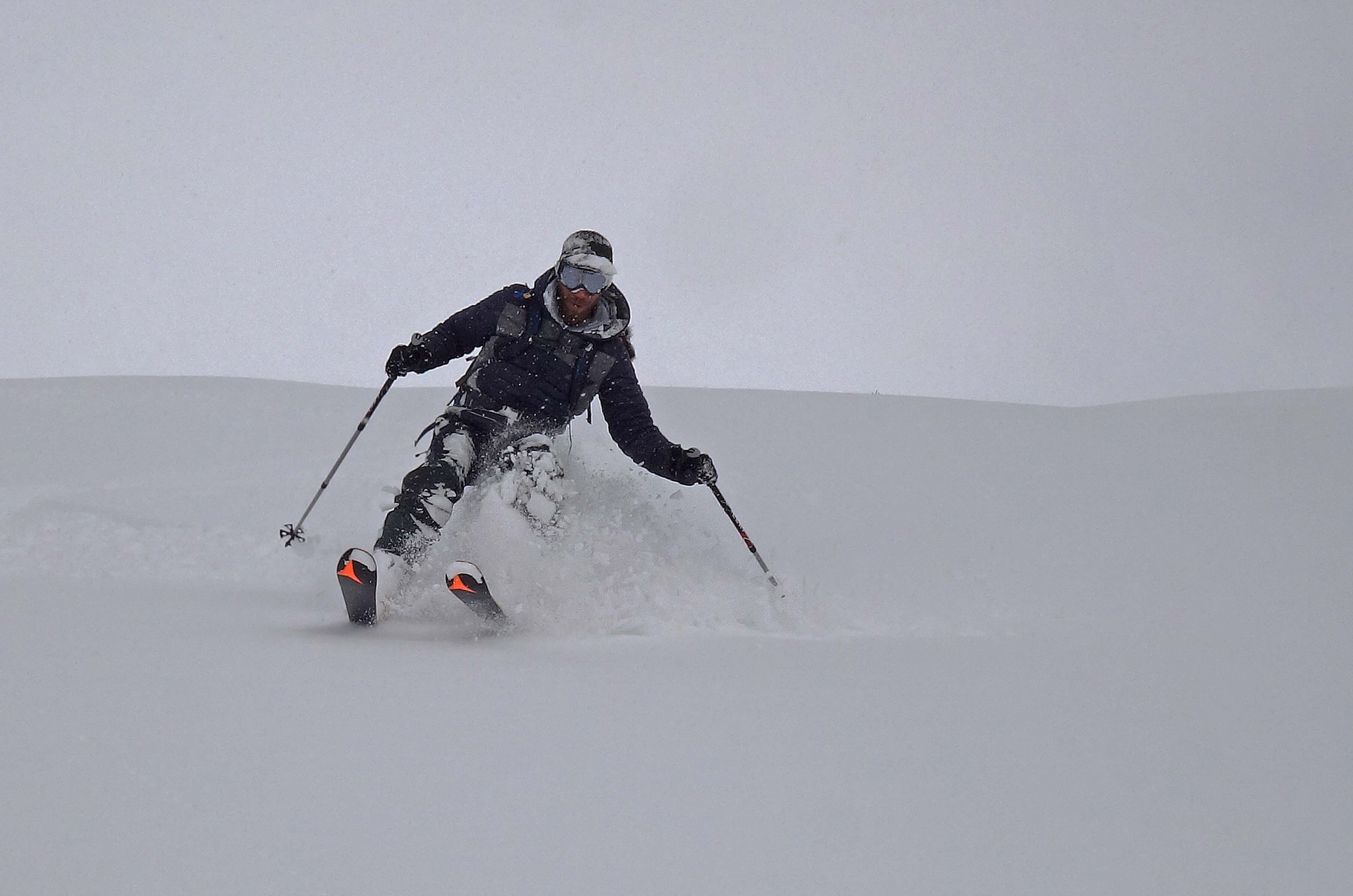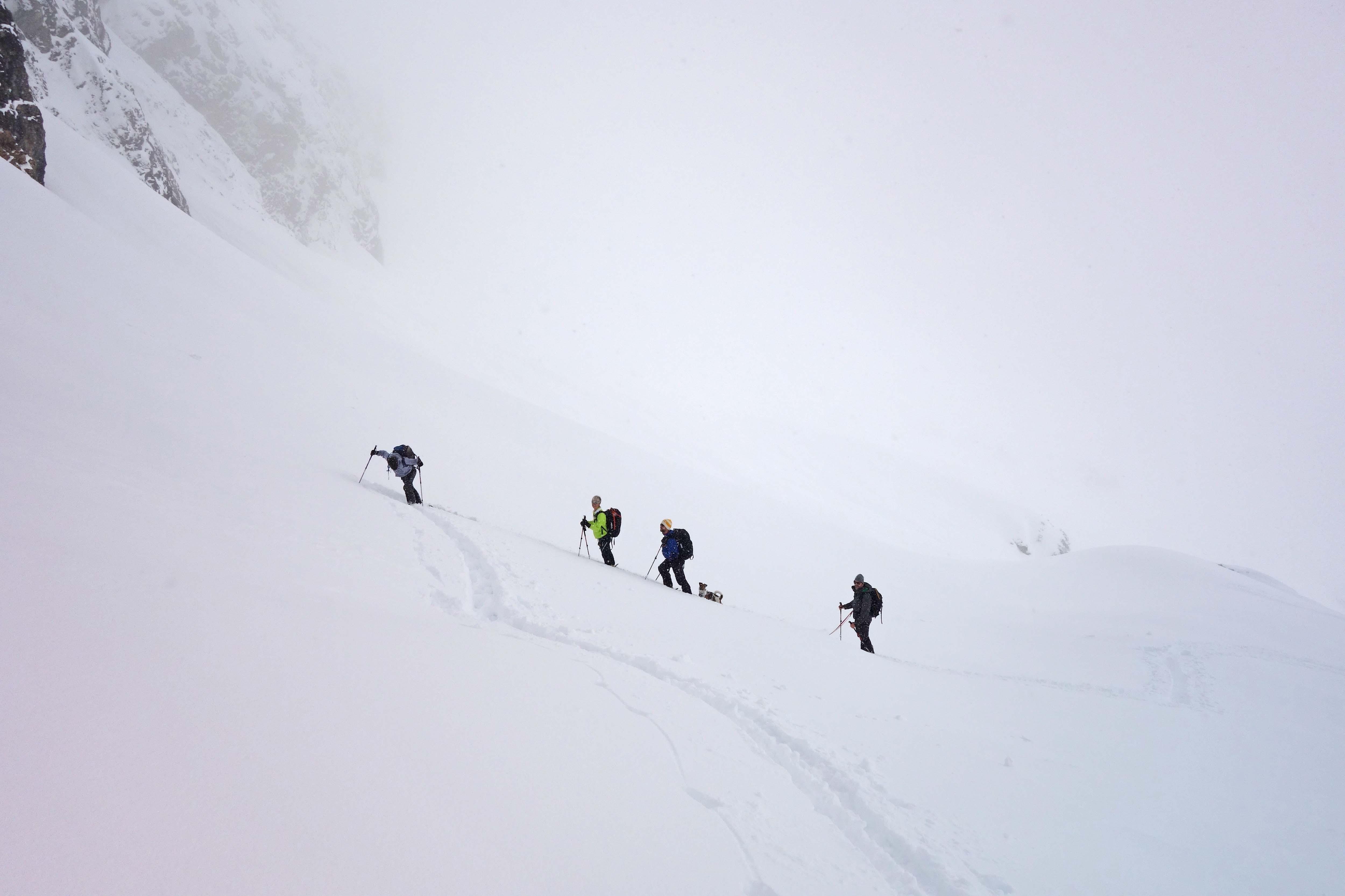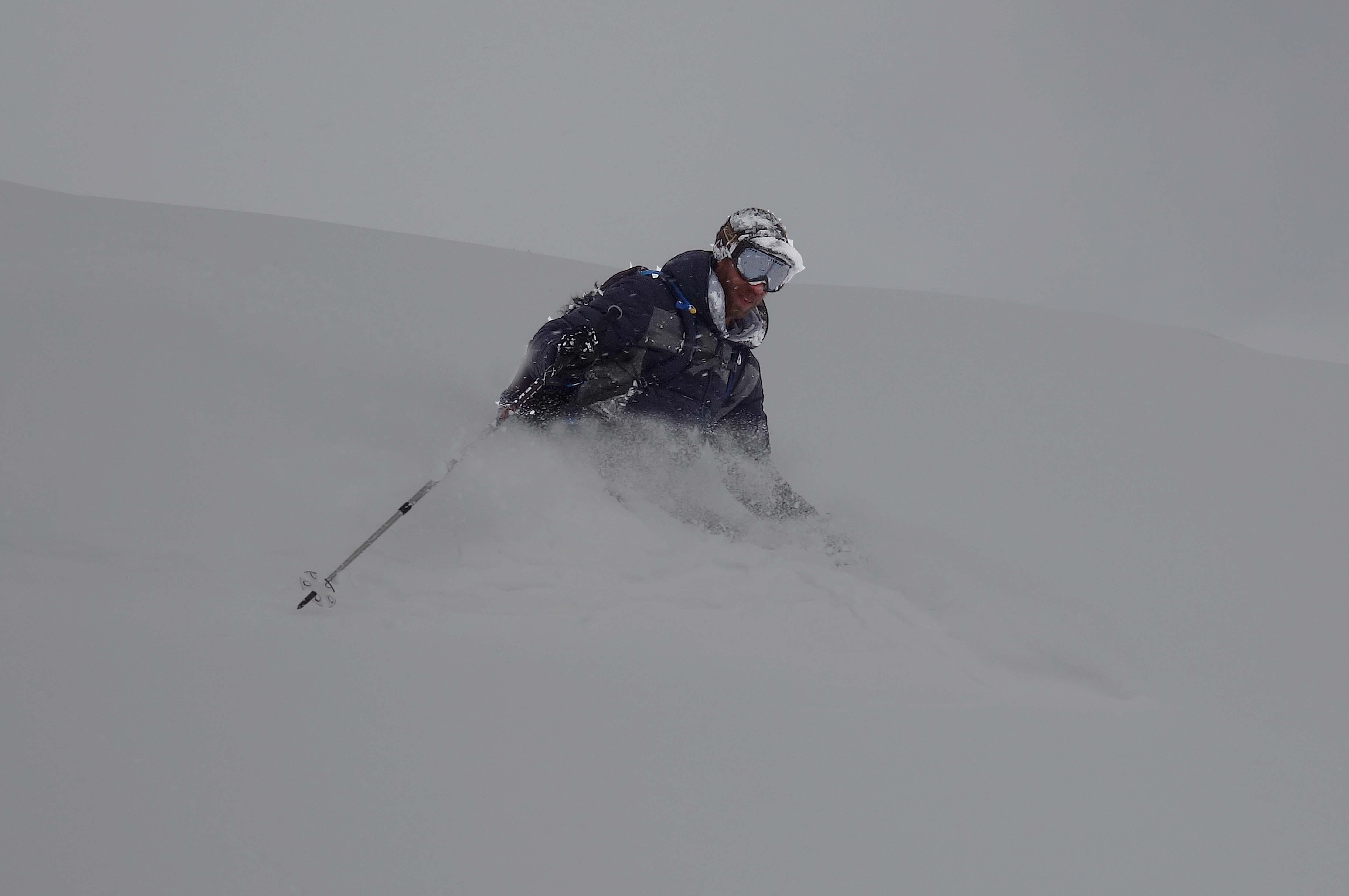 Das Birgkar im Plan, jedoch die Neuschneemenge bei Wind, Nebel , dazu der Blick in den Lawinenlagebericht haben uns zum Mitterriedl "umgeleitet". Trotz schlechter Sicht kamen wir auch hier auf unsere Rechnung, Pulverschnee jede Menge, vom Wind noch verschont, es ging abwärts wie auf Wolken; nur Fliegen ist schöner! Zeitweise Wind, leichter Schneefall, Nebel, die Sonne zeigt sich erst in Talnähe.