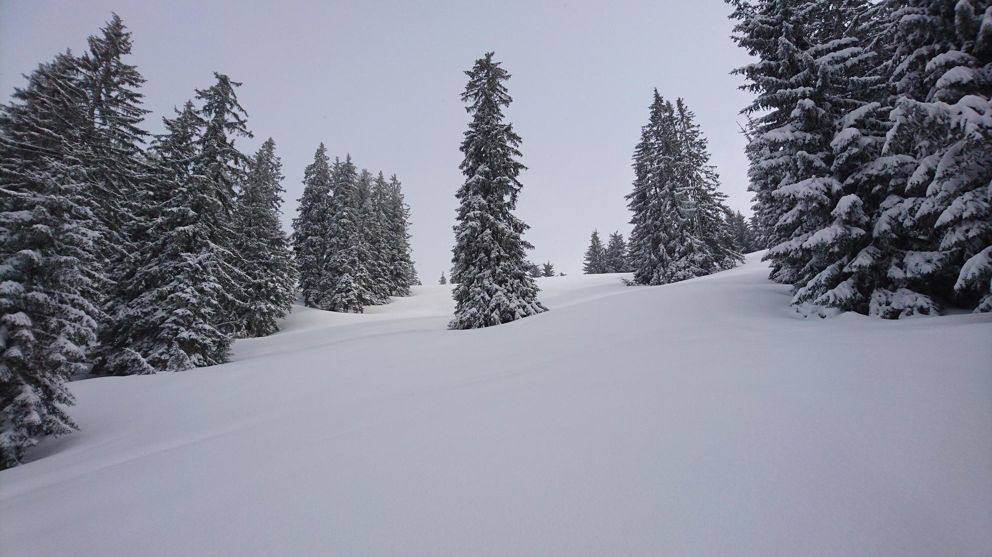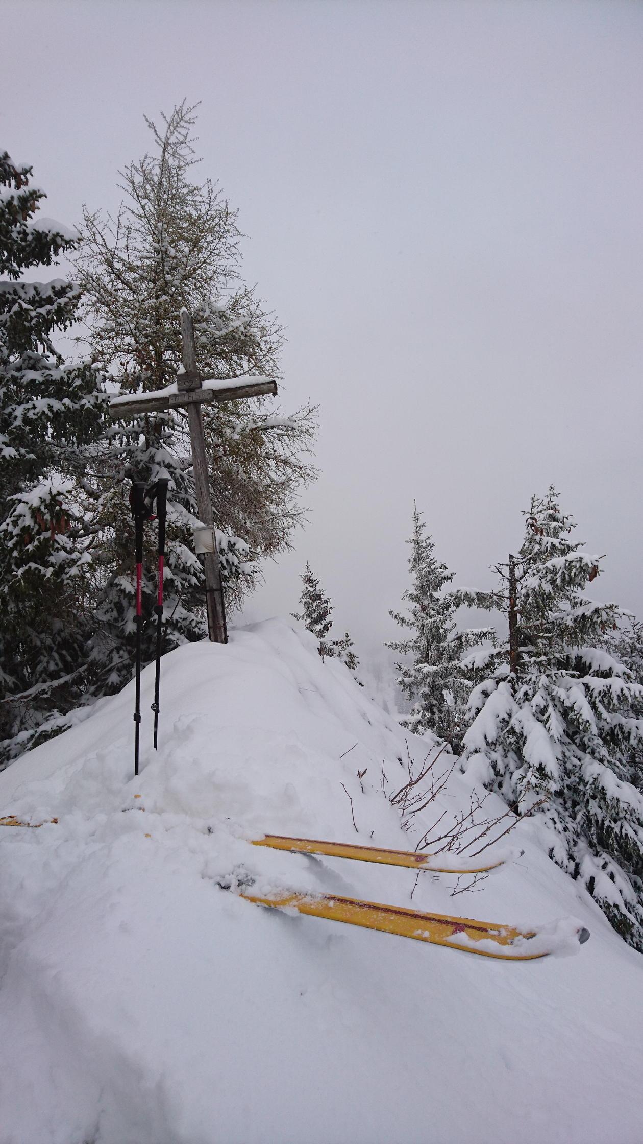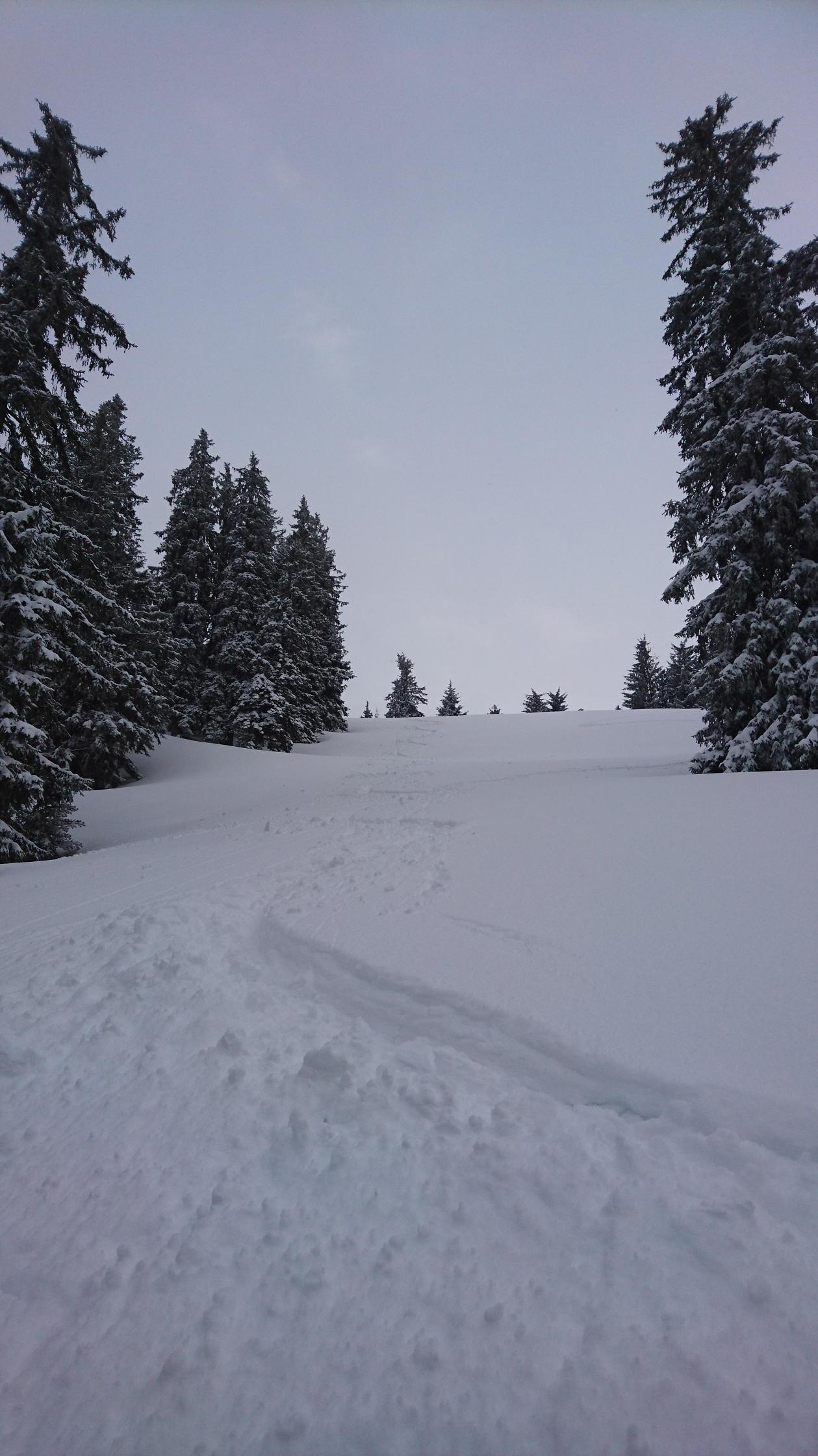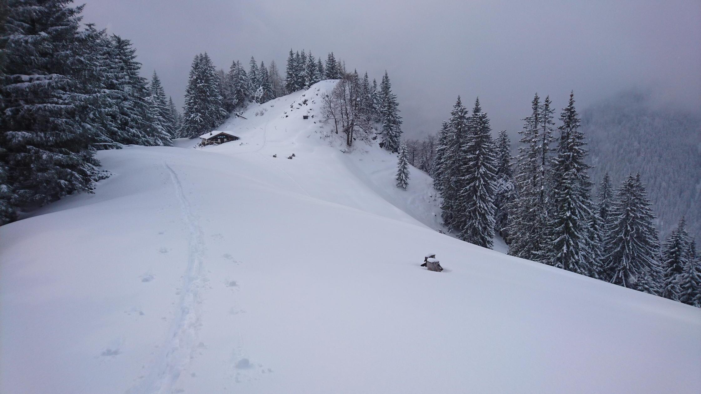 Das ist wohl eine Seltenheit, dass man unterm grünen Blätterdach nach nur 20 min. Skitragen um die Jahreszeit noch zum Kl. Recheberg gehen kann.