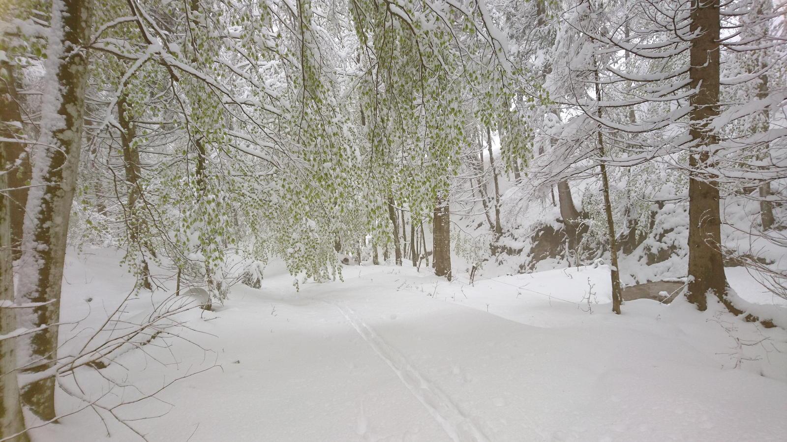 Schon ab den verfallenen Bienenhäusl war Spuren angesagt und oben in der Waldschneise vom Jochberg zum Kl. Recheberg war es dann wie im tiefsten Winter.