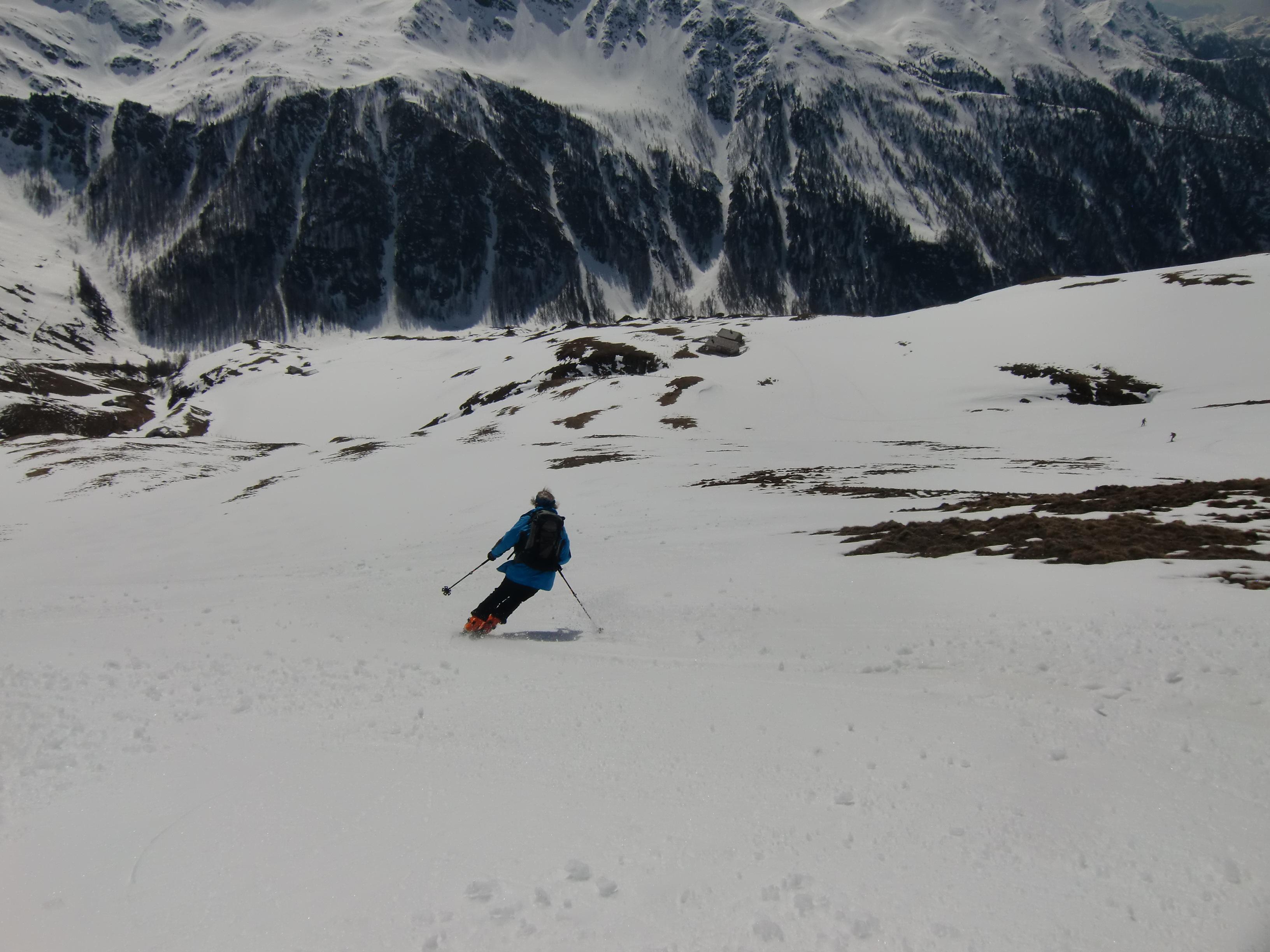 Schnee: Durchgehend vom Auto weg. Wenn man spätestens 11:00h abfährt, perfekter Firn von oben bis unten. Makellos!