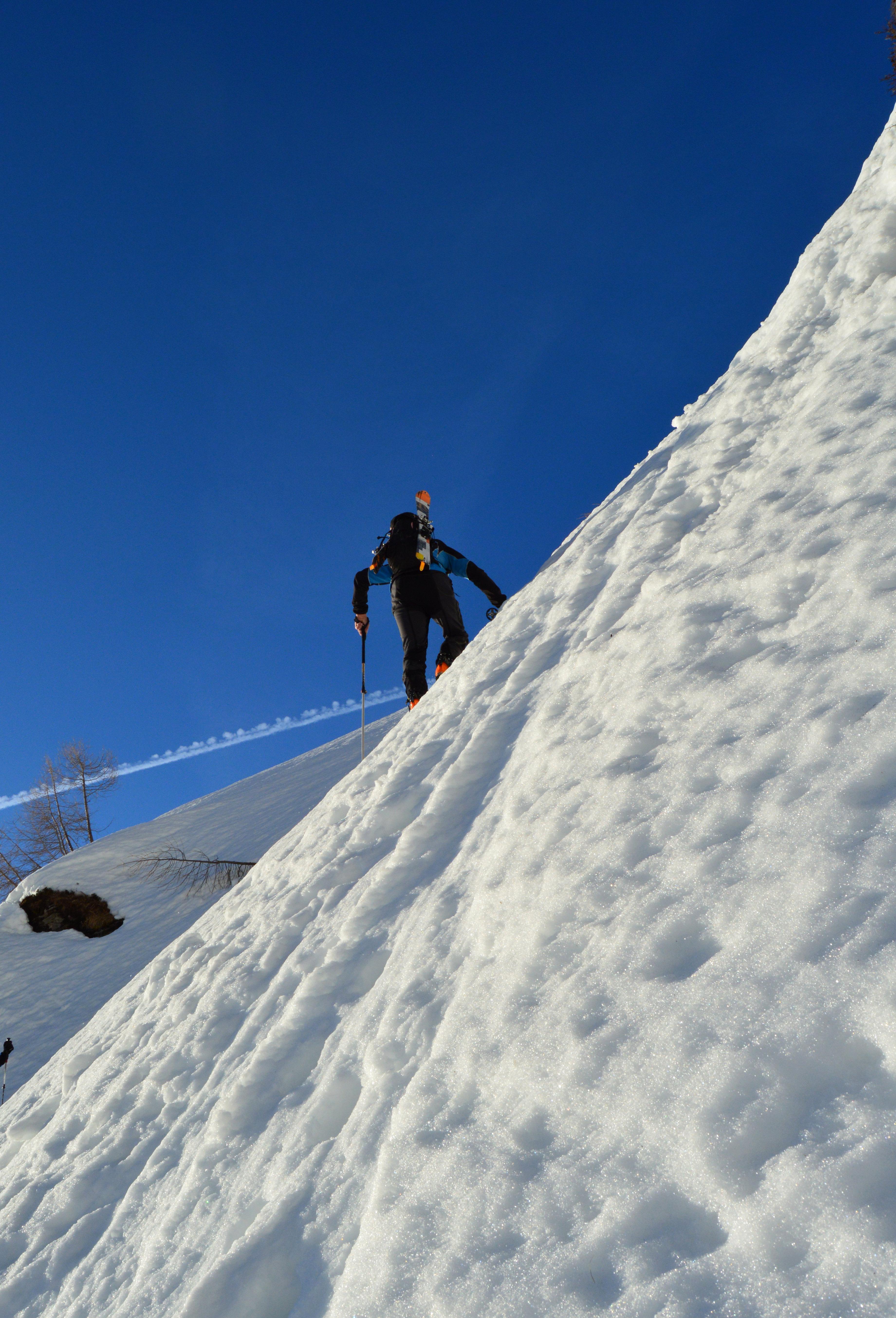 Der Steig durch den steilen Wald ist bereits ziemlich ausgeapert, was aber bei der Tour eigentlich normal ist.
