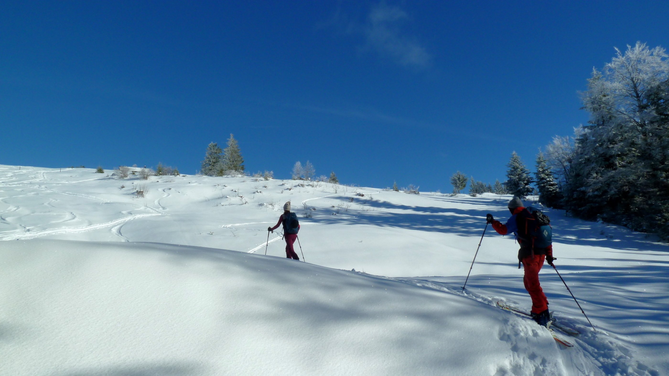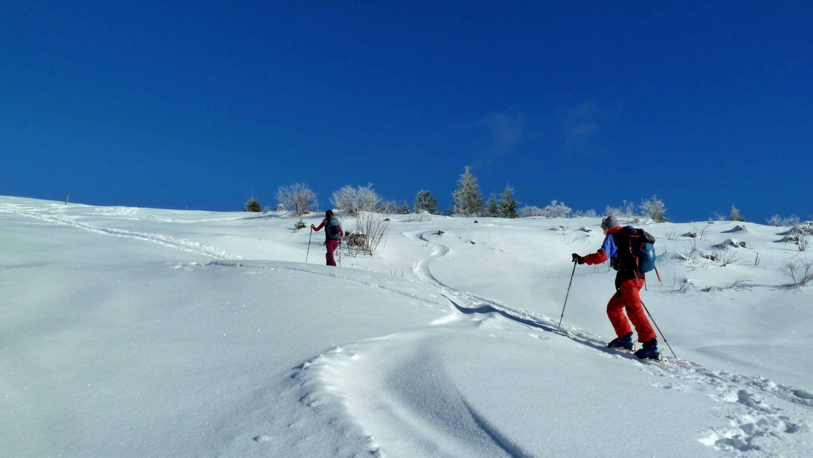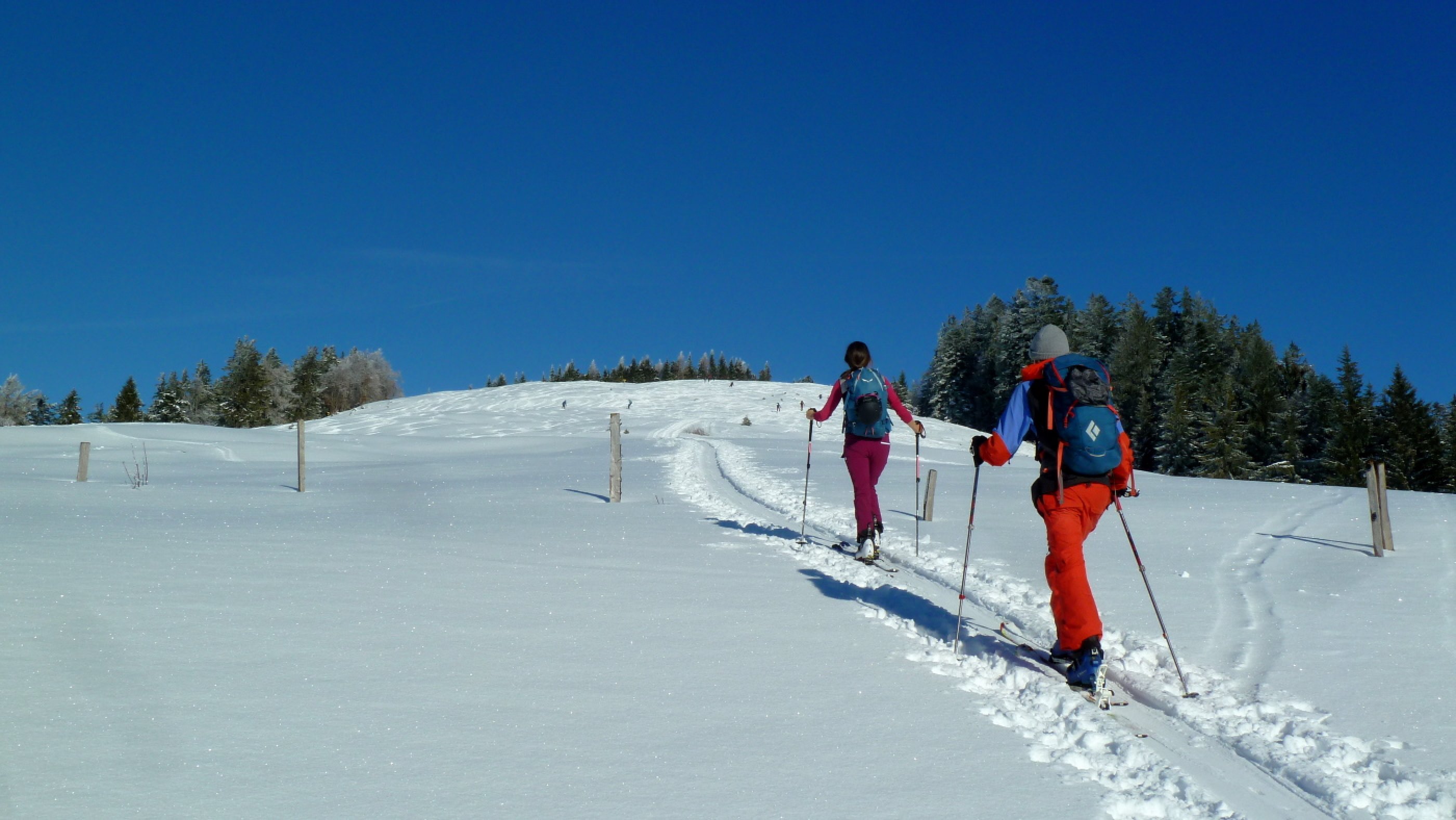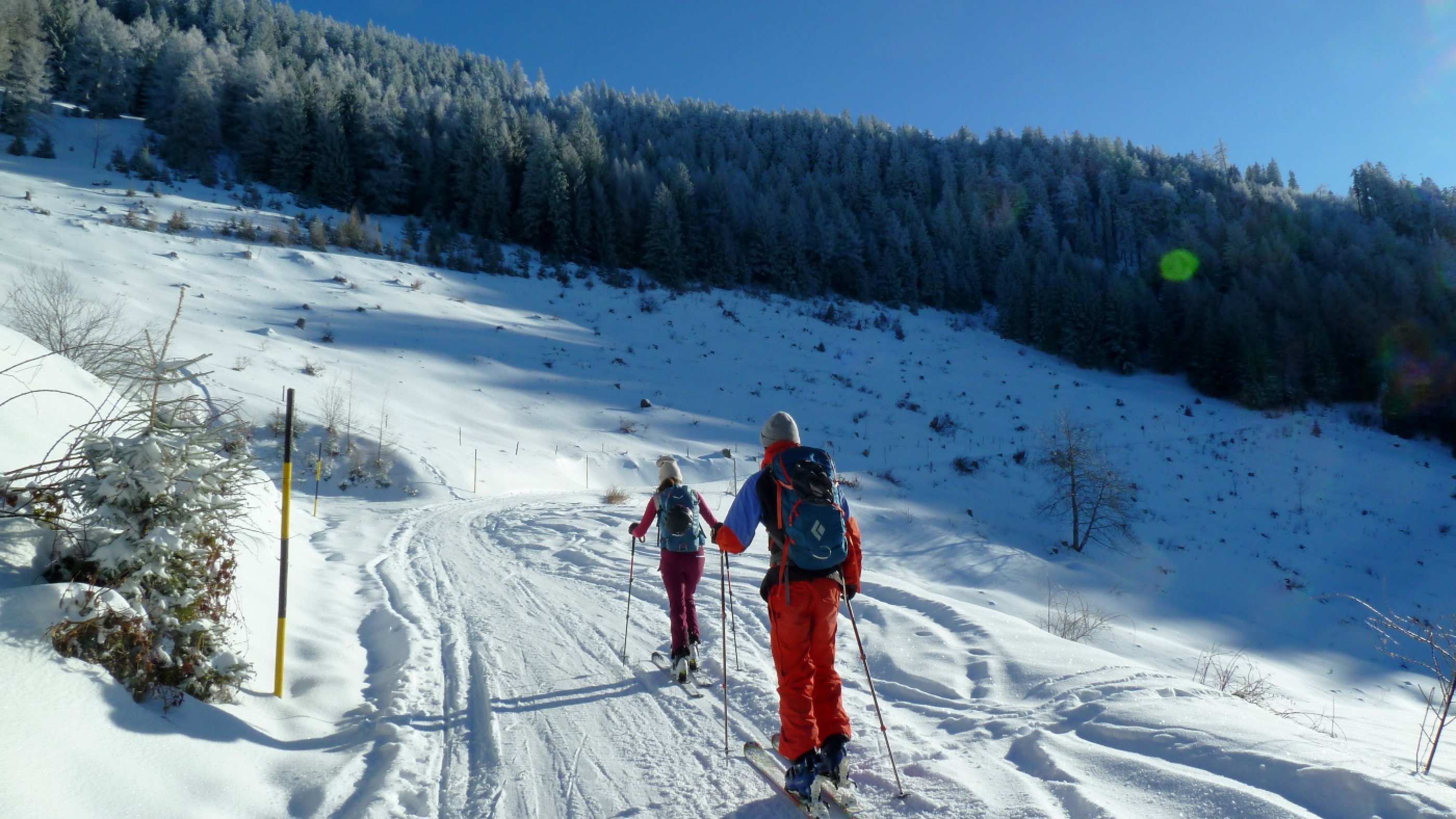 Der Neuschnee von gestern (viel wars ja nicht - etwa 5 bis 10 cm) hat gut getan und einen schönen Überzug auf die Altschneedecke gelegt. Herrliche Bedingungen auch für die Abfahrt, auch auf der Mautstraße. Es dürfte aber gerne rasch noch einmal ein kräftiger Schwung kommen von dem weißen Zeug.