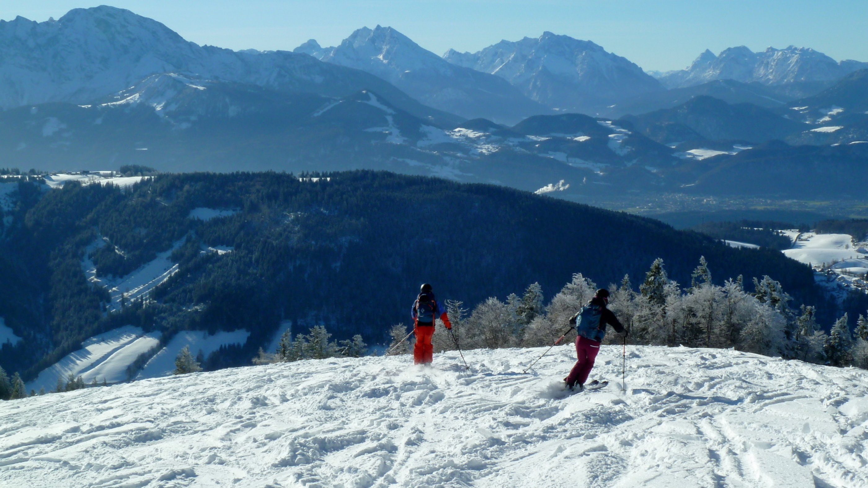Start an der Spielbergmaut bei minus vier Grad, der kleine Parkplatz ist um elf Uhr bereits voll, später stehen dann auch noch mehrere Autos am Straßenrand. Aufstieg bei perfekten Weihnachtsbedingungen, im freien Gelände wird es dann rasch sehr warm und wir lassen uns am Gipfel lange die Sonne ins Gesicht scheinen. Viele Tourengeher sind heute nicht unterwegs, auch das Wieserhörndl schaut nicht überlaufen aus.