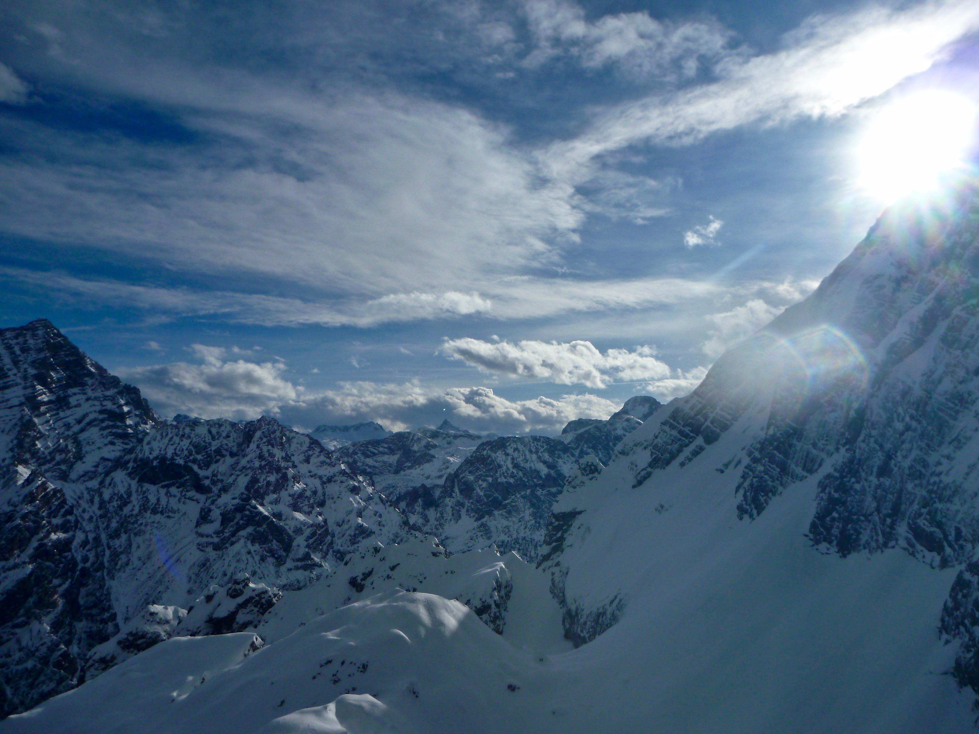 Wetter: nur im Kammbereich Wind, größtenteils sehr wolkig mit sonnigen Auflockerungen, Lichtverhältnisse um diese Jahreszeit im Blaueis allgemein schlecht und diffus