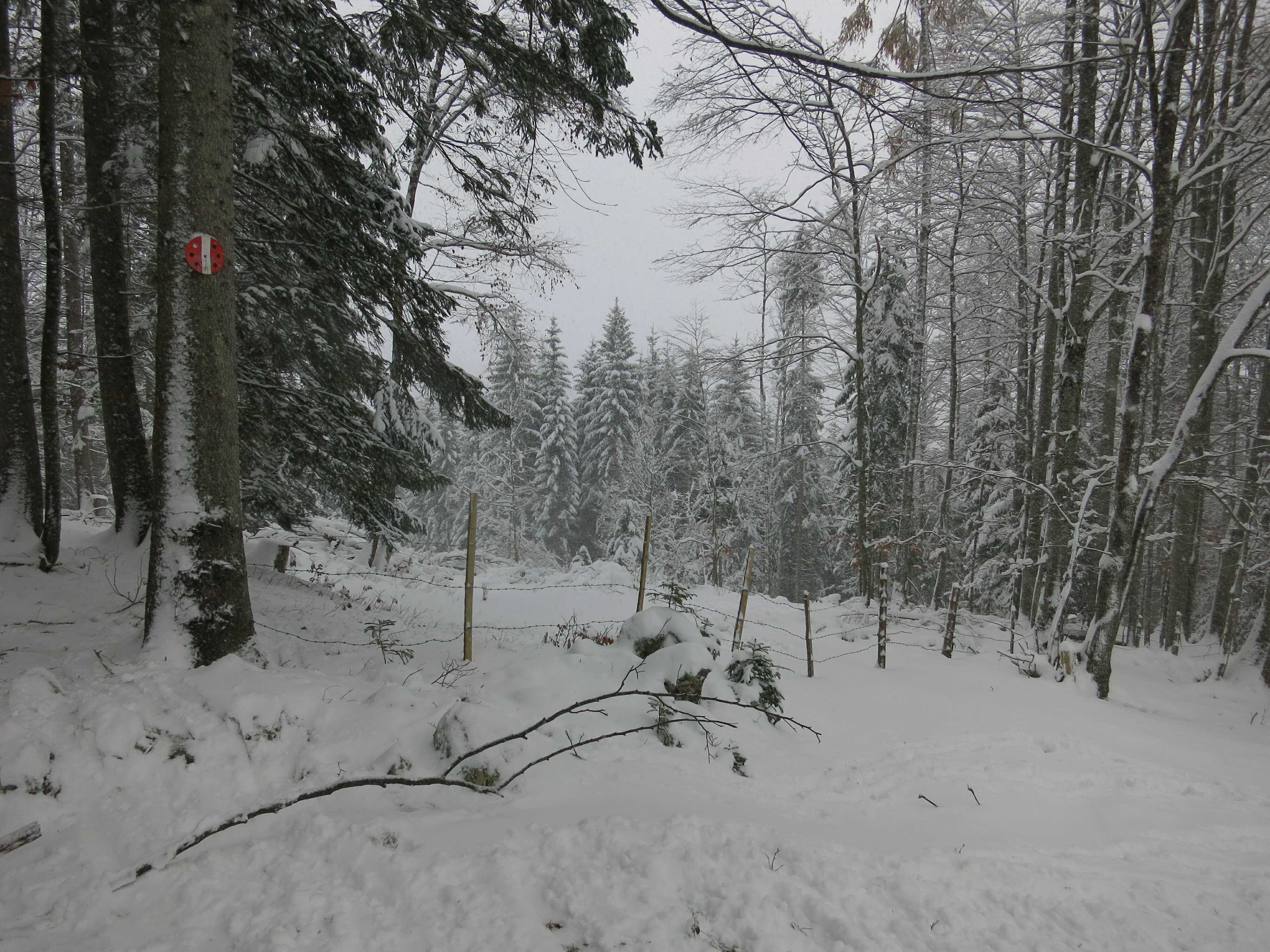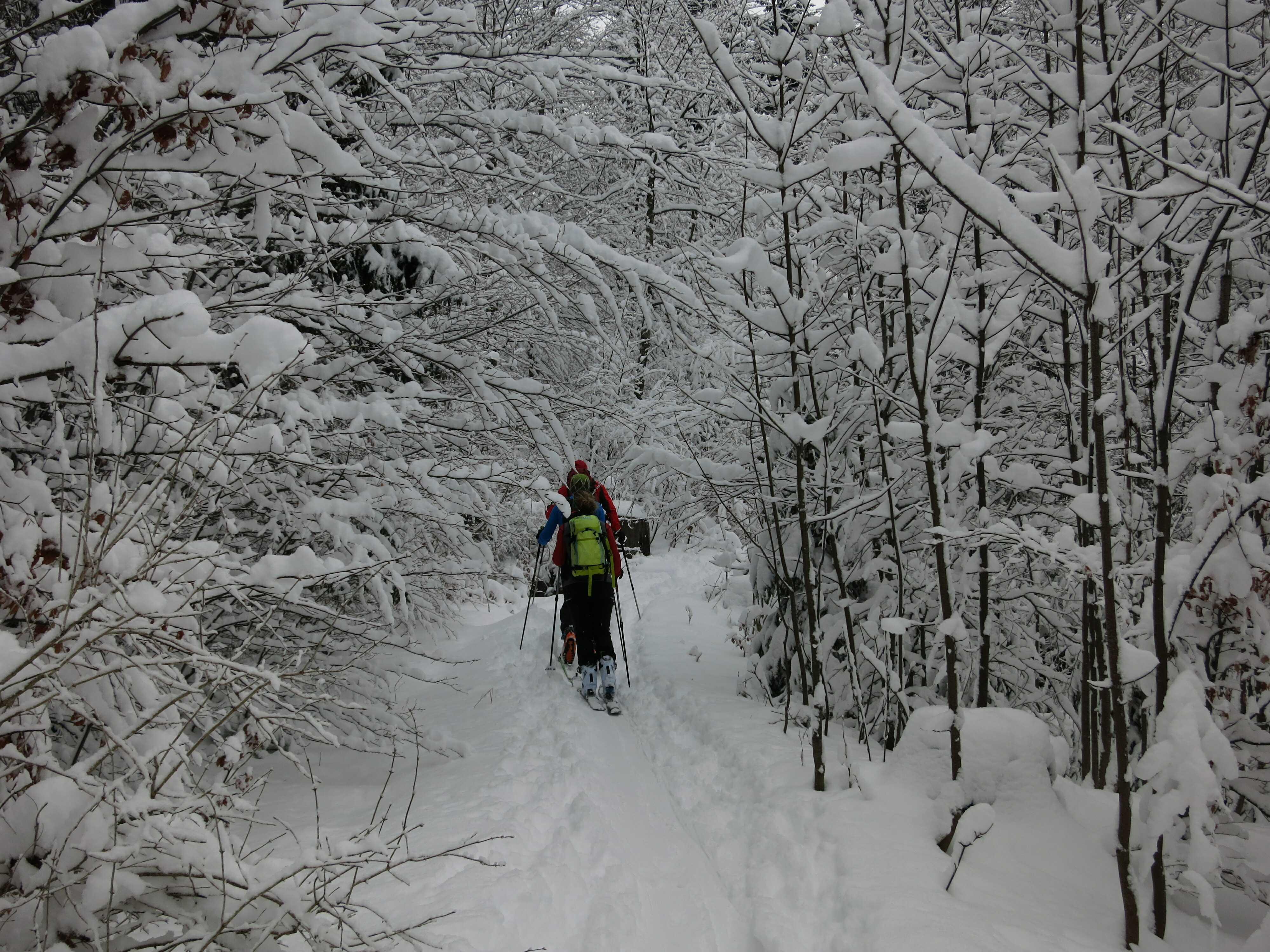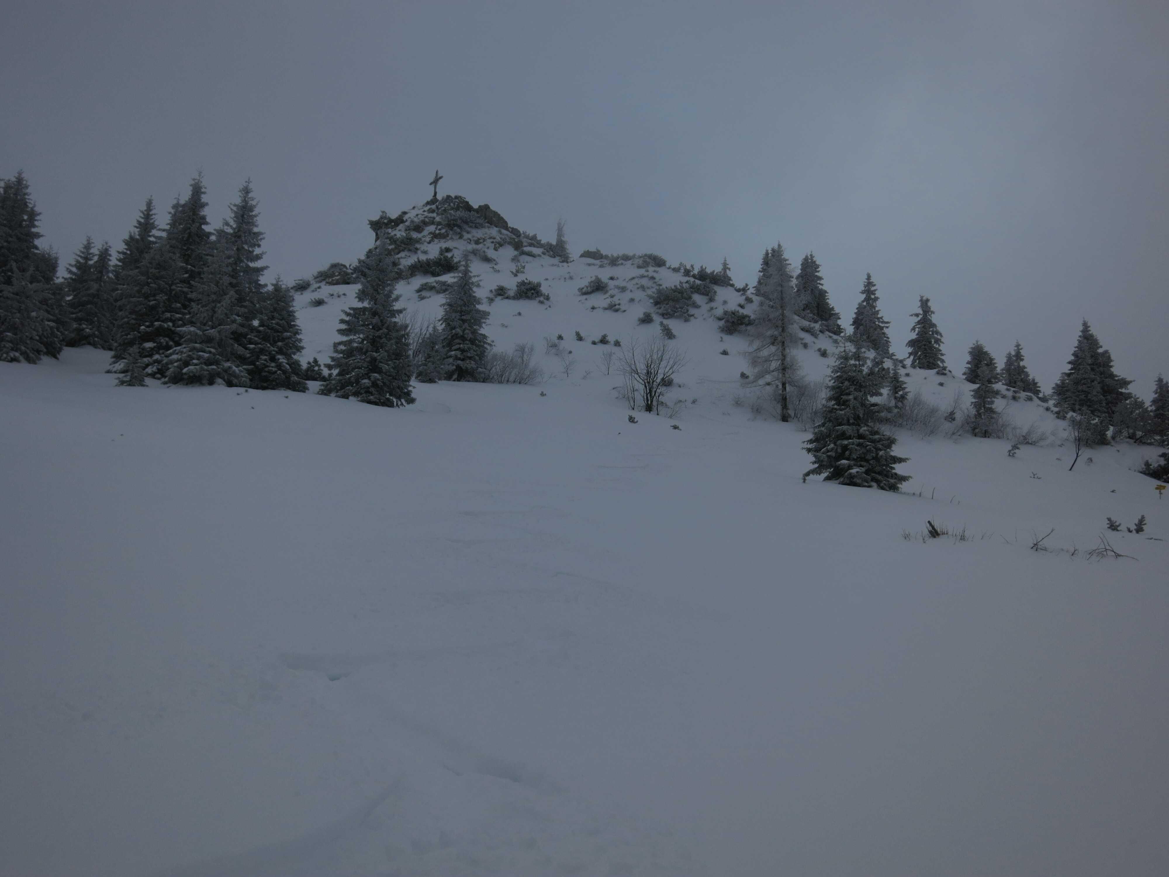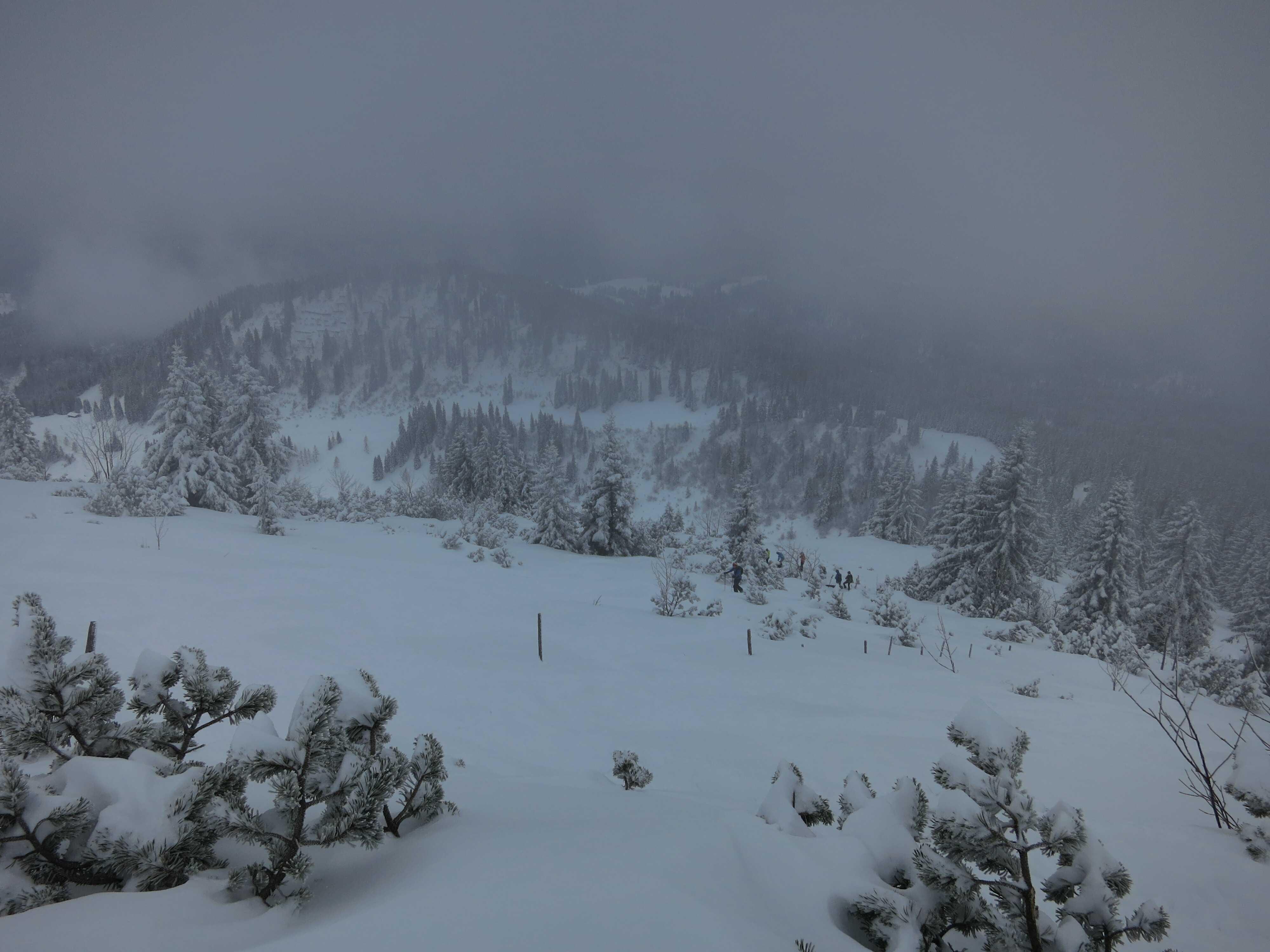 Wetter: Meist stark bewölkt mit zeitweisem Schneefall, Sicht ausreichend, zwischendurch auch immer wieder Aufhellungen. Oben ziemlich kalt aber nur wenig Wind.