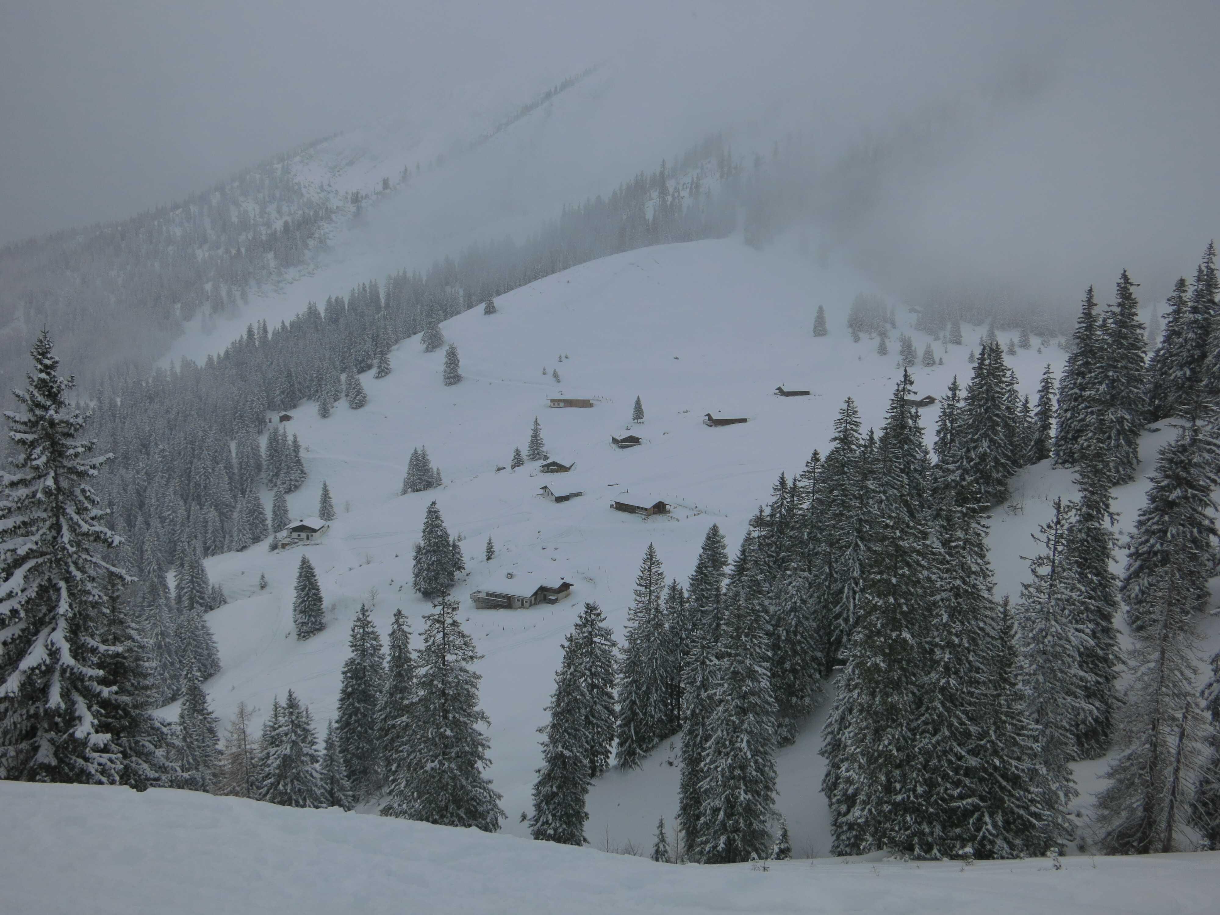 Vormittag vom Heutal-Lift-PP (960) zum Dürrnbachhorn (ca. 1750), nachmittag vom Heutalbauern (1000) zum Peitingköpfl (1720).
