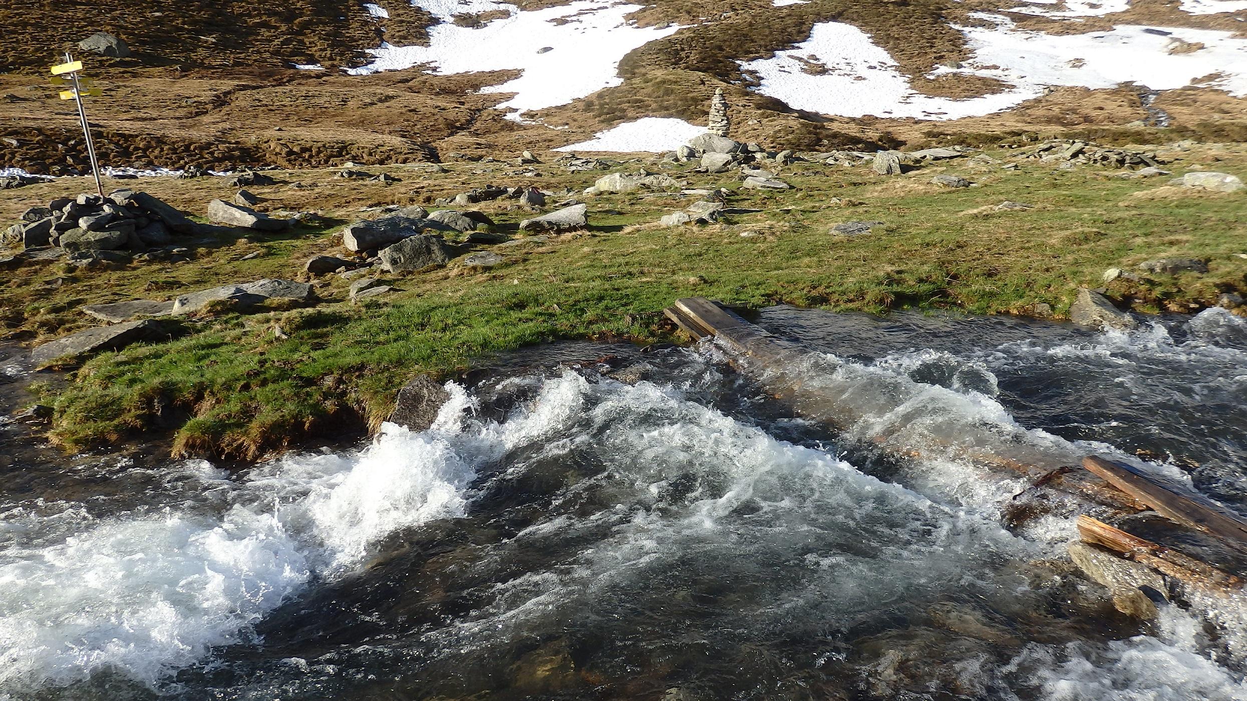 Und es ist super aufgegangen. Start per pedes am Hopfeldboden. Schi tragen bis auf 2250m über dem Seebachsee. "Technische" Schwierigkeiten gab es nur beim Queren des Seebaches, der schon um 06:45Uhr sehr viel Wasser führte.