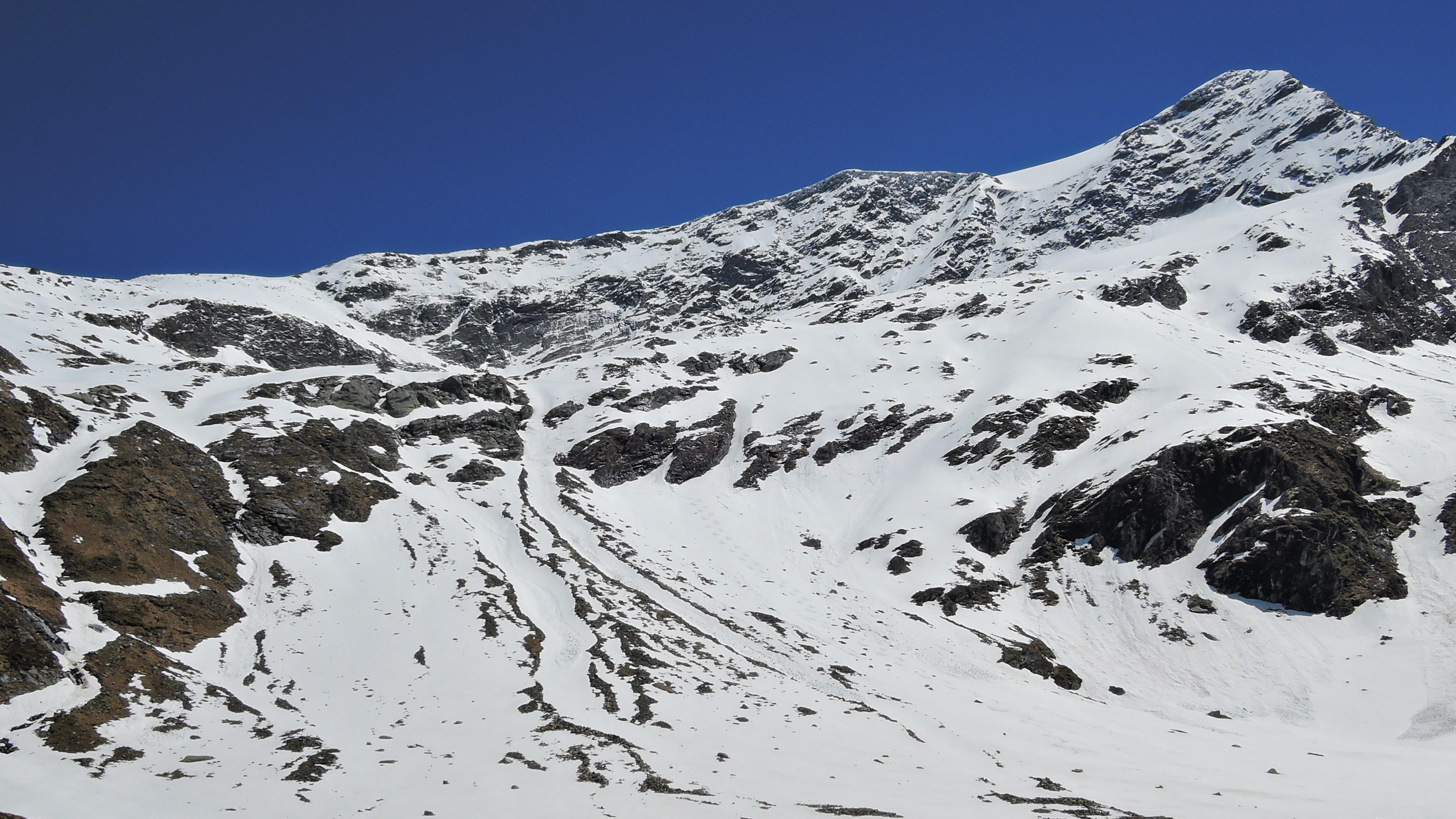 Noch perfekte Verhältnisse am Hocheiser. Die Werkstrasse ist durchwegs schneefrei. Auf der Höhe des Schwarzkarlsees angekommen kann man direkt auf die Ski wechseln. Die Steilstufe im Normalanstieg ist bereits ausgeapert (bin ich im Aufstieg gegangen), diese Stelle kann man aber durch eine direkte Abfahrtslinie umfahren (siehe Fotos). Die Westseite bietet sogar bis 11:00, 11:30 perfekte Verhältnisse in der Abfahrt.
