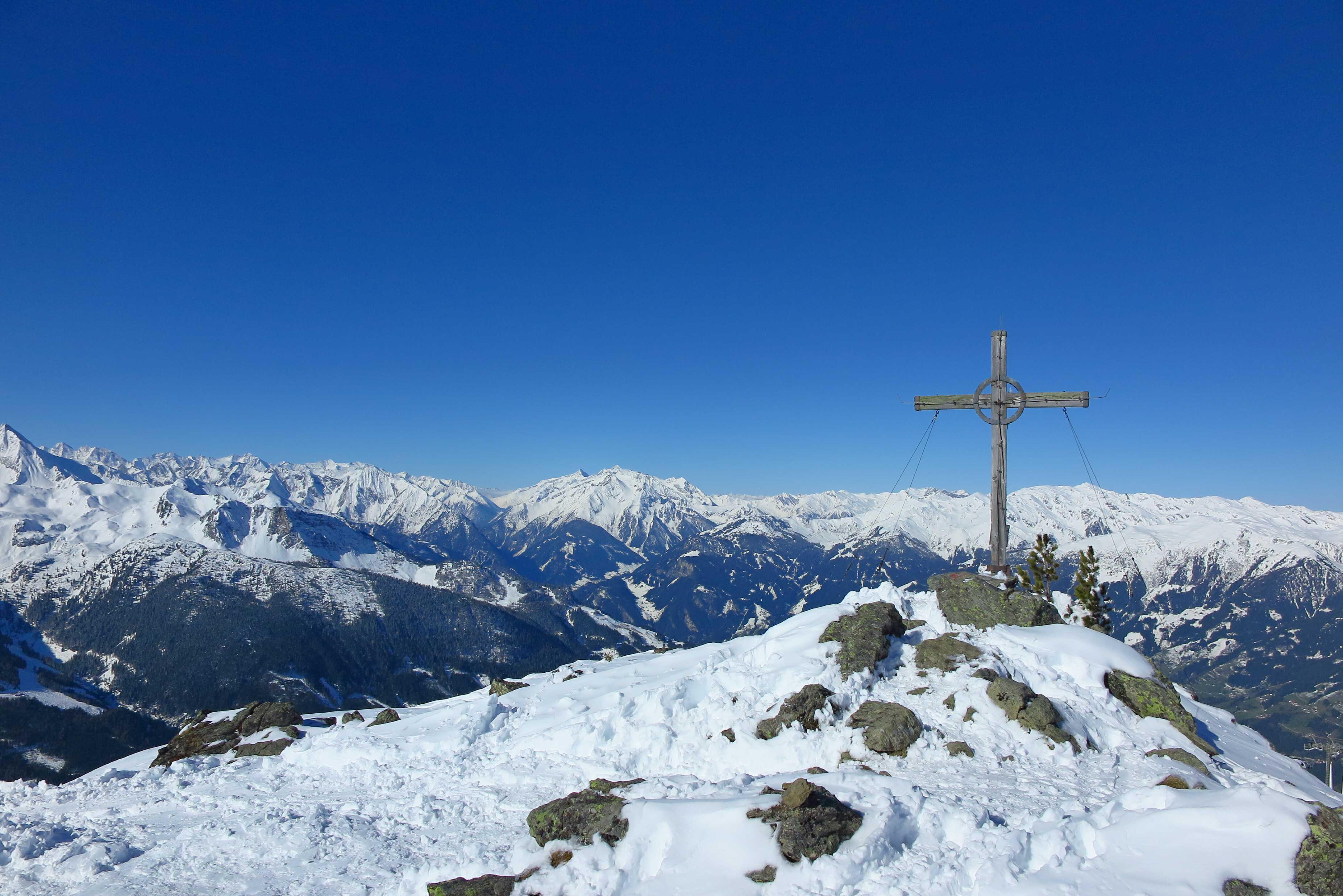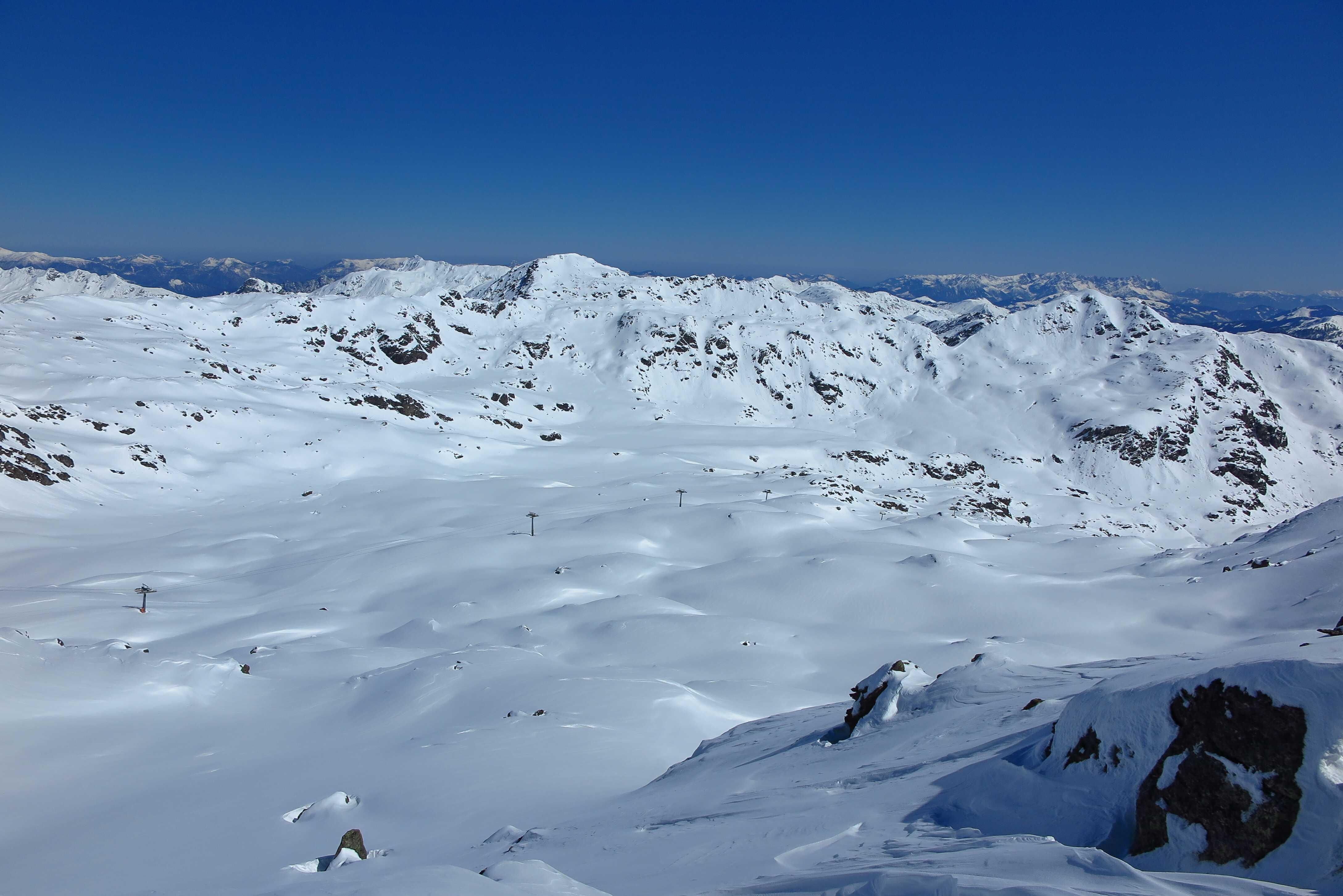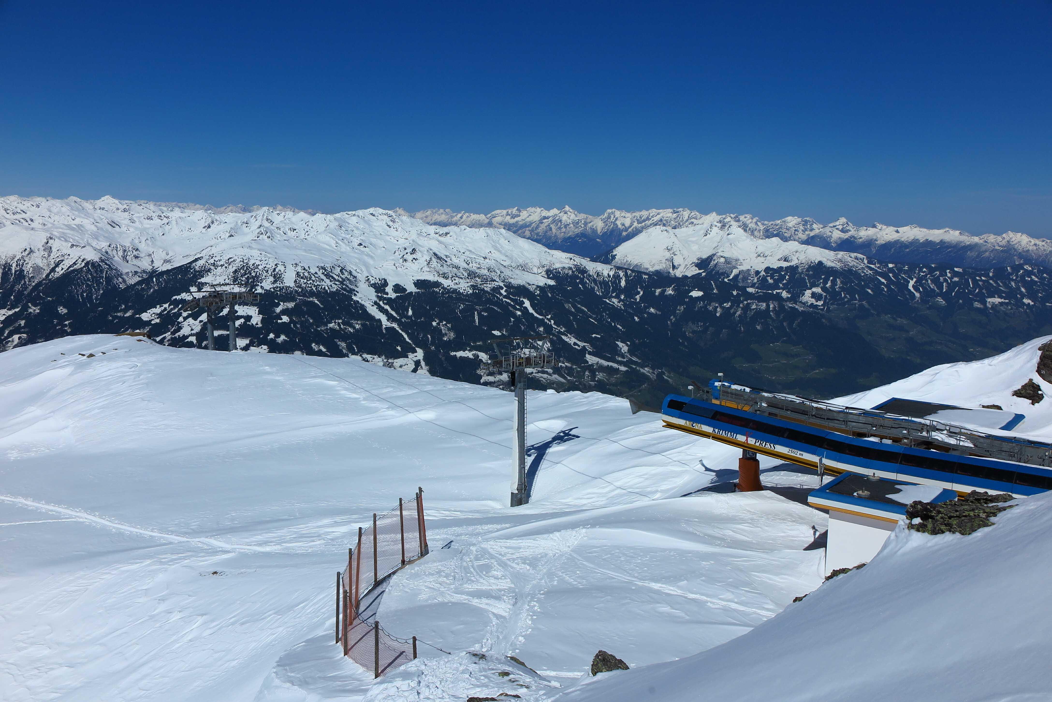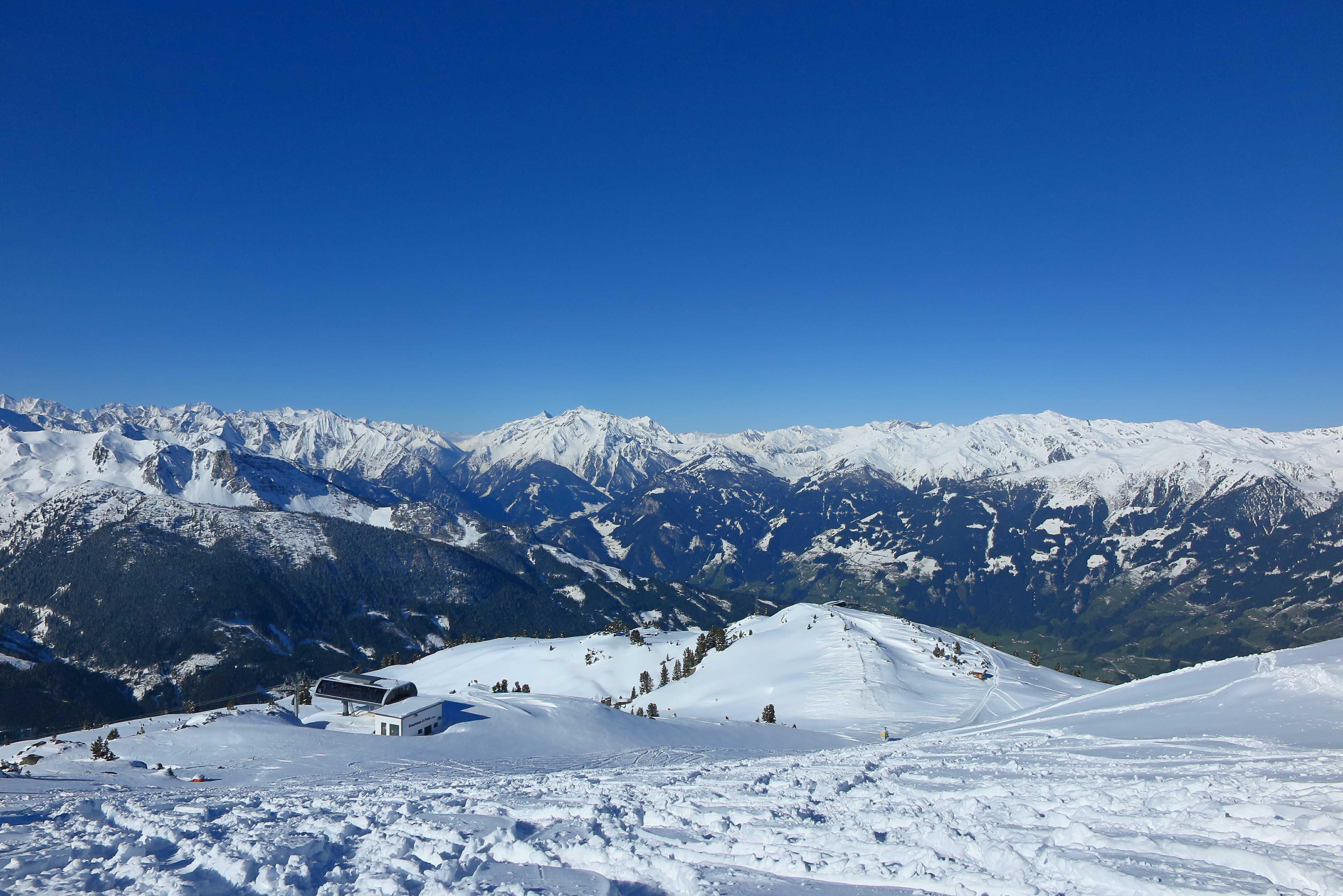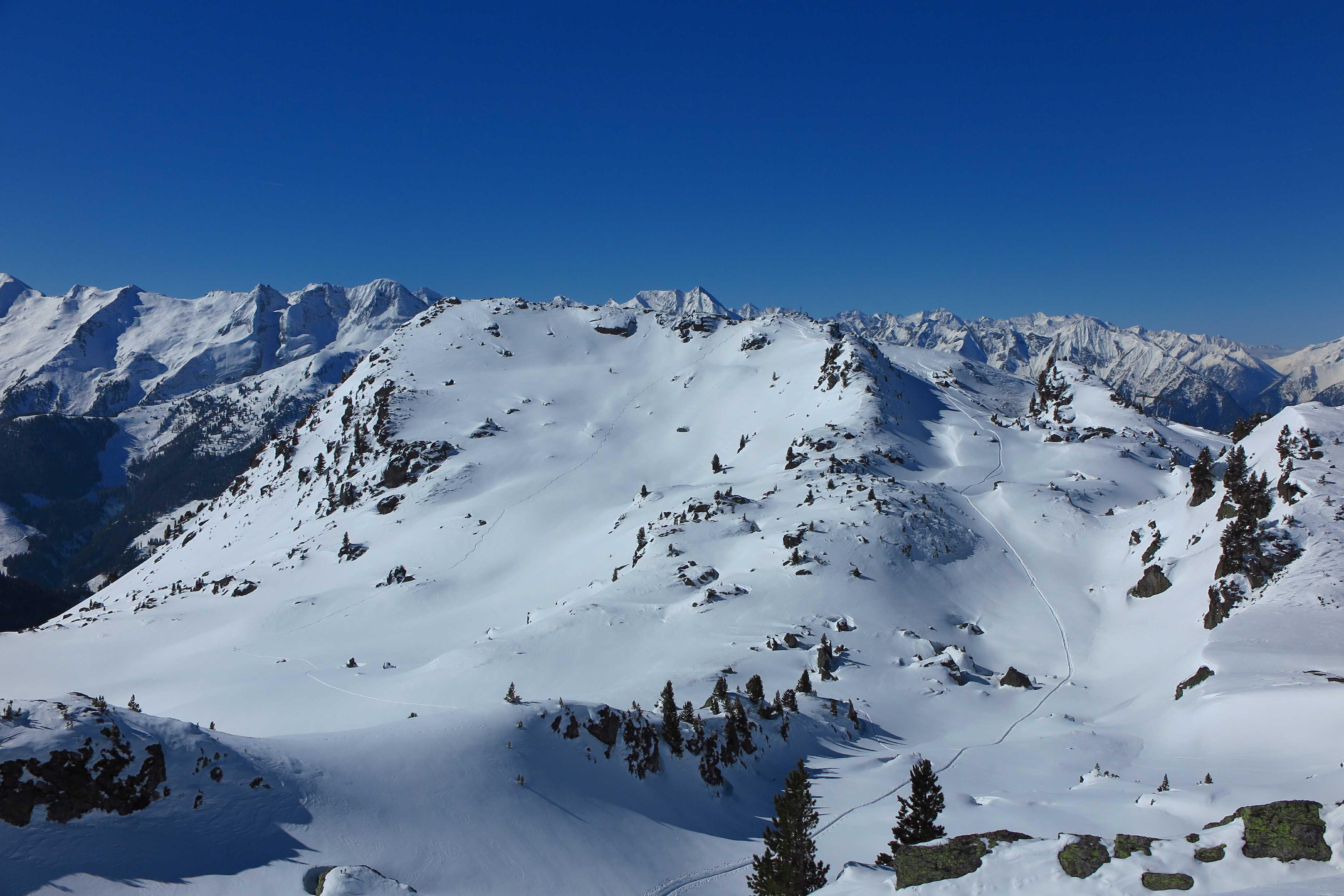 Von der Wiesenalm (=Mittelstation der Rosenalmbahn, ca. 1300) oberhalb Zell am Ziller über die Piste auf die Karspitze (2257) und weiter übers Übergangsjoch aufs Kreuzjoch (2558).