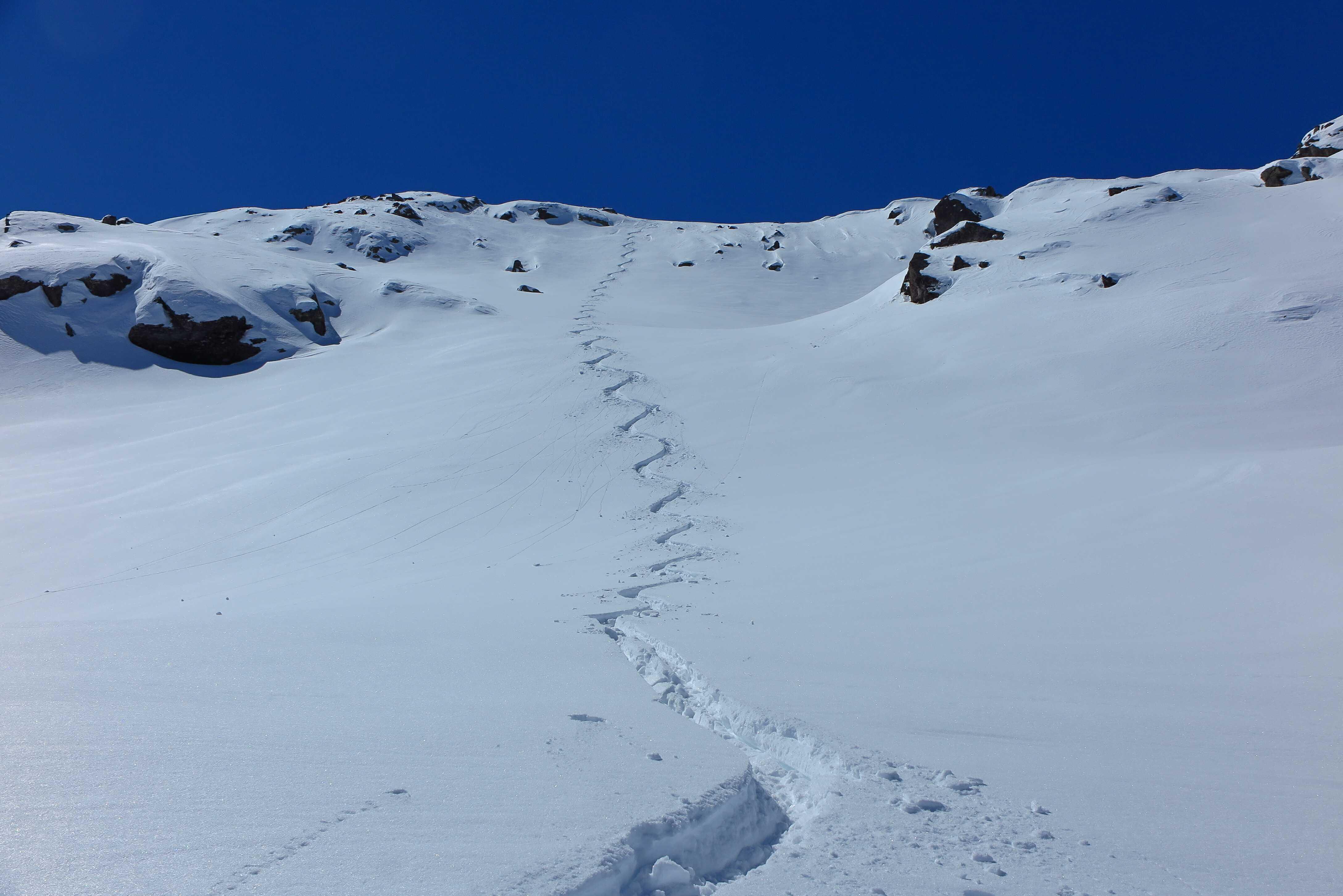 Lawinenbeobachtungen: Im Kreuzjochgebiet keine. In der Reichenspitzgruppe und den Zillertaler Alpen waren einige Schneebrettabgänge (auch größeren Ausmaßes) erkennbar (vermutlich von gestern).