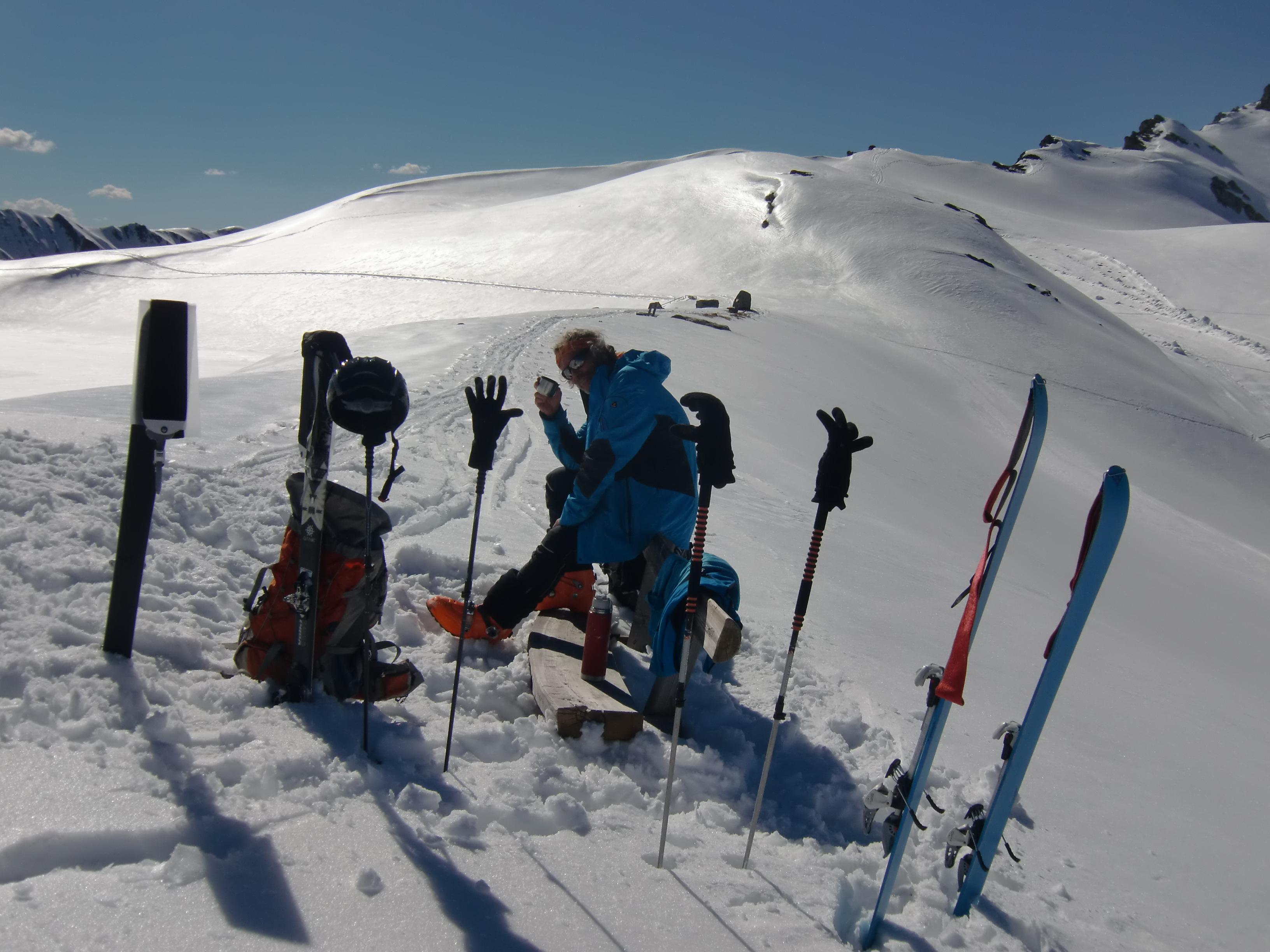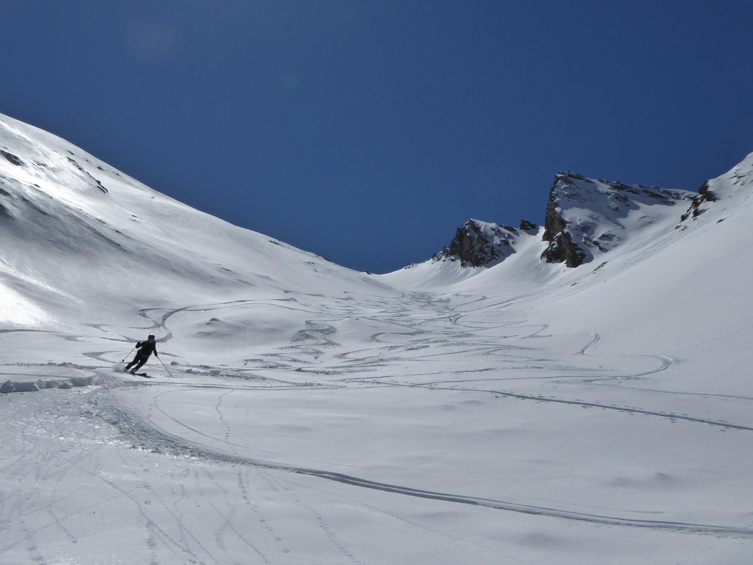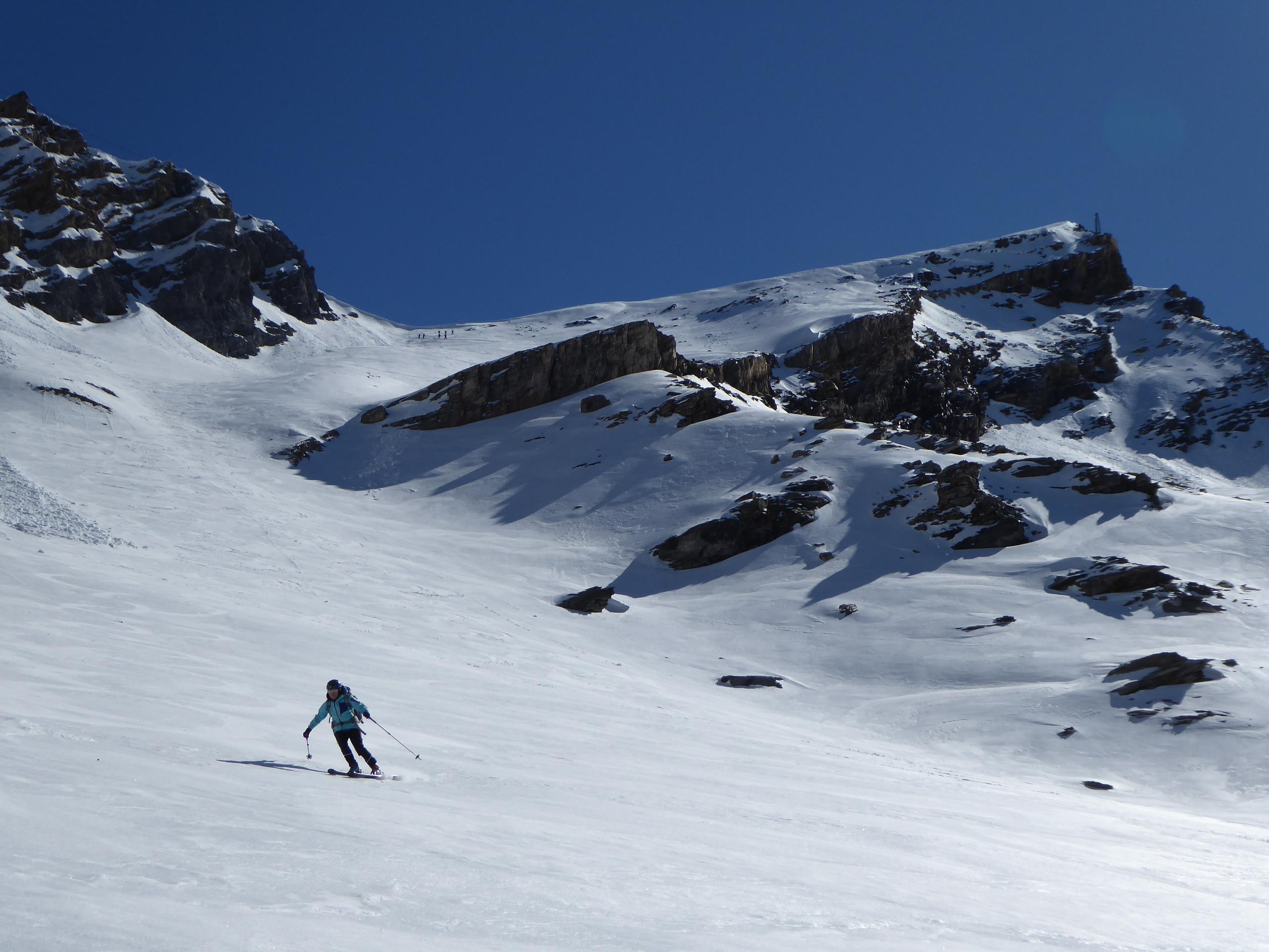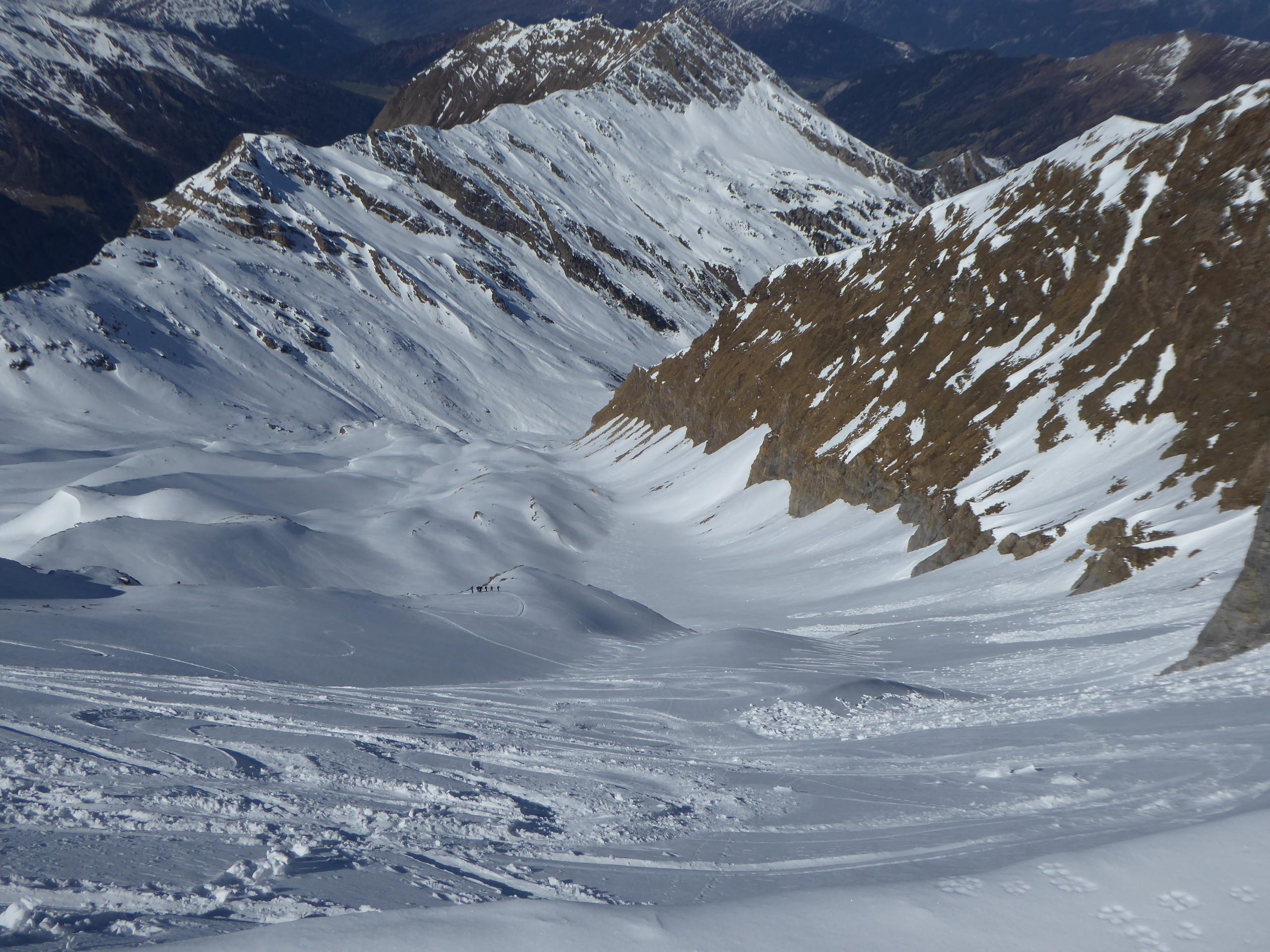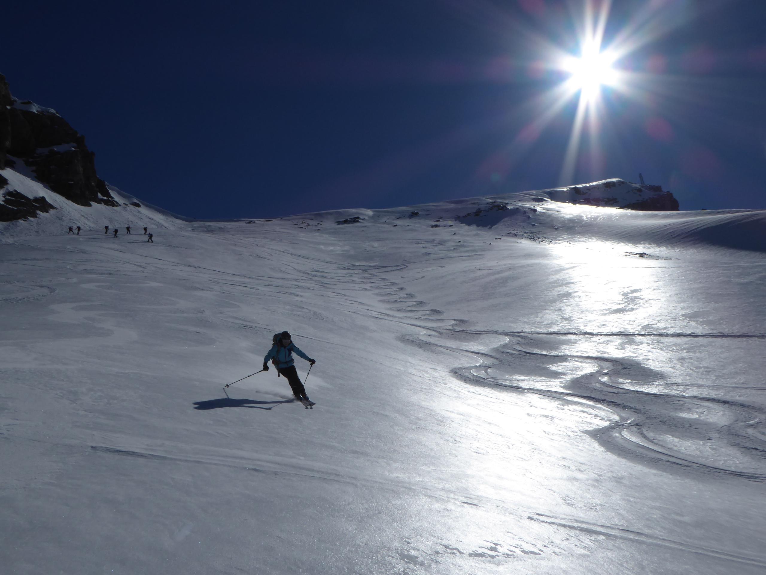 Schnee: Anfangs hart, aber griffig (auf Firn zu warten hätte bis mindestens 13:00h gedauert, dann wären die Aufstiege aber schon baazig und evtl. auch gefährlich gewesen), der Rest der Runde in fantastischem Firn.