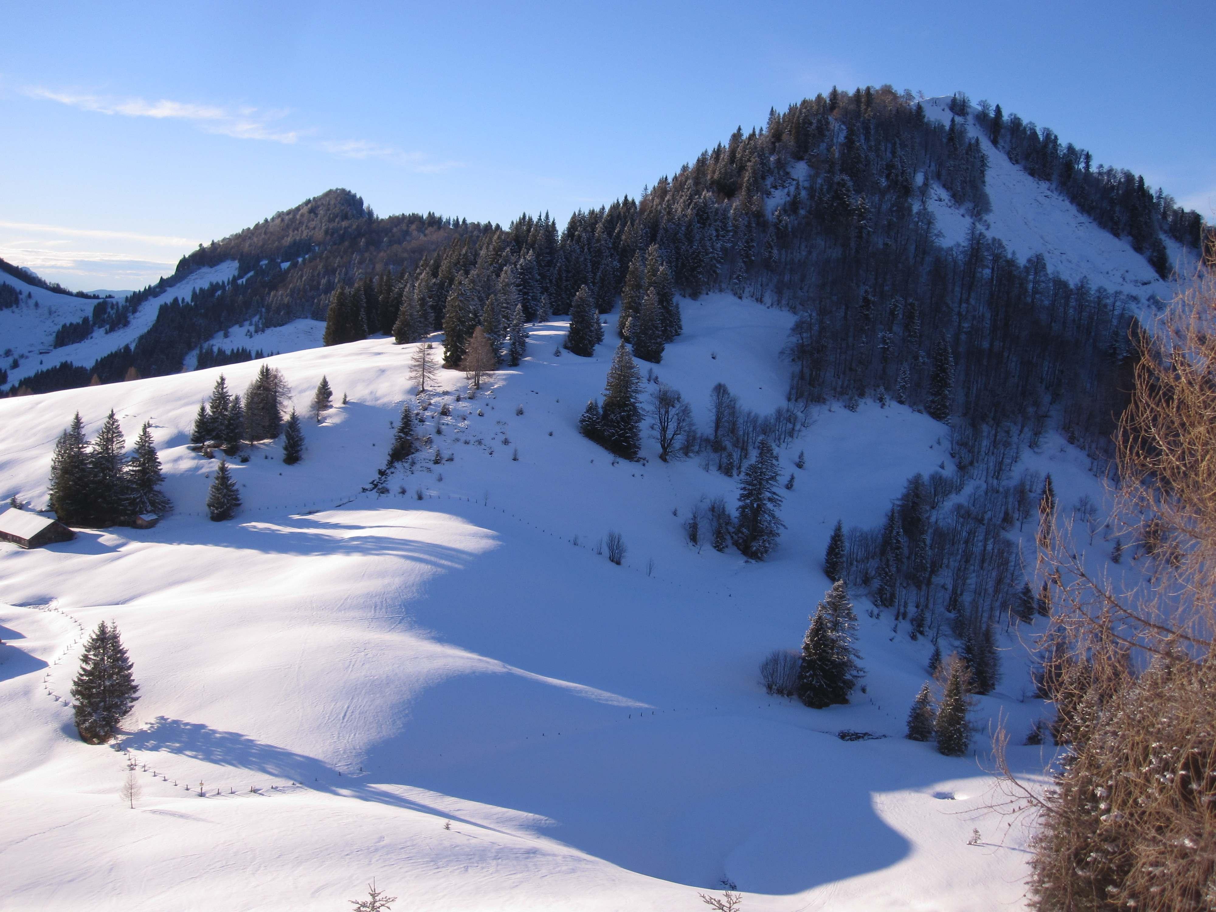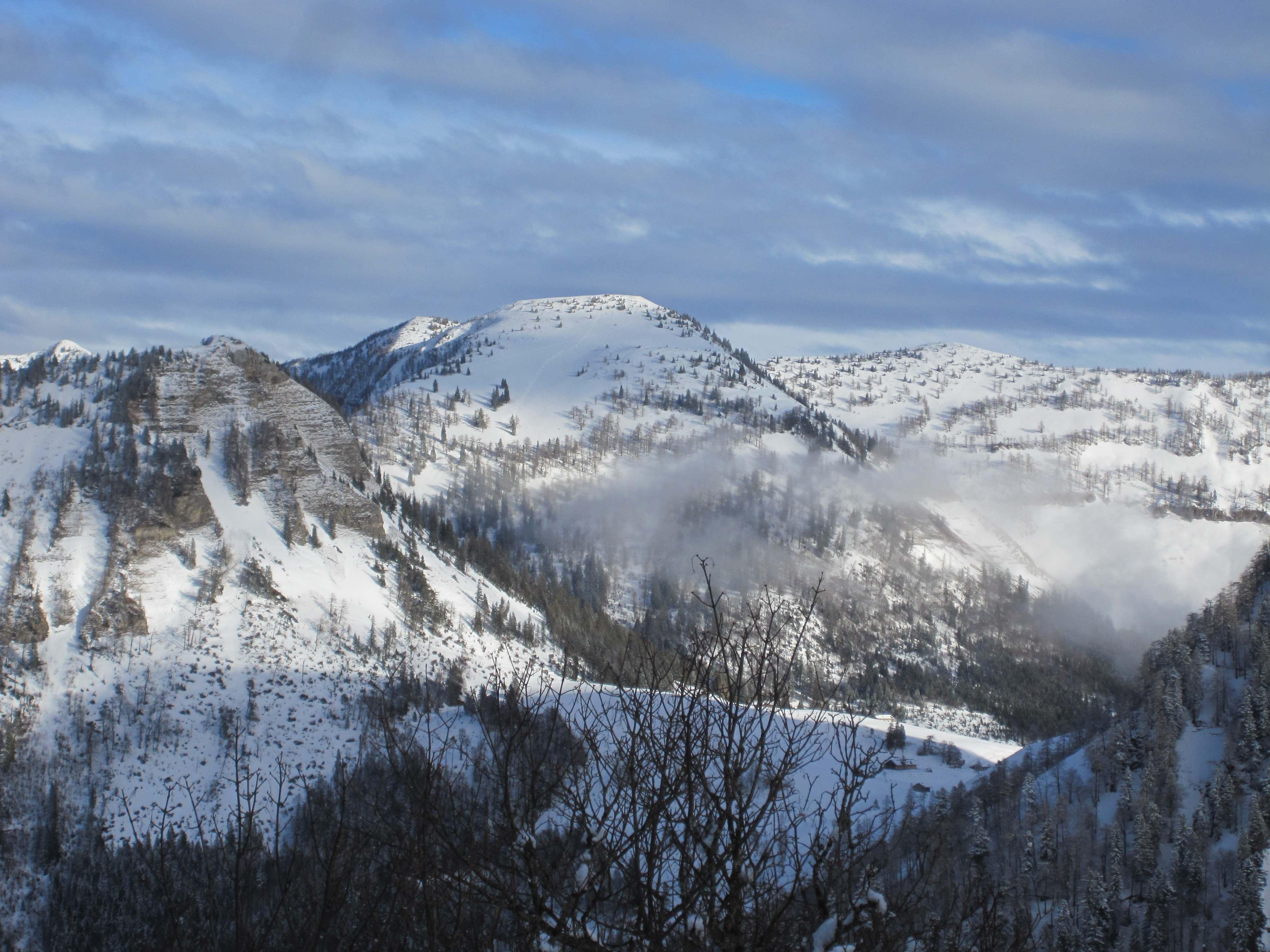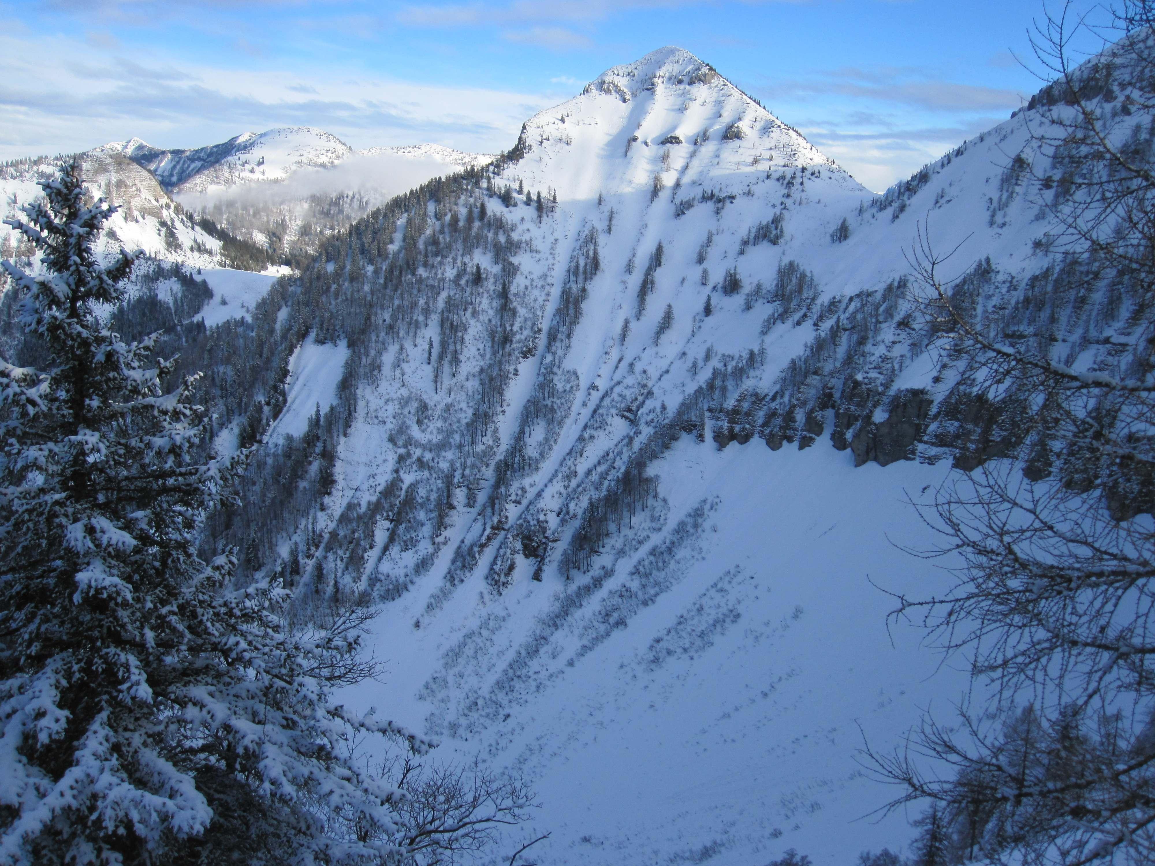 Beim Aufstieg zur Feichtensteinalm den Schlag gewählt, da die Forststraße dort oben schon ziemlich ausapert. Unten leicht angezuckert bis oben auf 10 -15 cm Pulver