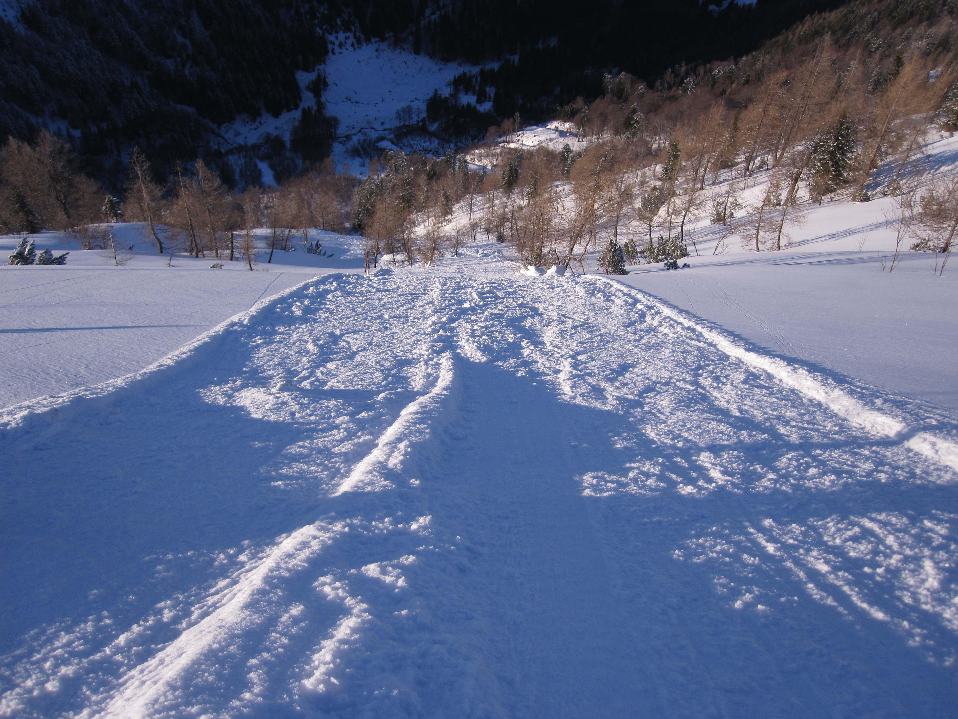 Leider war die Nord heute nicht möglich, somit Abfahrt über den Rücken bis zur Bergalm, viel Gestrüpp :-( Wiederanstieg auf das Bergköpfl.