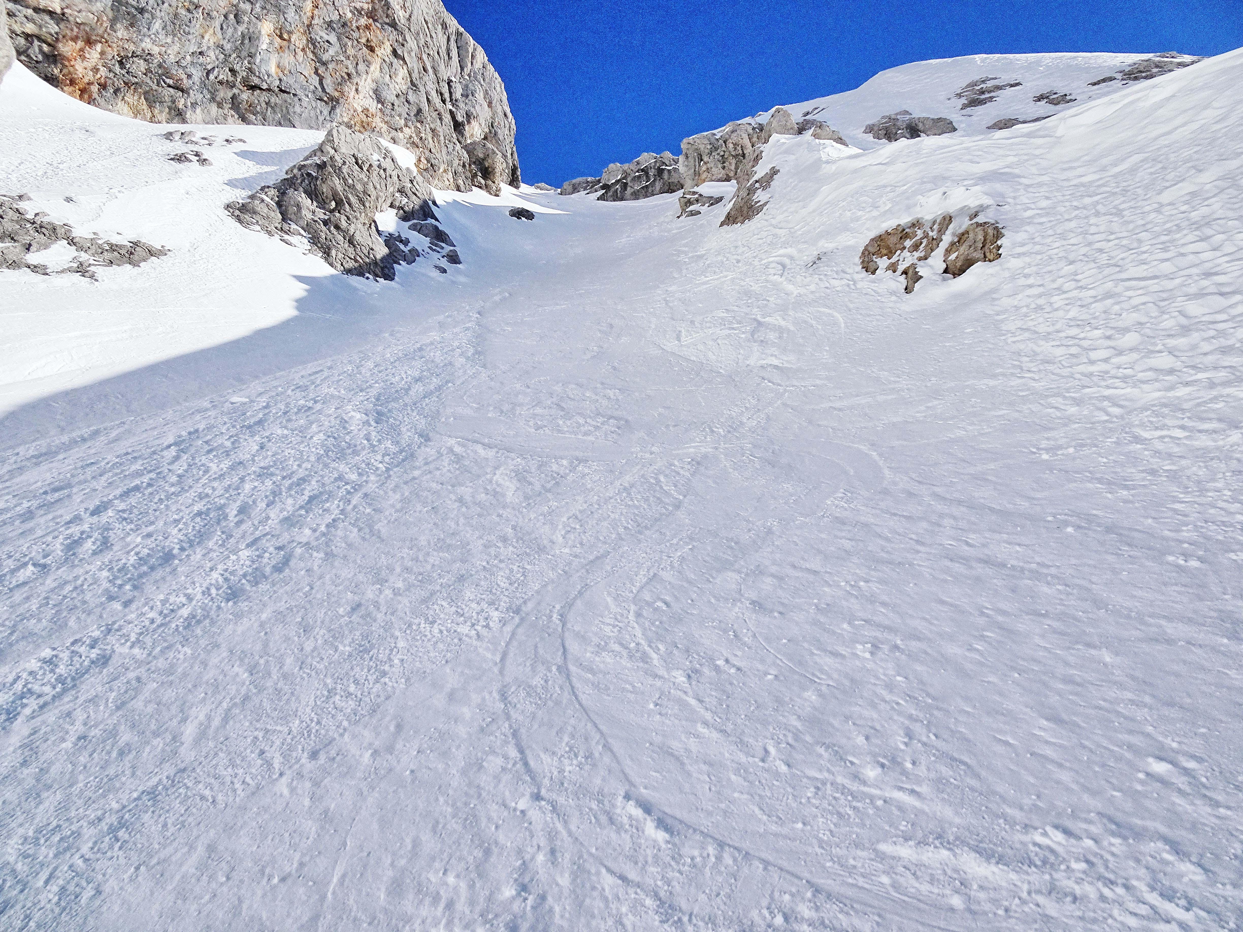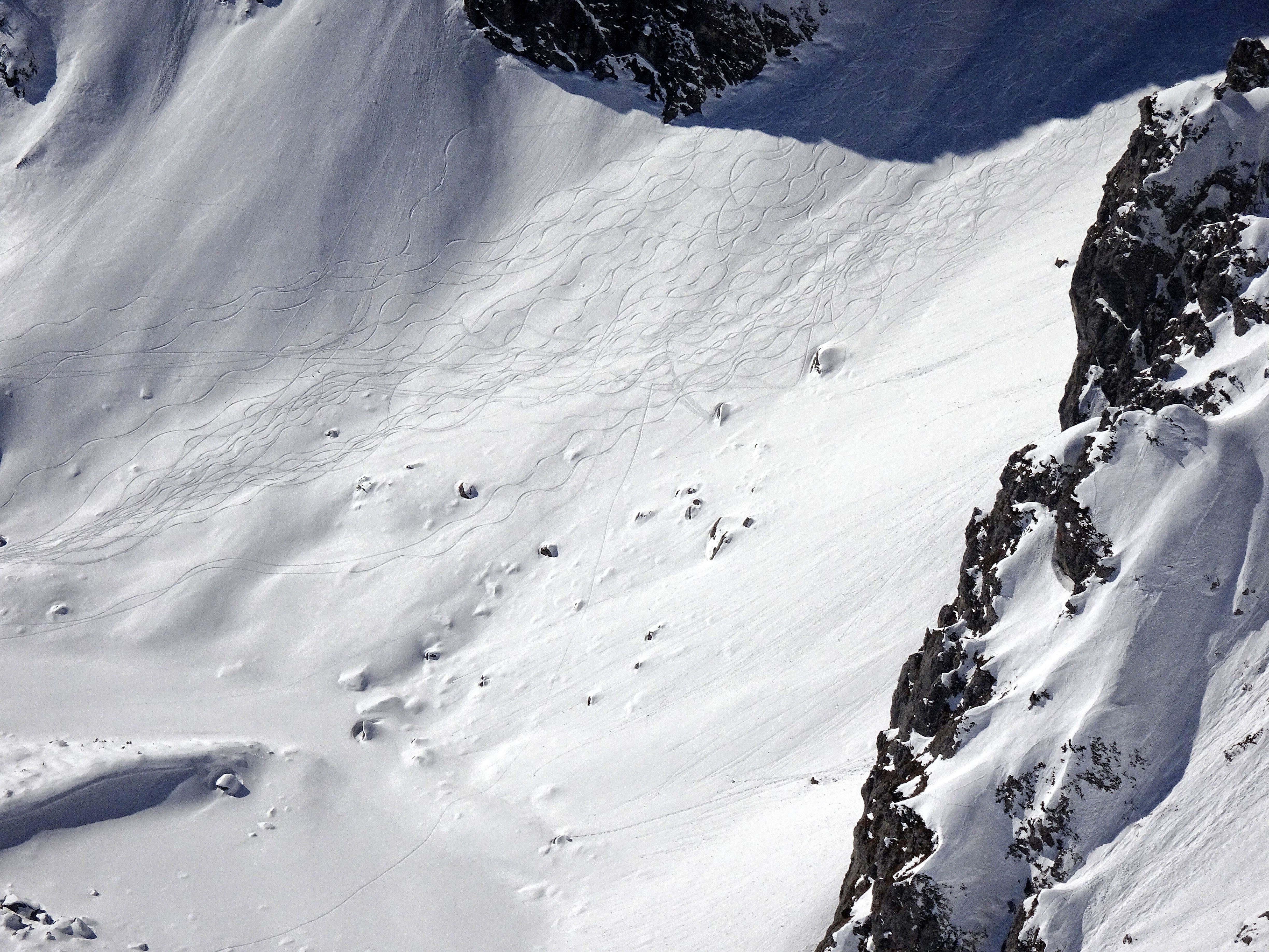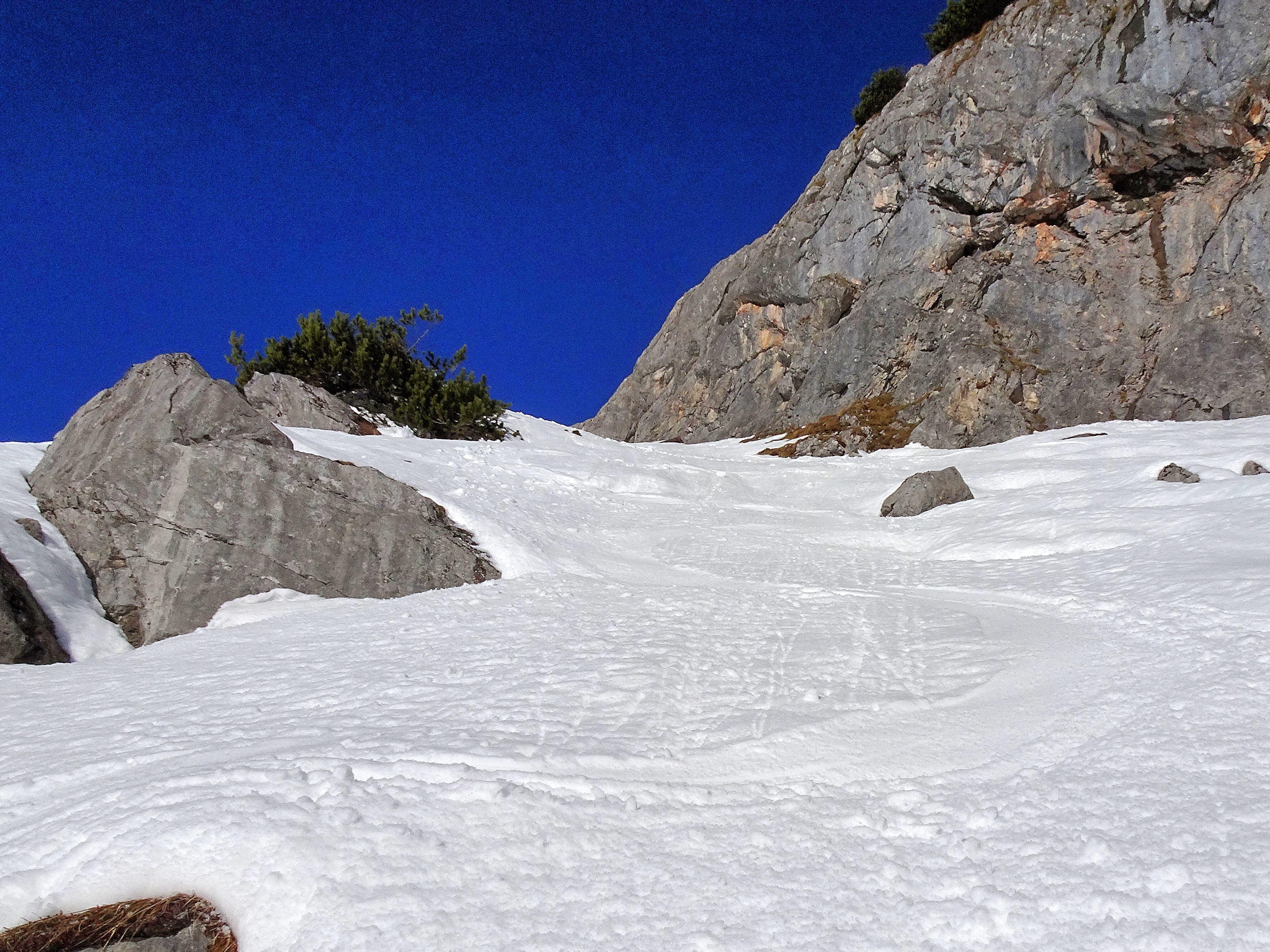 Sehr unterschiedliche Schneeverhältnisse. Je nach Exposition.
