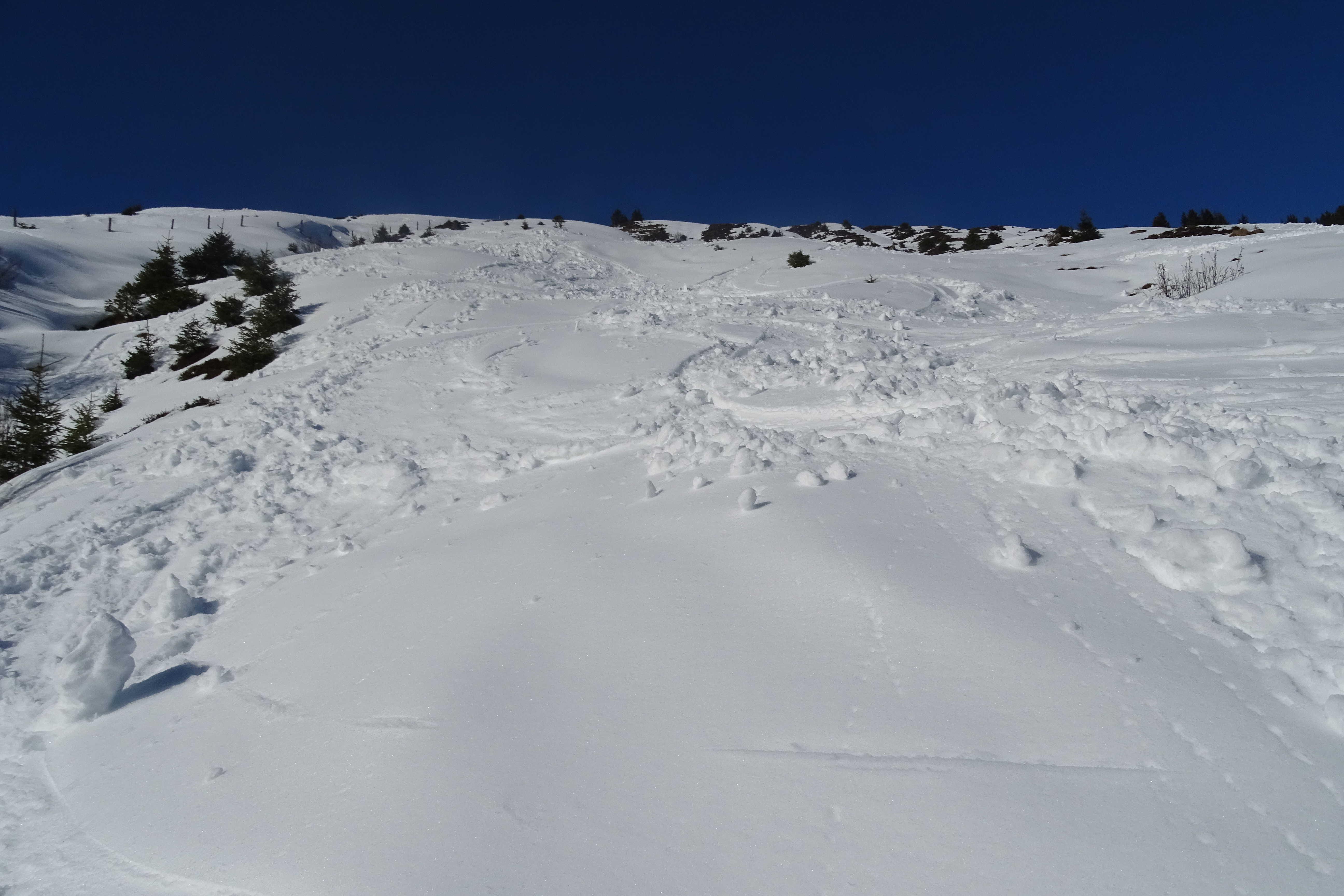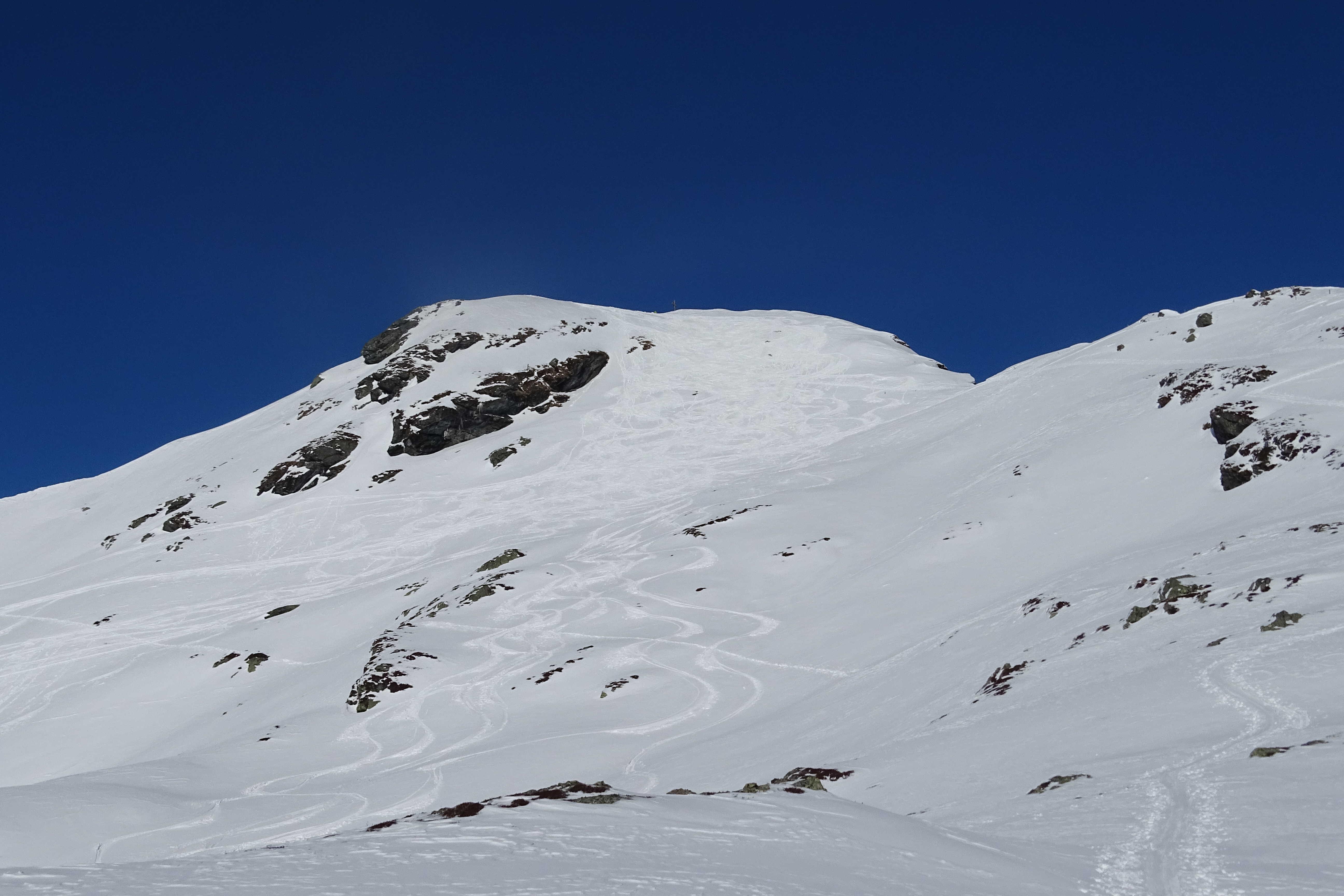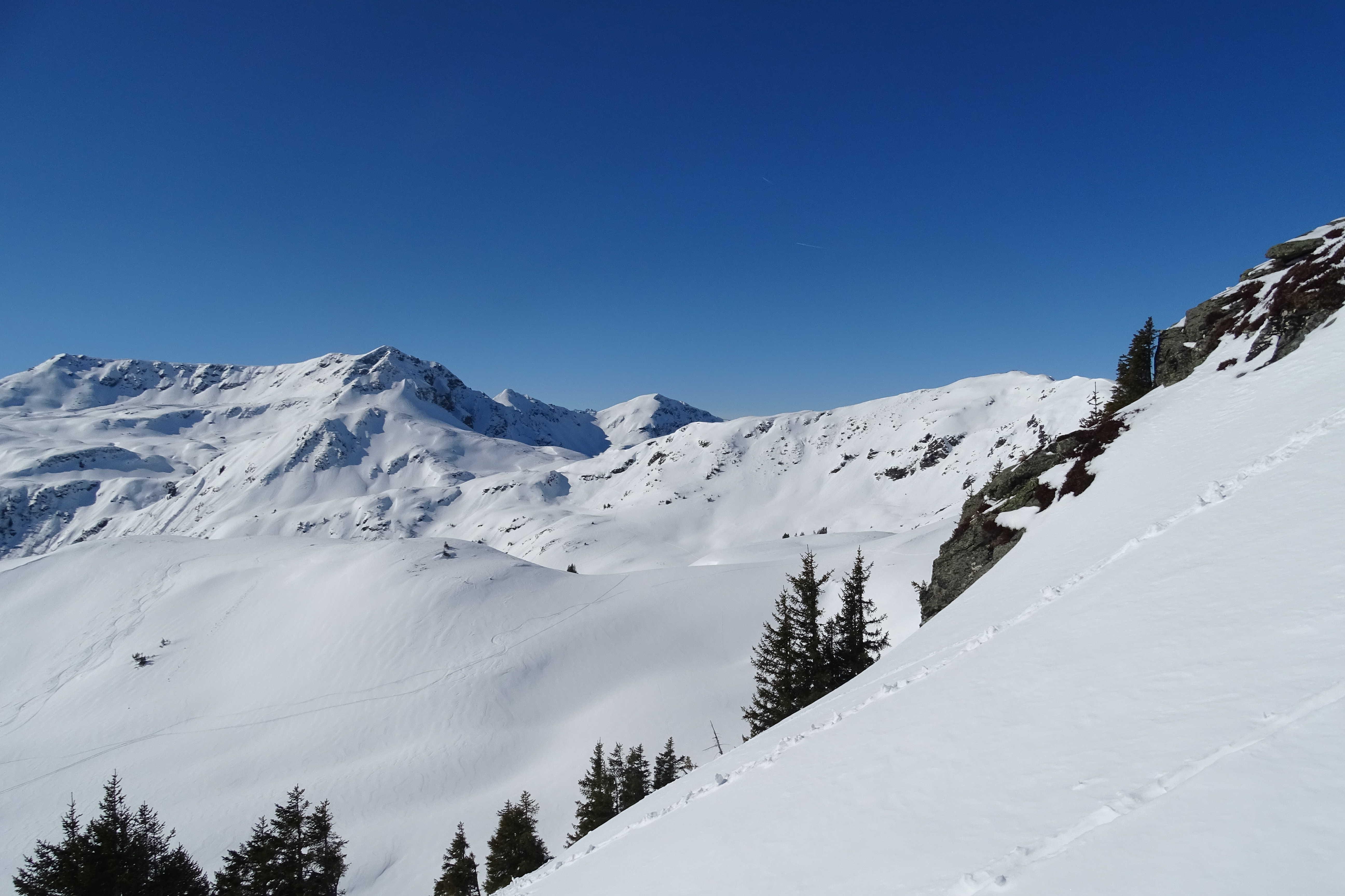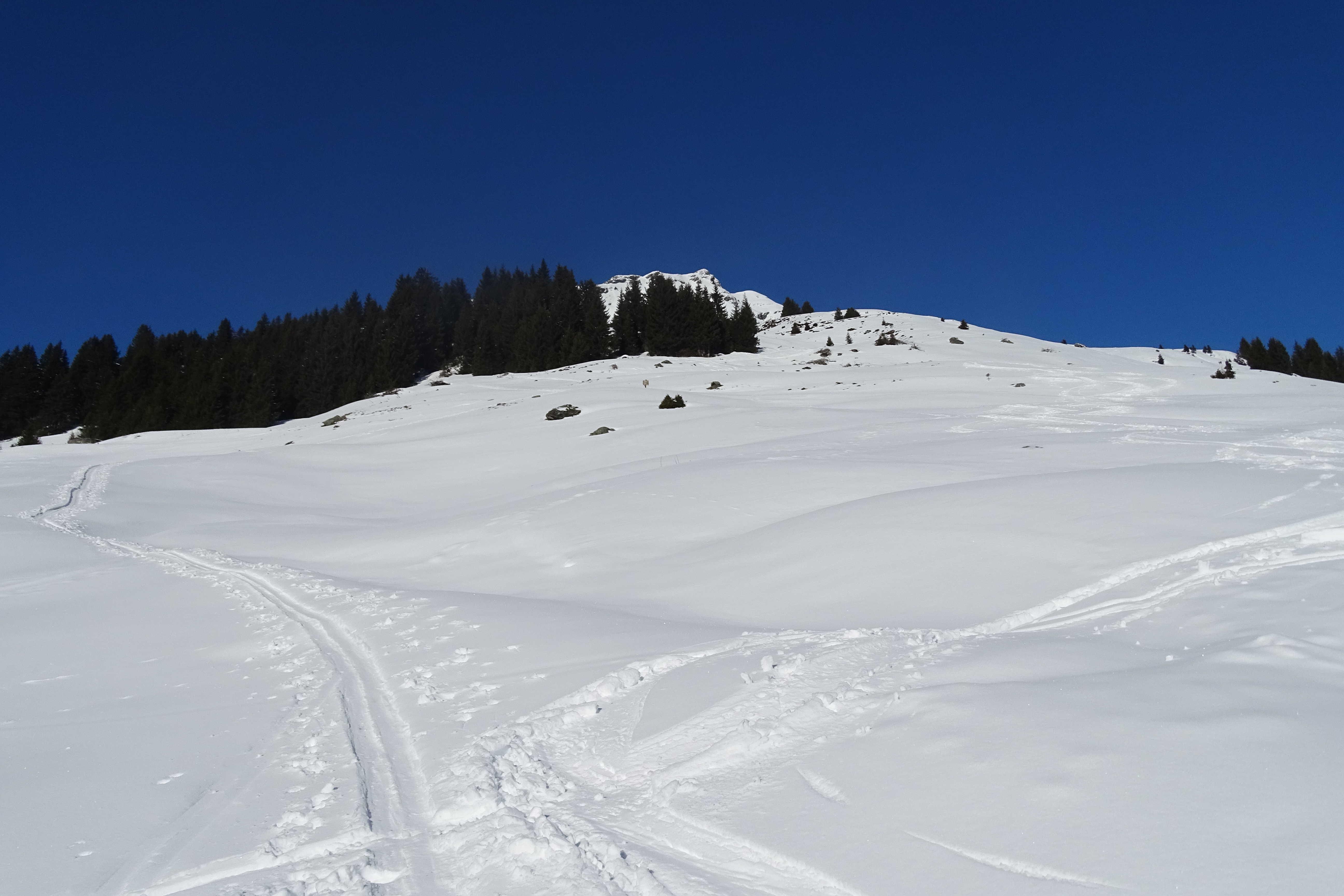 Aufstieg in schöner, weicher Spur, zeitweise zeigt sich der Schnee anhänglich