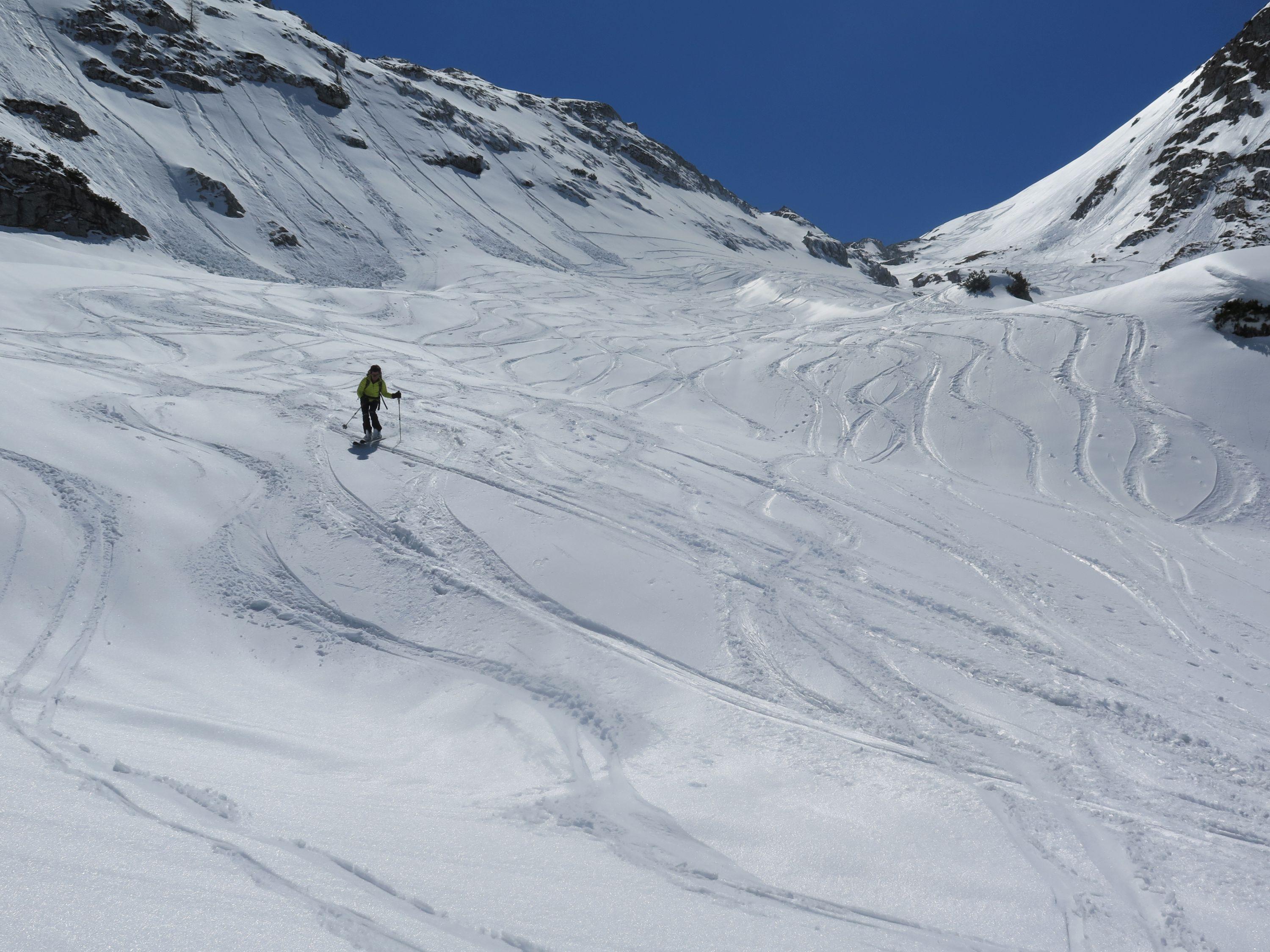 Schöne Runde von Hinterbrand über Stahlhaus,auf der Jennerpiste noch ausreichende Schneelage,Piste morgens gefroren. Aufstieg zum Schneiber war gut, Neuschnee hat sich gesetzt,am Gipfel windig. Gefestigte Flächen beim Abfahren zum Reinersbergbruggl. Aufstieg zum Fagstein,herrlicher Rundblick,Schnee sulzig, ins Reinersbergbruggl etwas Pulver und Firn.