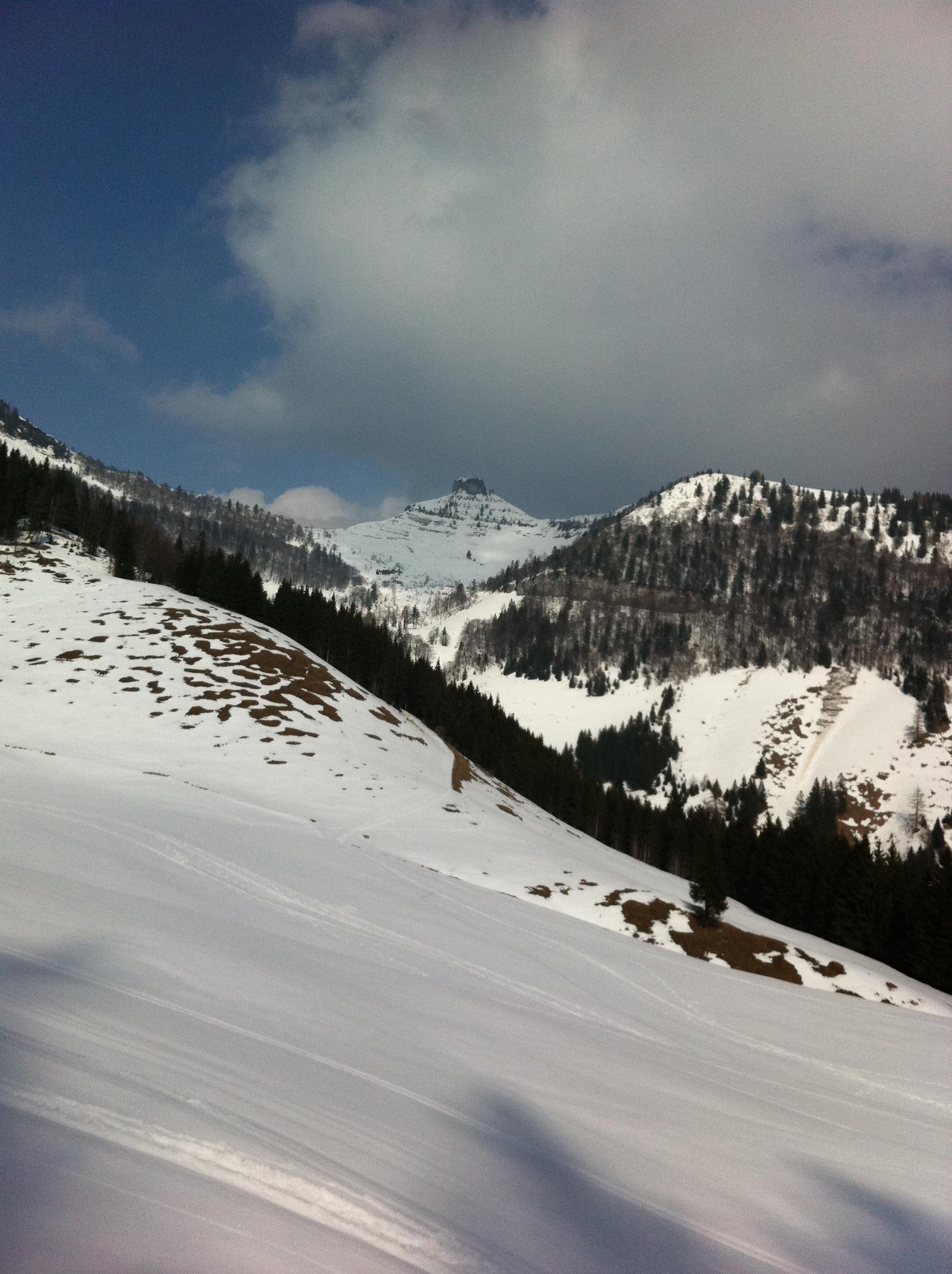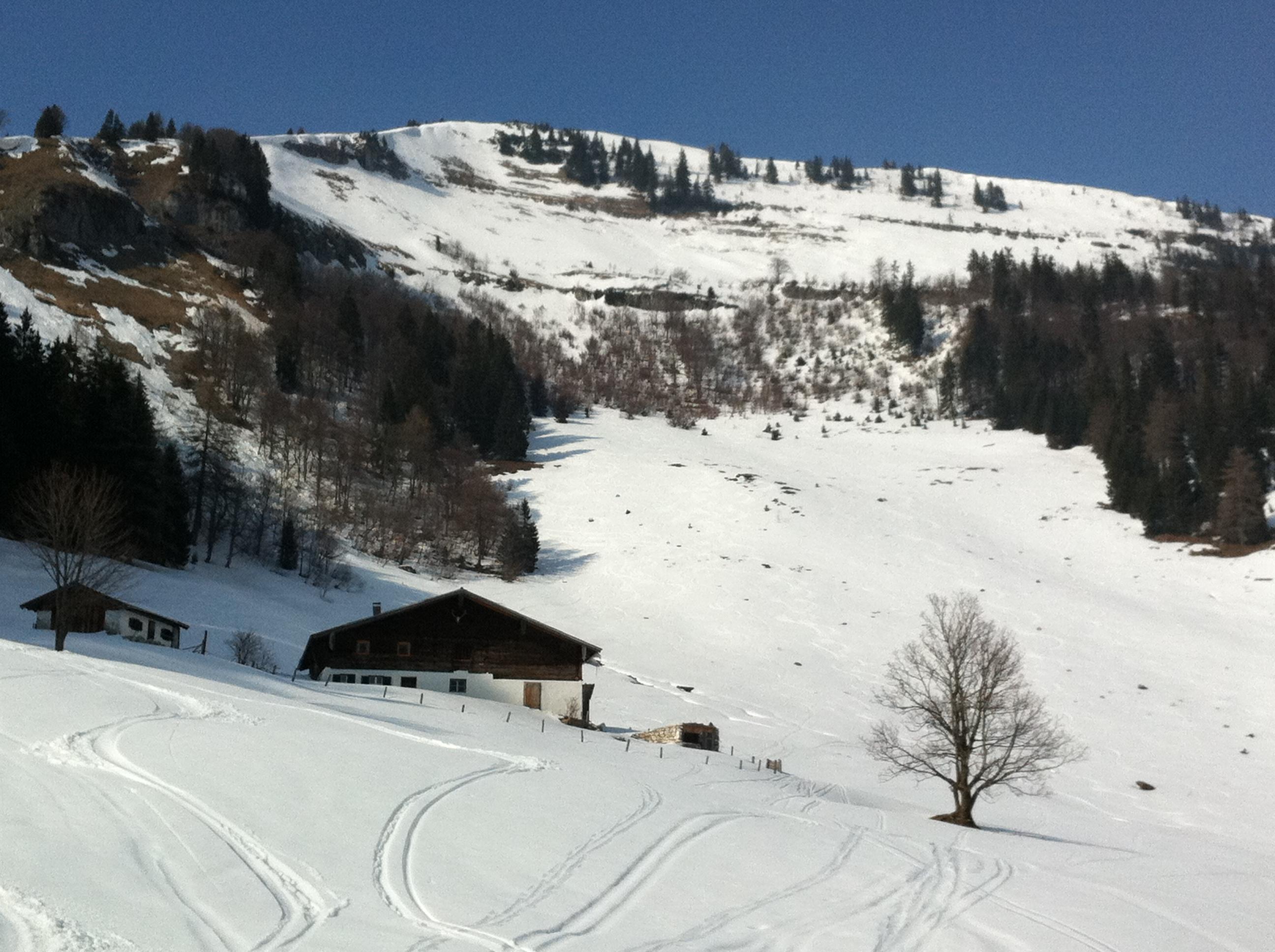 Von Gollegg ist grad noch genügend Schnee. Weiter oben 5cm Pulver oder Baaz je nach Sonneneinstrahlung. Insgesamt lohnend, aber nicht mehr lang
