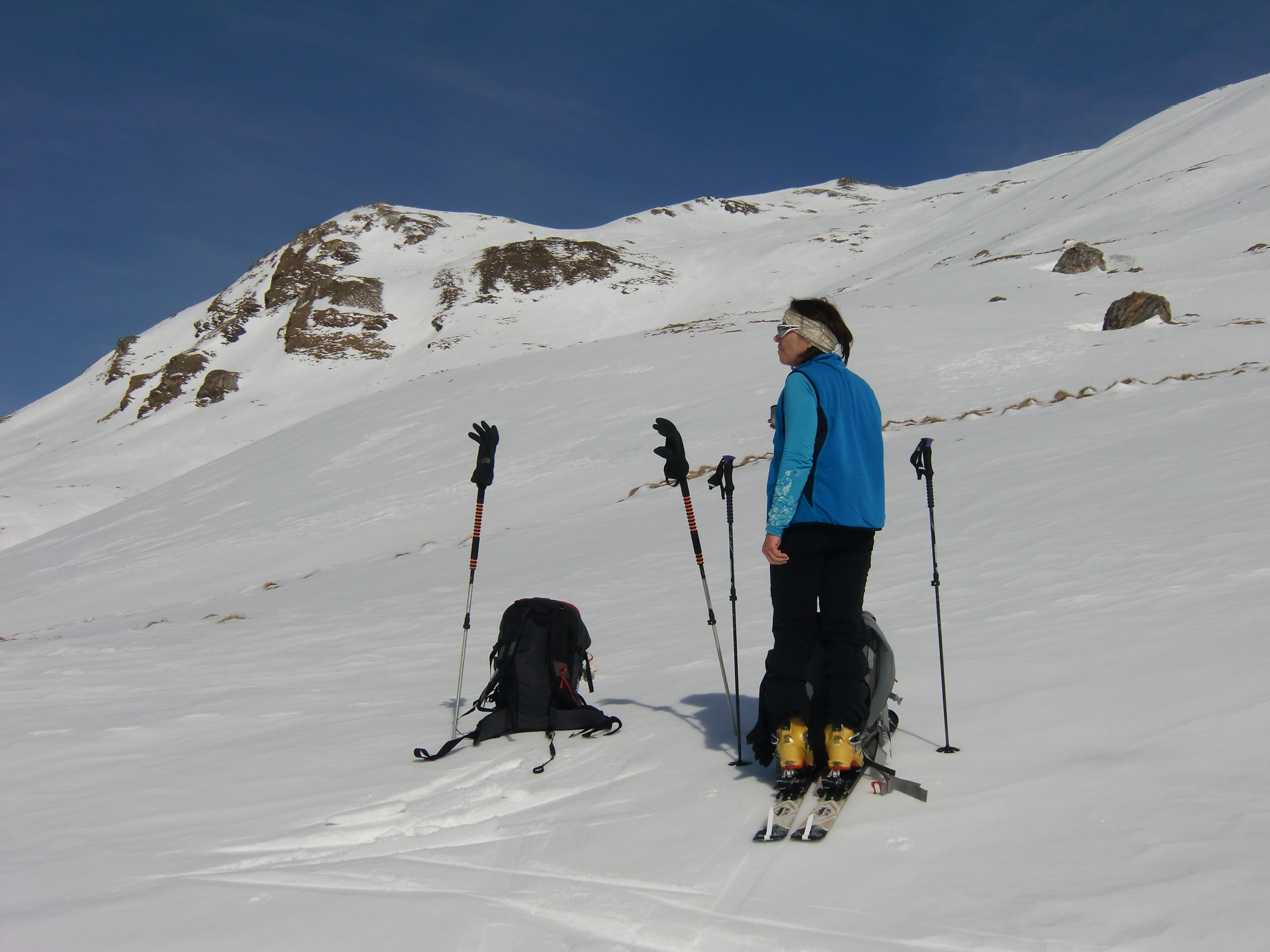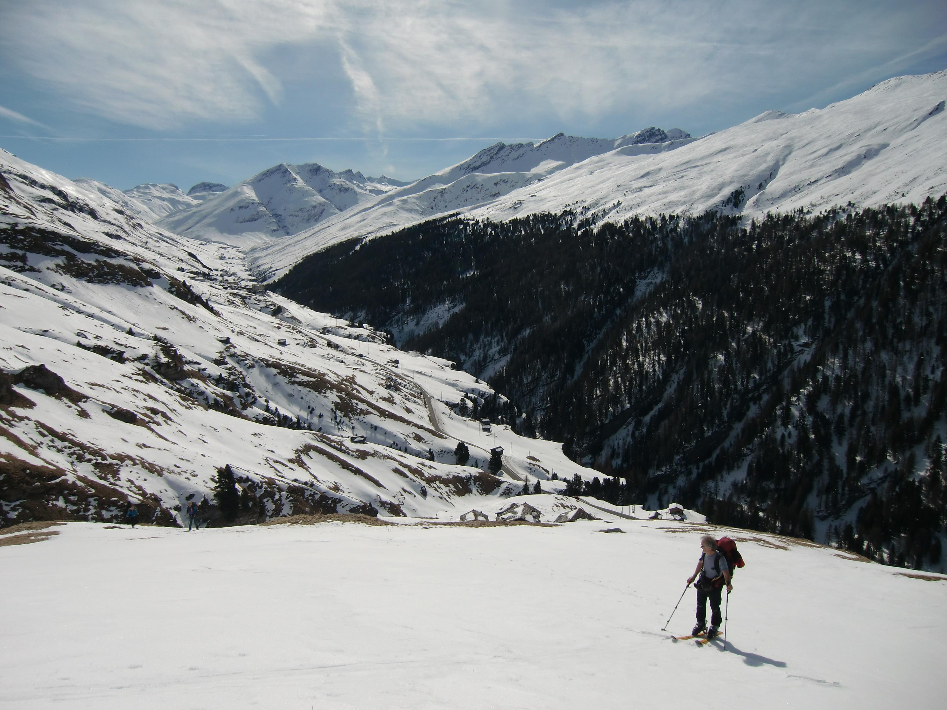 Zur Tour: Nach den zwei Touren auf den windverwüsteten Nordseiten sind wir heute Firn-Suchen gegangen (Experiment erfolgreich). Die Grimsla ist die erste Tour auf der Avers-Sonnseite, in der 50.000er SAC-Skitourenkarte nur als P.2652 vermerkt.