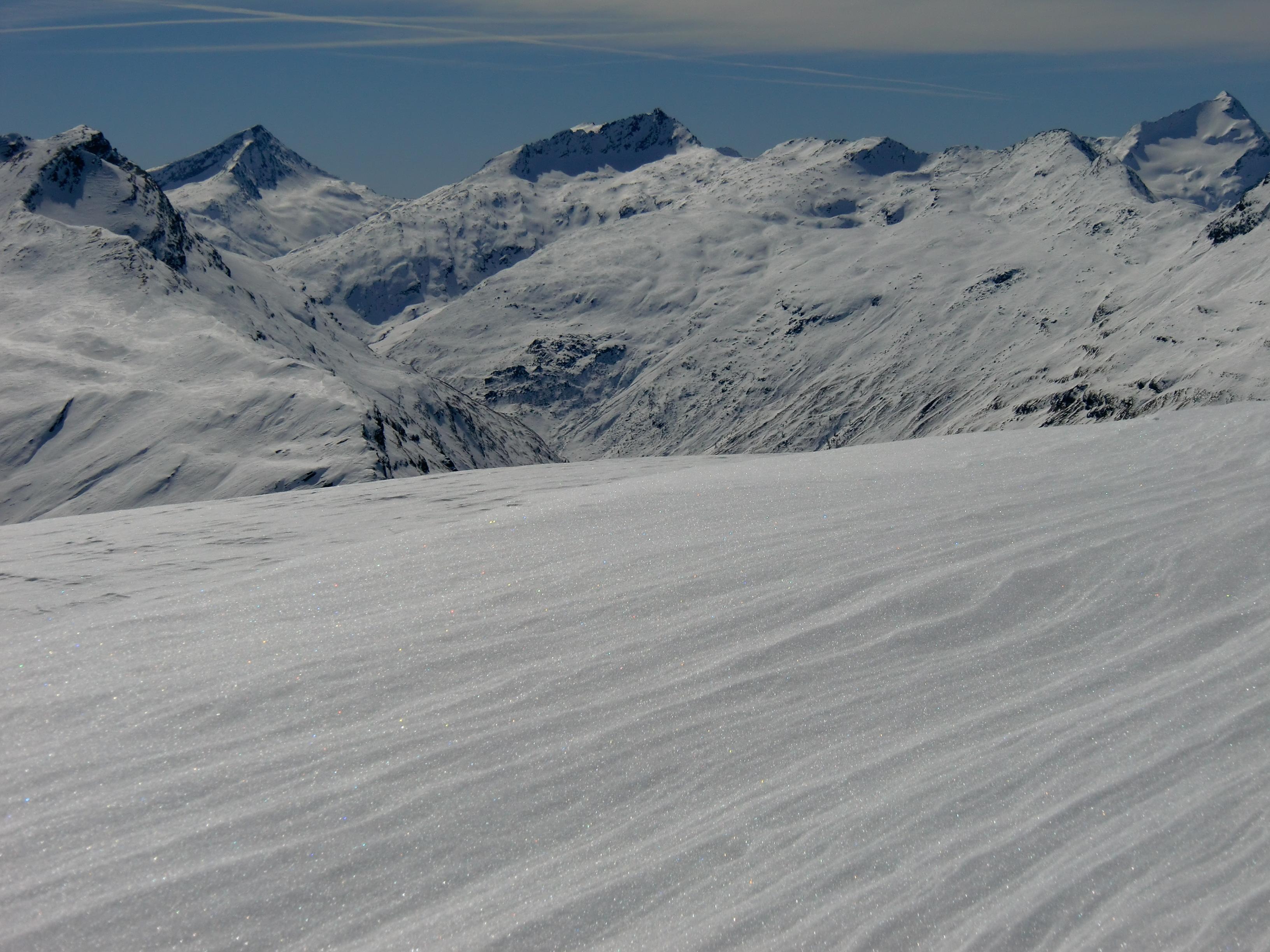 Das Averstal im südlichen Graubünden ist ein kurzes Seitental des Hinterrheins mit (im SAC-Führer) gezählten 34 Skitouren aller Schwierigkeitsgrade. Die Ausgangspunkte liegen zwischen 1900 u. 2000m, das Tal ist also auch im meist schneearmen Südbünden/Engadin sehr schneesicher.
