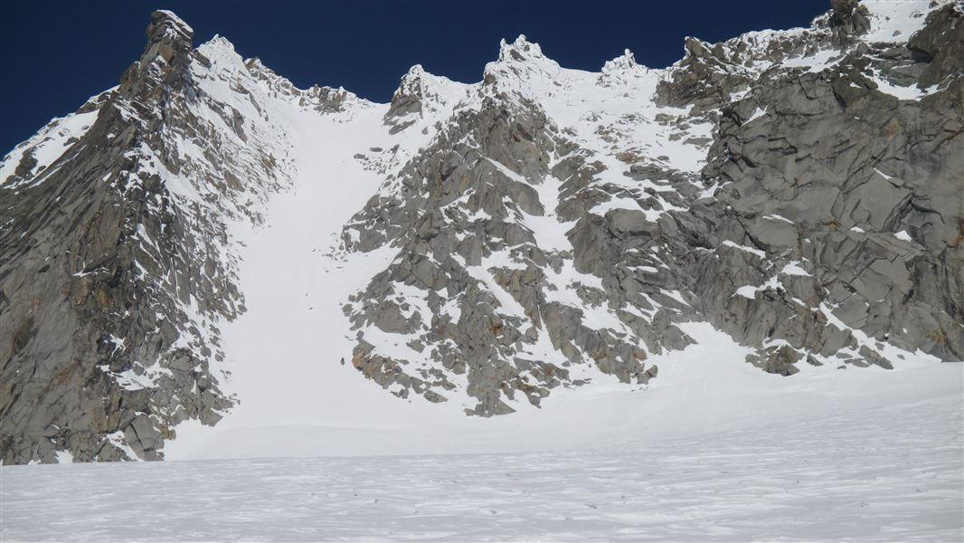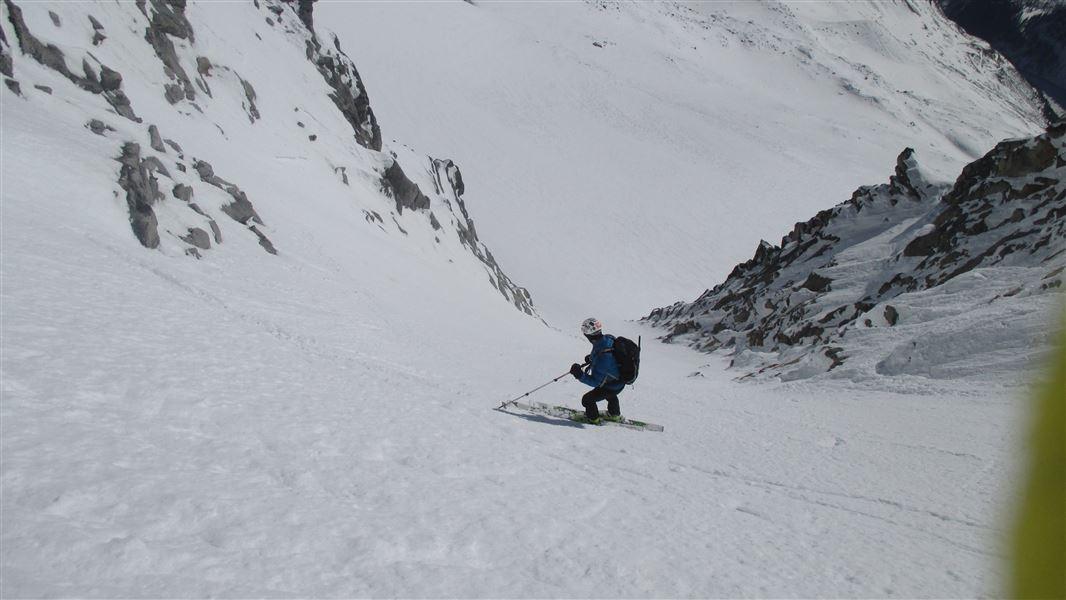 Leider keine guten Bedingungen. Wenig Schnee und oben zu kalt für Firn. So ist die Rinne nur Plackerei [mehr]